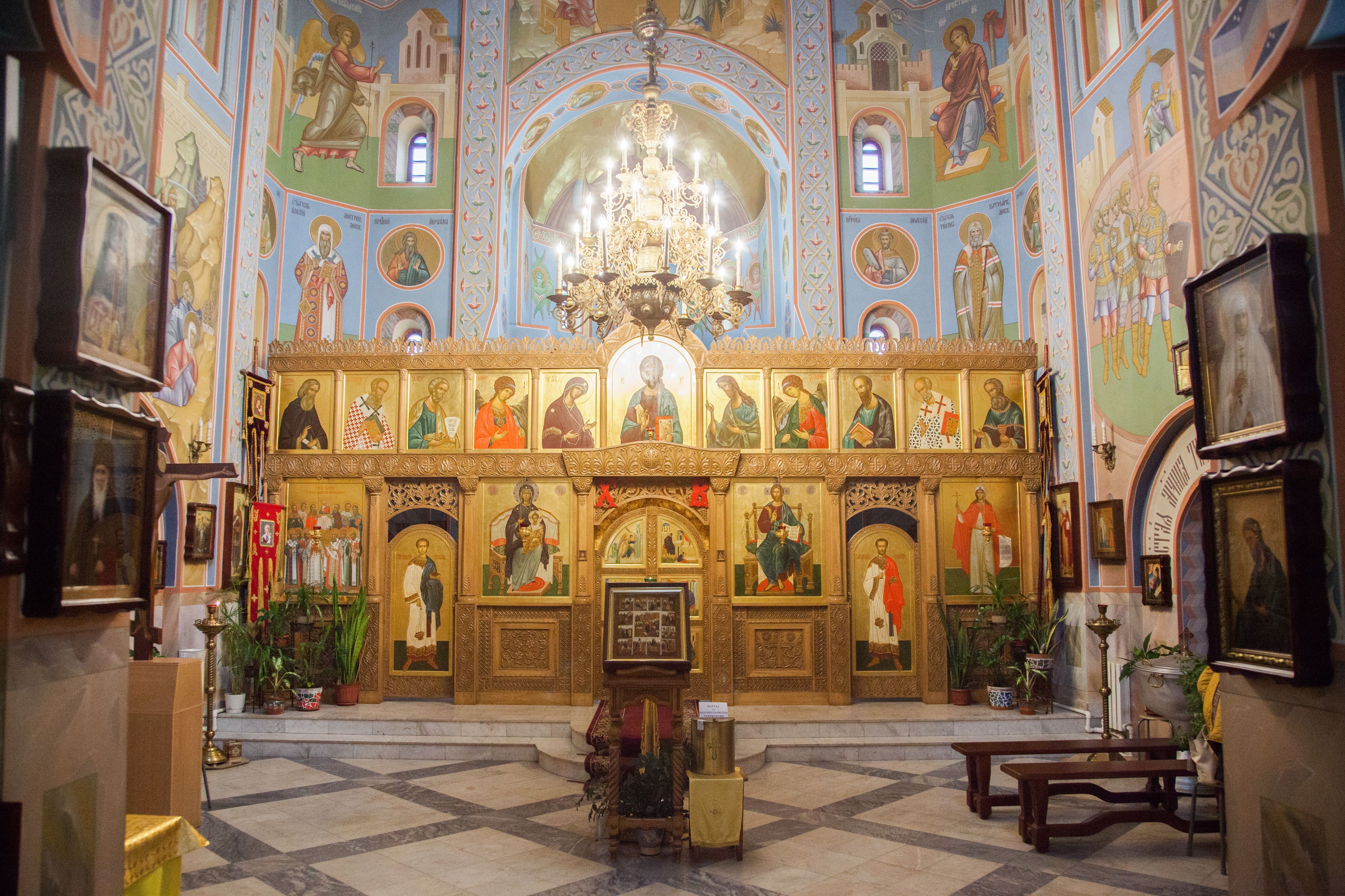 Чтимые святыни храма: Икона Божьей Матери «Неупиваемая Чаша» и икона свв. Августина Блаженного и матери его Моники с частицами их мощей.