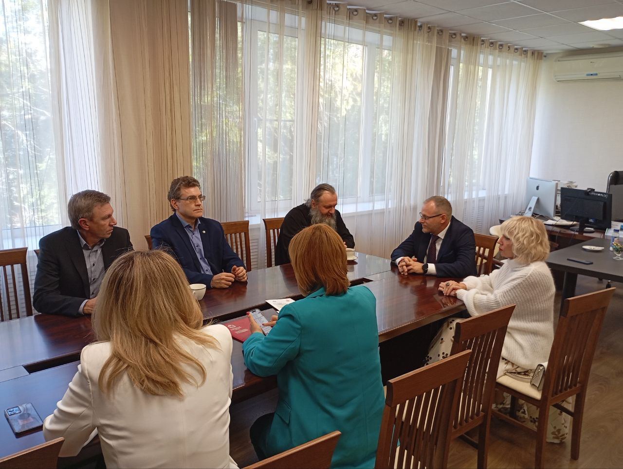 Перед церемонией награждения митрополит Феодосий встретился с ректором Самарского института развития образования Игорем Николаевичем Минаевым и представителями педагогического сообщества города Самары. В ходе знакомства с новым управляющим Самарской епархией обсуждались многолетние практики успешного взаимодействия Церкви и вуза: повышение квалификации педагогов духовно-нравственного направления, проведение педагогического лагеря в Винновском мужском монастыре, организация Кирилло-Мефодиевских чтений для учителей, сотрудничество с РУМО и другие направления. Участники встречи выразили общее намерение продолжать и расширять соработничество. Владыка передал в дар Институту развития образования образ Спаса Звенигородского.