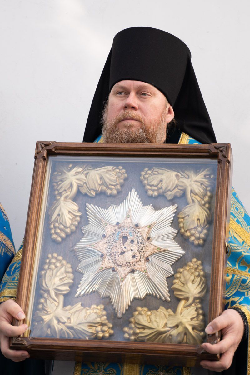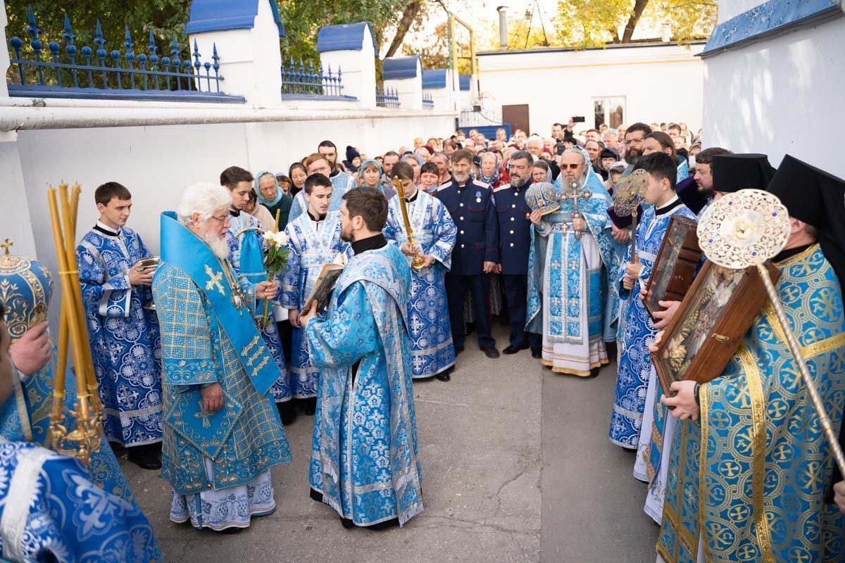 По окончании богослужения состоялся крестный ход вокруг собора, после которого было совершено славление празднику Покрова Пресвятой Богородицы.