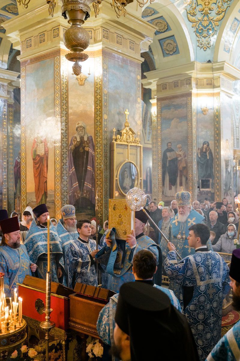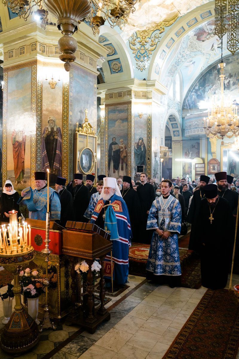 Митрополит Сергий поздравил духовенство и прихожан с престольным праздником и обратился к ним с архипастырским словом. Владыка напомнил, что святость помогает нам определить своё место в жизни. И, в первую очередь, примером нам служат святые, так как это очень мужественные люди. Первым примером для всех нас может служить Божья Матерь. Также митрополит Сергий напомнил молящимся о связи Покрова с Крестоношением. «Только тогда, когда мы не отвергаемся несения своего Креста и следования за Христом, только тогда мы достойны Покрова Божией Матери над нами. Помолимся же о том, чтобы и над нашей Русской землёй всегда простирался Её покров, и все мы не забывали о дивных деяниях Господа в нашей жизни!».
