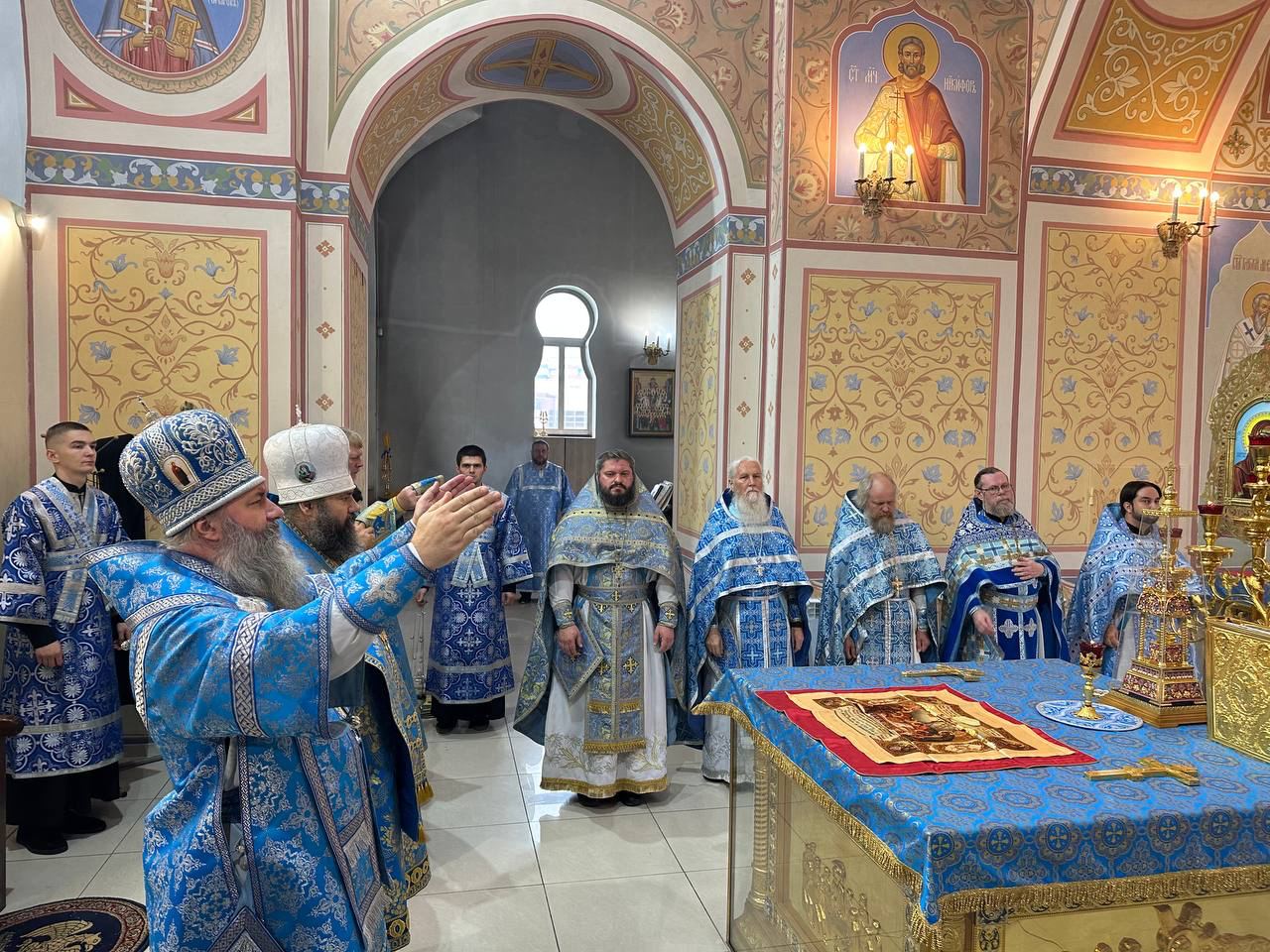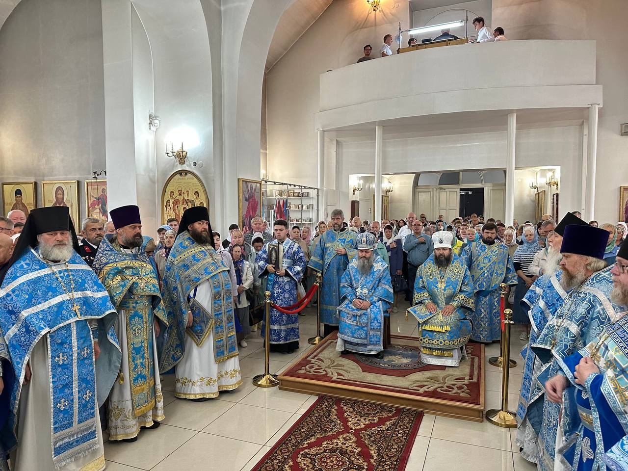 28 августа 2025 года в праздник Успения Пресвятой Богородицы Высокопреосвященнейший Феодосий, митрополит Самарский и Новокуйбышевский совместно с епископом Отрадненским и Похвистневским Кириллом совершили Божественную Литургию в кафедральном соборе в честь иконы Божией Матери «Отрада и Утешение» г.Отрадный.