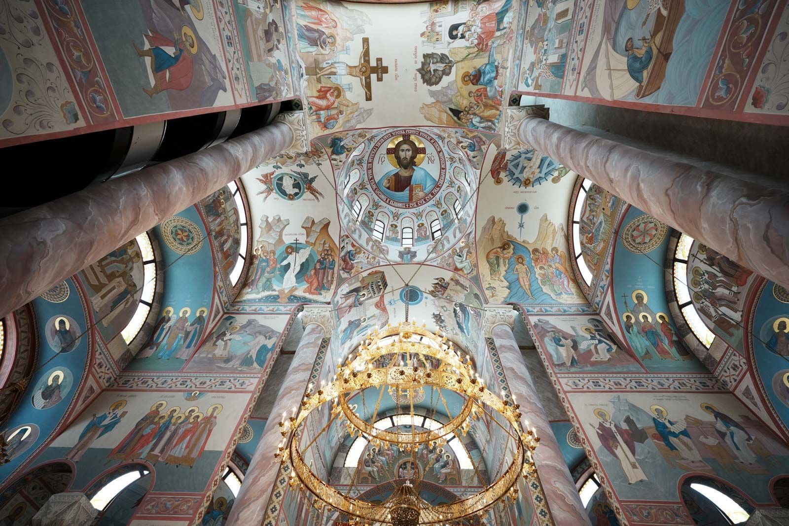Песнопения литургии исполнил большой хор собора под управлением регента Анастасии Горбатенко.