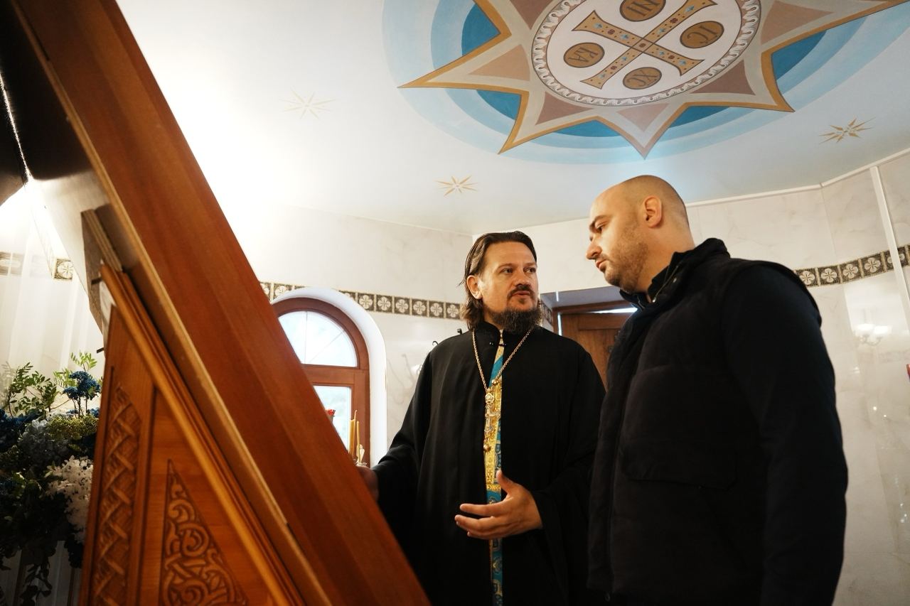 Настоятель храма также провел экскурсию по храму и территории, рассказав об истории прихода, его святынях и текущих проектах.
