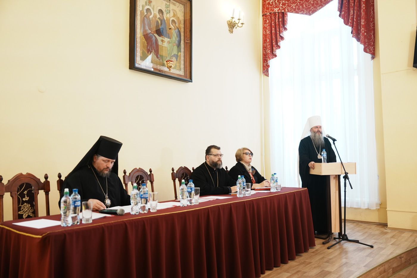 Конференция проходила сразу в четырех секциях: «Православная педагогика и психология в духовных школах». Круглый стол по обмену опытом; «Преподавание православно-ориентированных дисциплин в вузах»; «Преподавание учебного курса «Нравственные основы семейной жизни»: проблемы и пути решения»; «Пастырская педагогика».