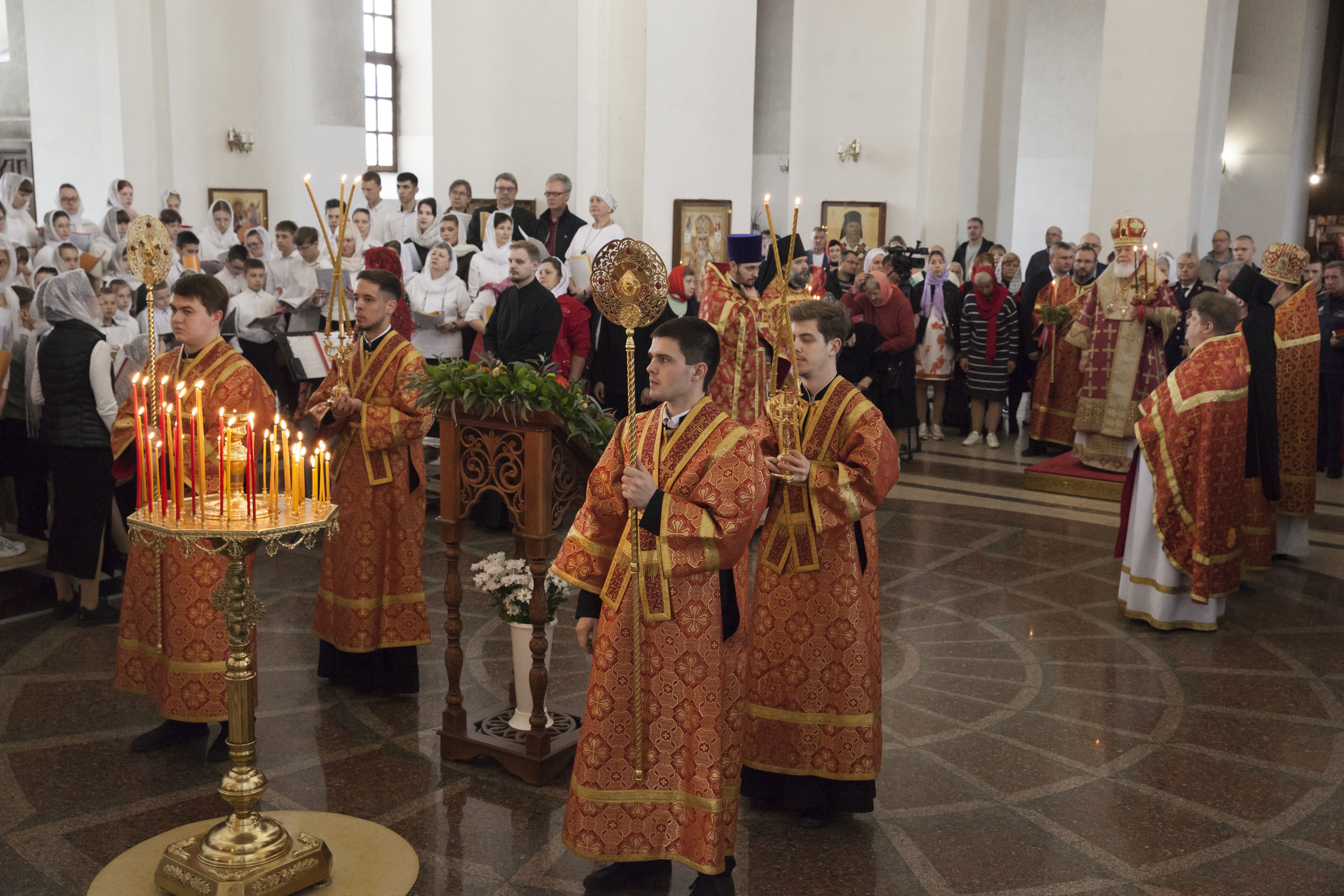 В завершение богослужения митрополит Сергий поздравил прихожан с пасхальным торжеством и обратился к верующим со словом проповеди.