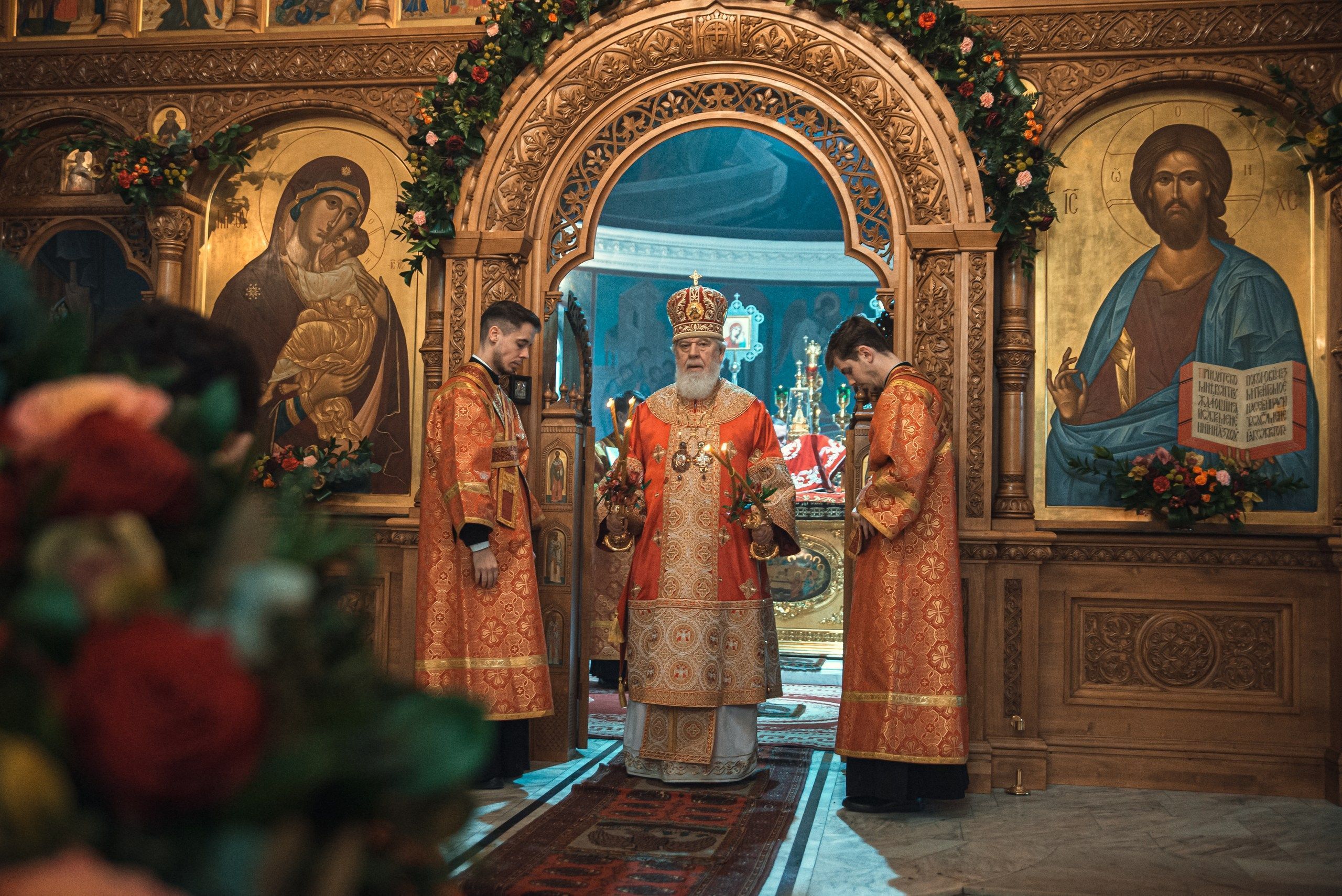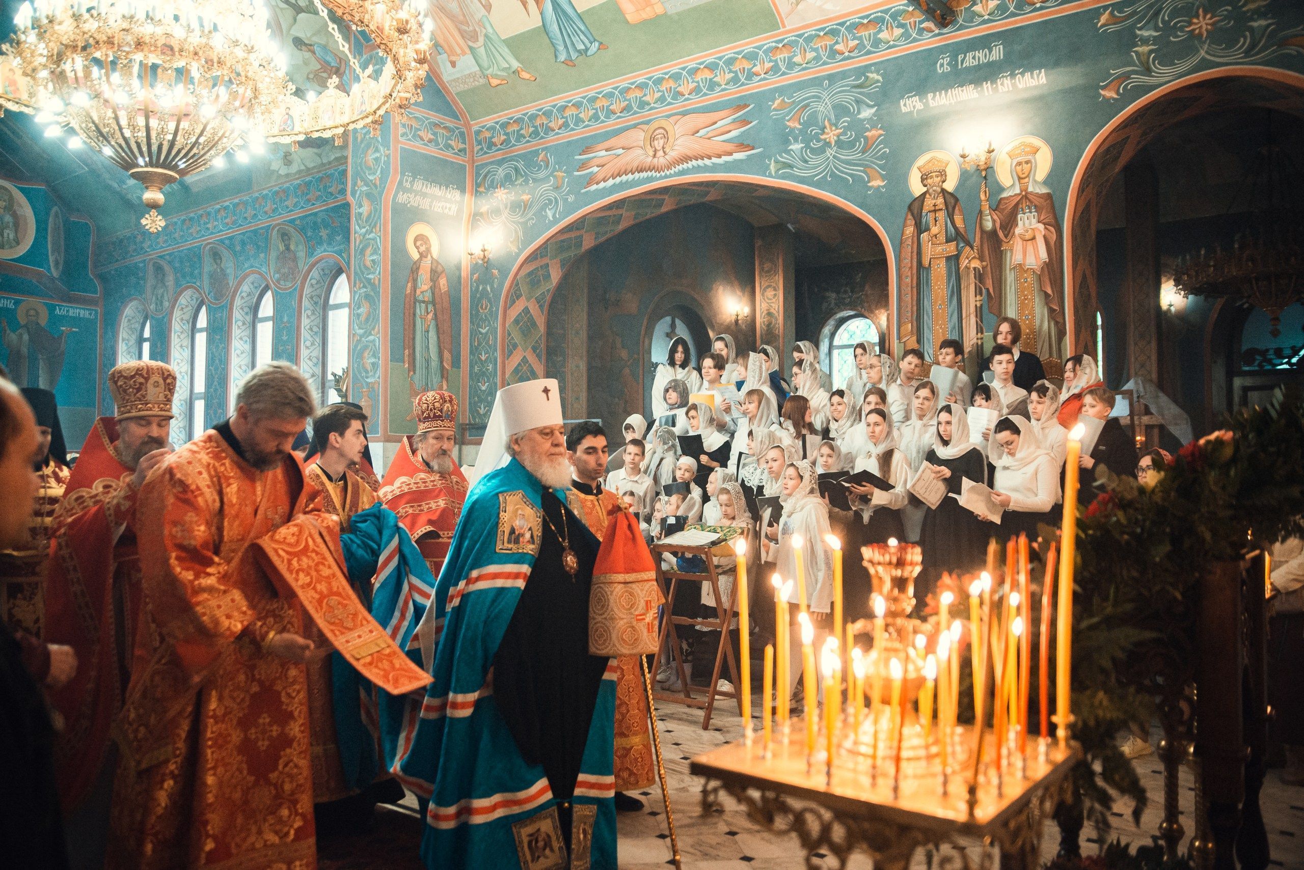 Архипастырю сослужили: игумен Серафим (Астапенко), наместник монастыря, архимандрит Вениамин (Лабутин), заведующий Межвузовской кафедры теологии и истории религий, иеромонах Герасим (Вертей), секретарь епархиального управления, братия монастыря в священном сане. Диаконский чин возглавил диакон Николай Трошков, проректор по учебной работе Самарской духовной семинарии. Богослужебные песнопения исполнили мужской губернский хор "София" и детский хор филиала Детского епархиального образовательного центра "Пересвет", действующего при Воскресенском монастыре.