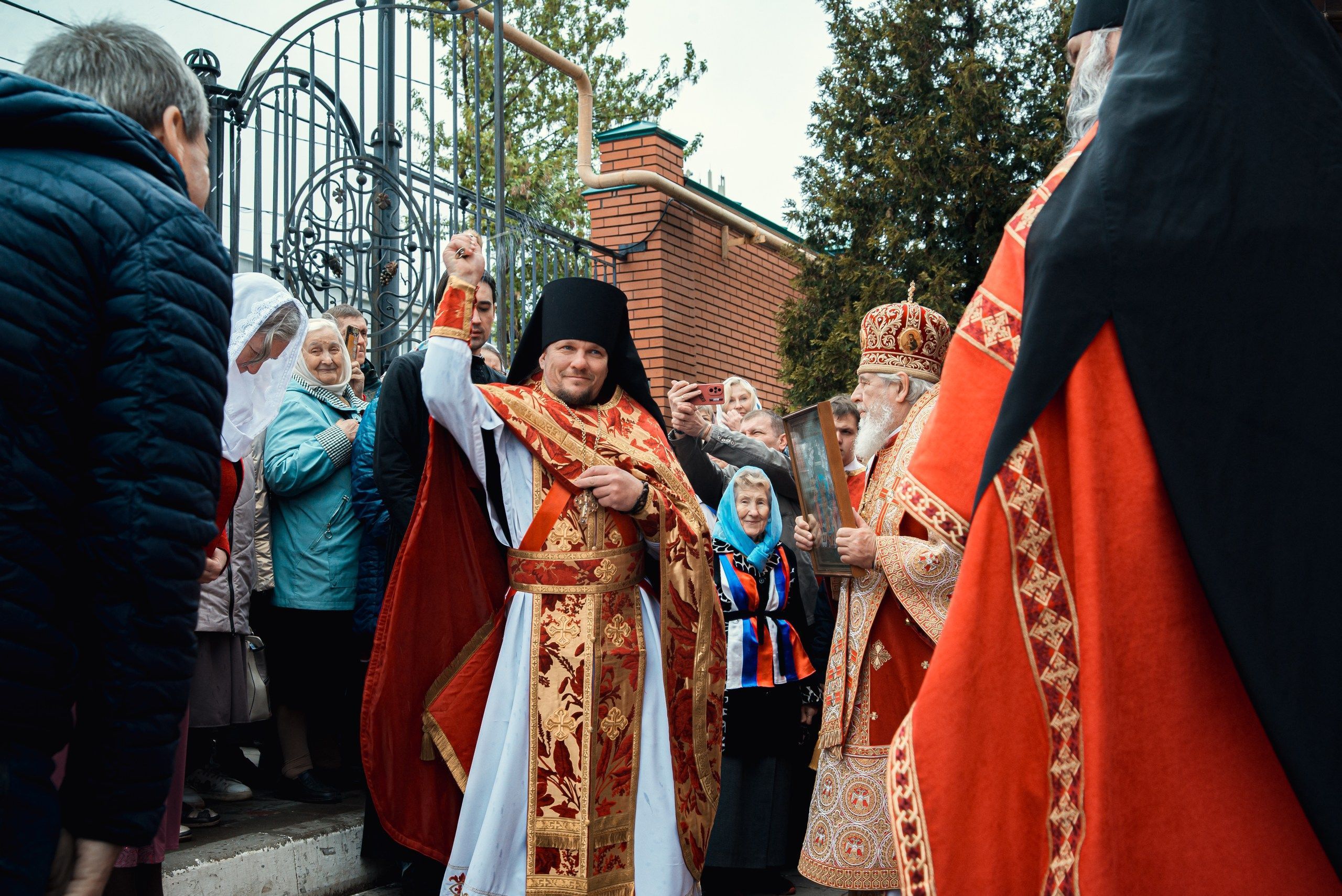 По окончании Литургии, митрополит Сергий возглавил крестный ход с чтением Евангелия и окроплением святой водой богомольцев.