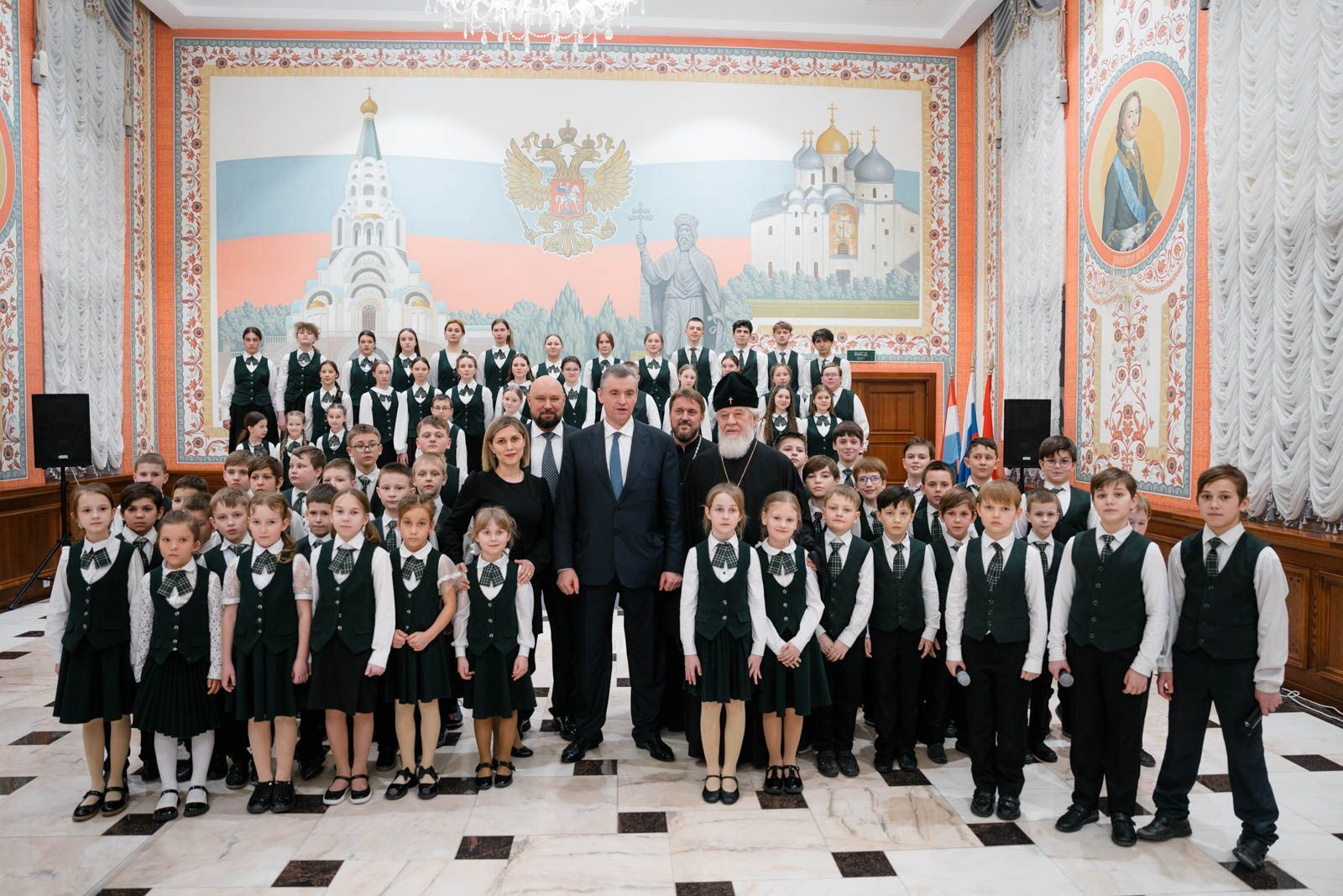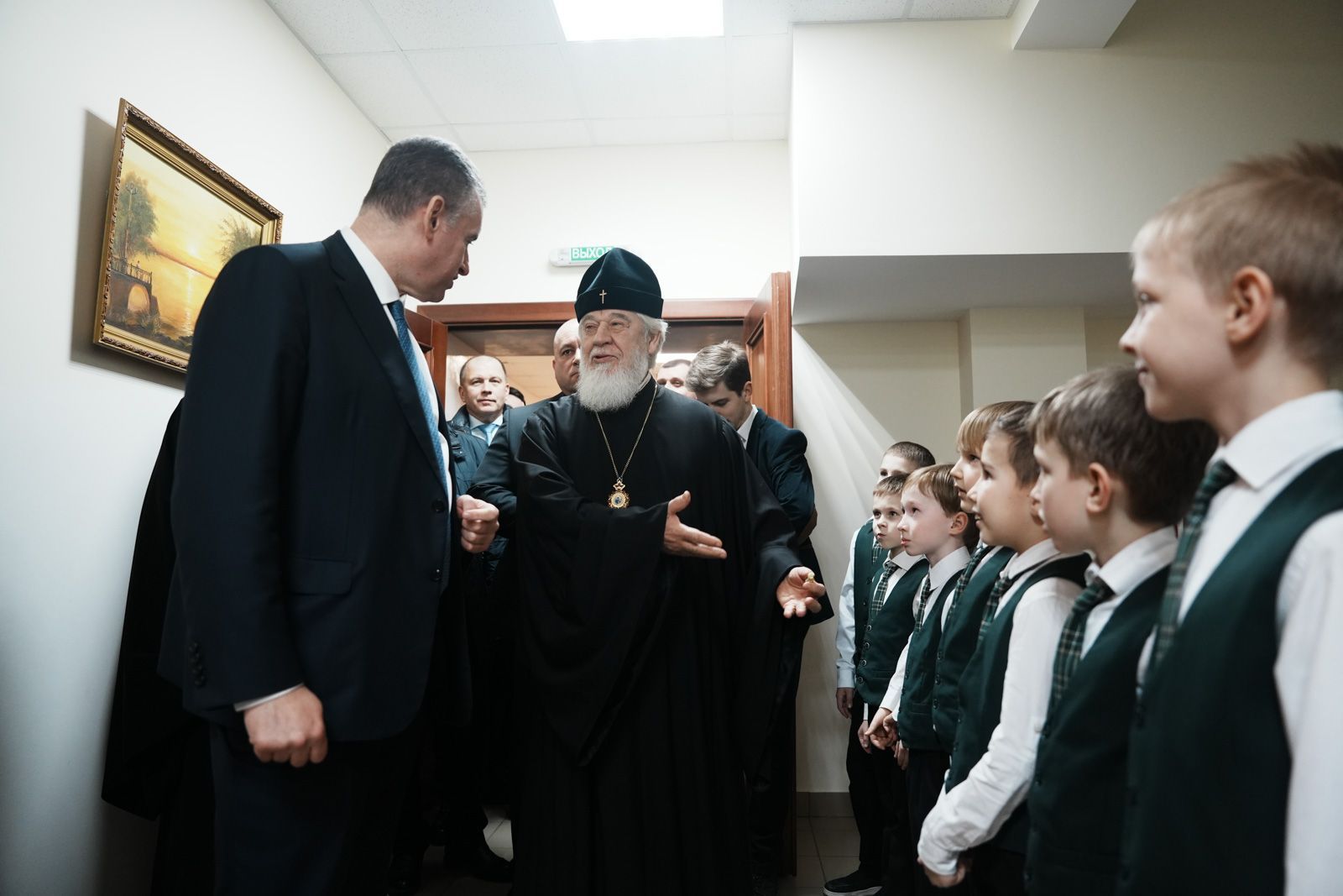 В программу визита также входило посещение Духовно-просветительского центра «Кириллица», действующего при соборе. Гости ознакомились с работой гимназии и преподнесли в подарок учебному заведению ноутбуки. Кроме того, воспитанники гимназии подготовили небольшой концерт, котором были исполнены патриотические песни.
