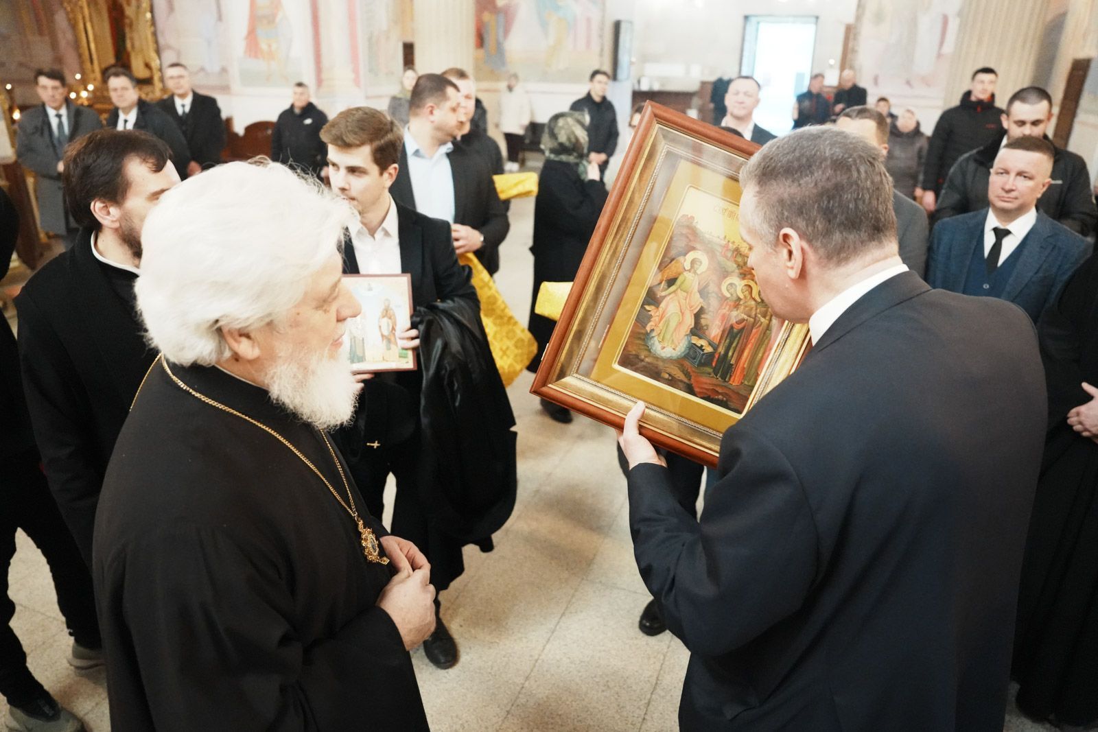 Одним из пунктов пребывания в Самаре делегации стало посещение собора свв. равноапостольных Кирилла и Мефодия. Леонида Эдуардовича в этом визите сопровождал Владимир Алексеевич Кошелев, первый заместитель председателя Комитета Государственной думы по строительству и жилищно-коммунальному хозяйству и коллеги из депутатского корпуса. Делегацию встречал митрополит Самарский и Новокуйбышевский Сергий, настоятель Кирилло-Мефодиевского собора протоиерей Андрей Зуев и заведующий Межвузовской кафедрой теологии и истории религий архимандрит Вениамин (Лабутин), который провел для гостей небольшую экскурсию по храму. Митрополит Сергий и Эдуард Леонидович обменялись памятными подарками.