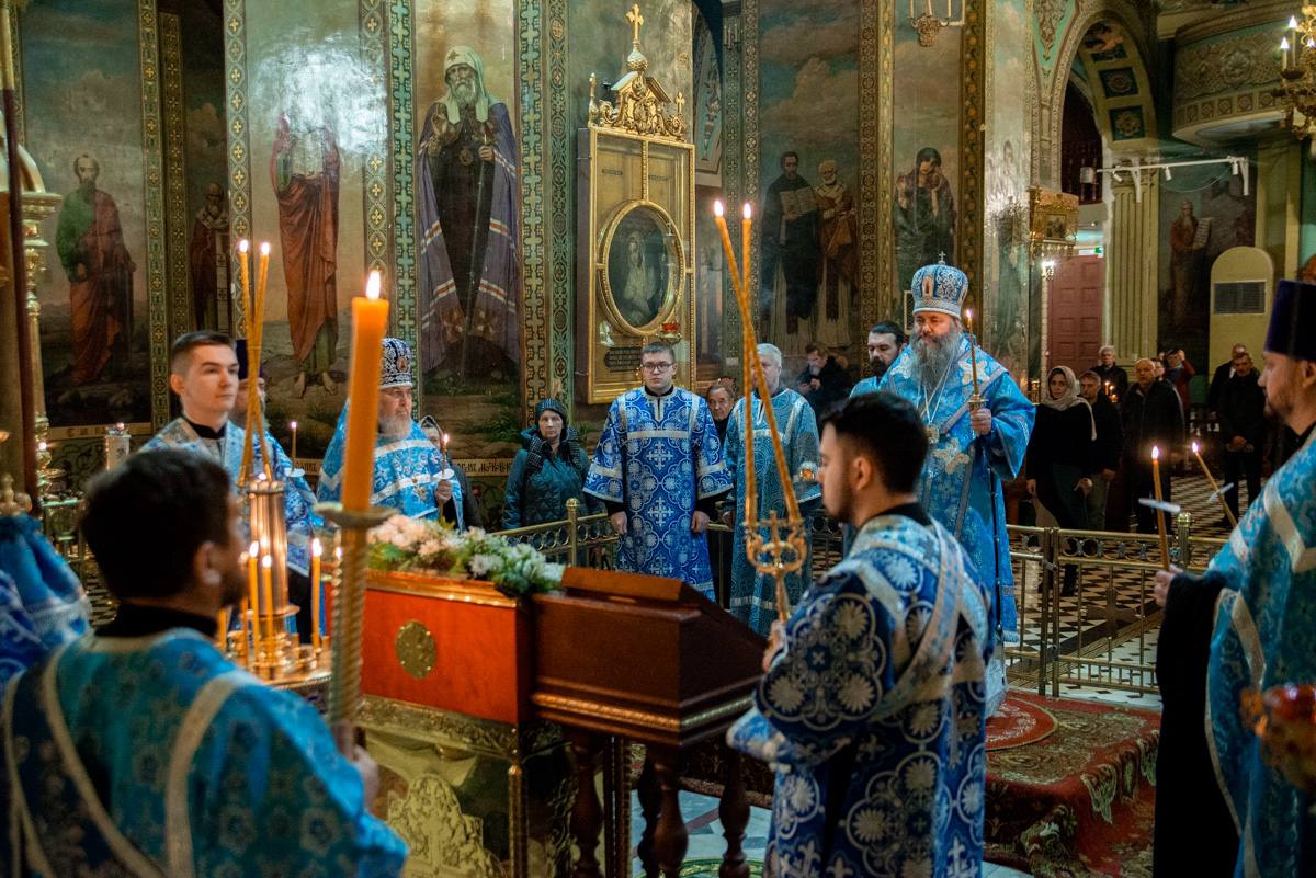 5 декабря, накануне субботы Попразднства Введения во храм Пресвятой Богородицы, митрополит Самарский и Новокуйбышевский Феодосий возглавил полиелейное богослужение в Покровском соборе г. Самары.