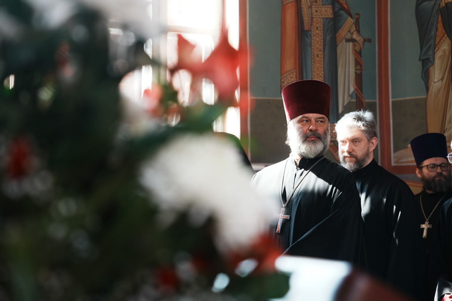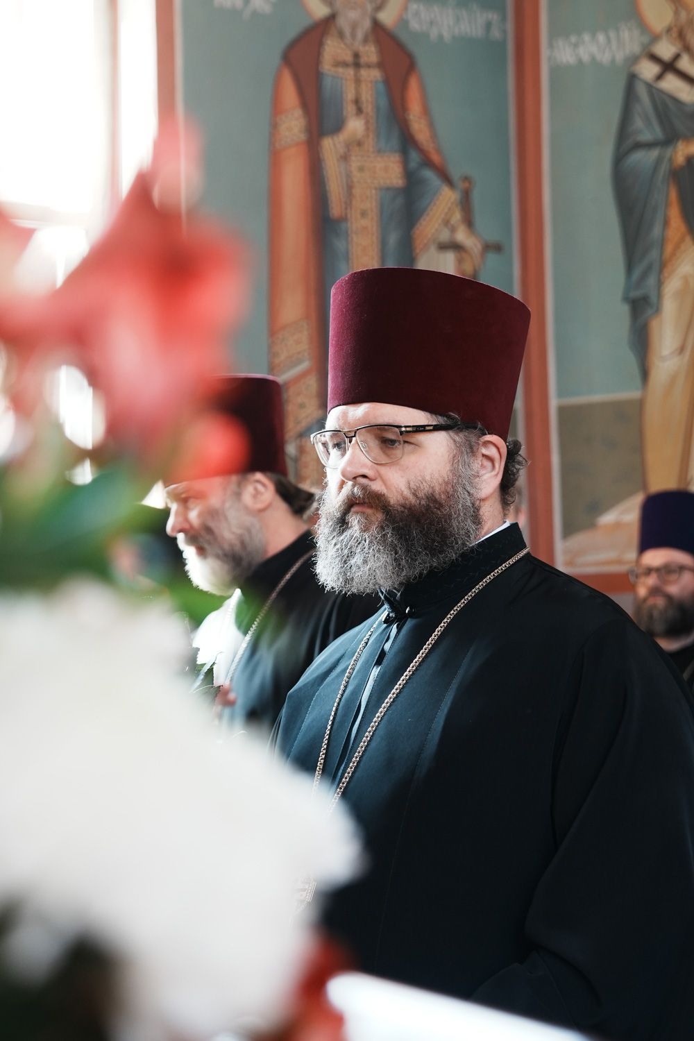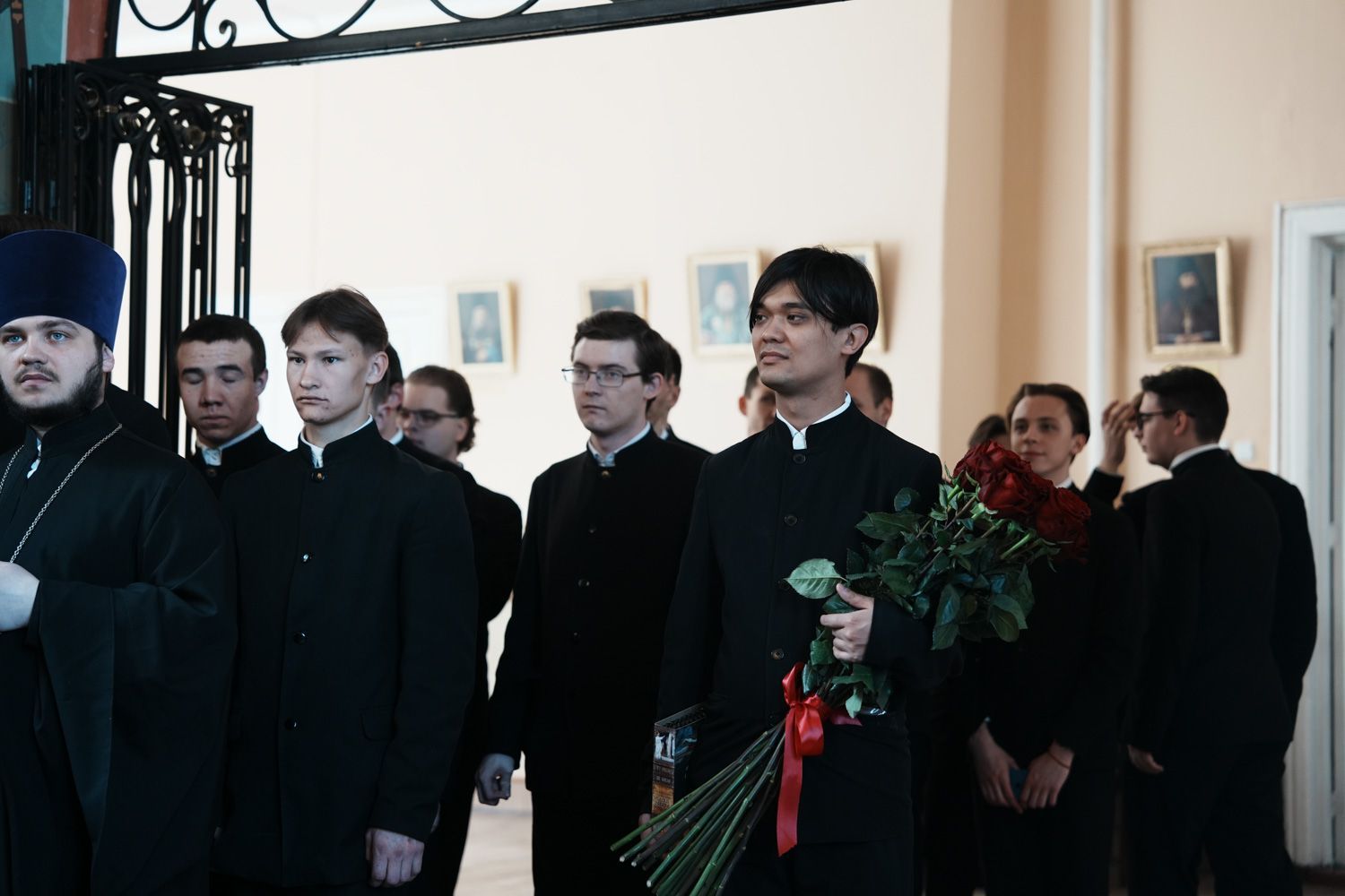 С ответным поздравительным словом от лица администрации, преподавателей и студентов духовной школы к владыке Сергию обратился ректор Самарской духовной семинарии протоиерей Максим Кокарев.