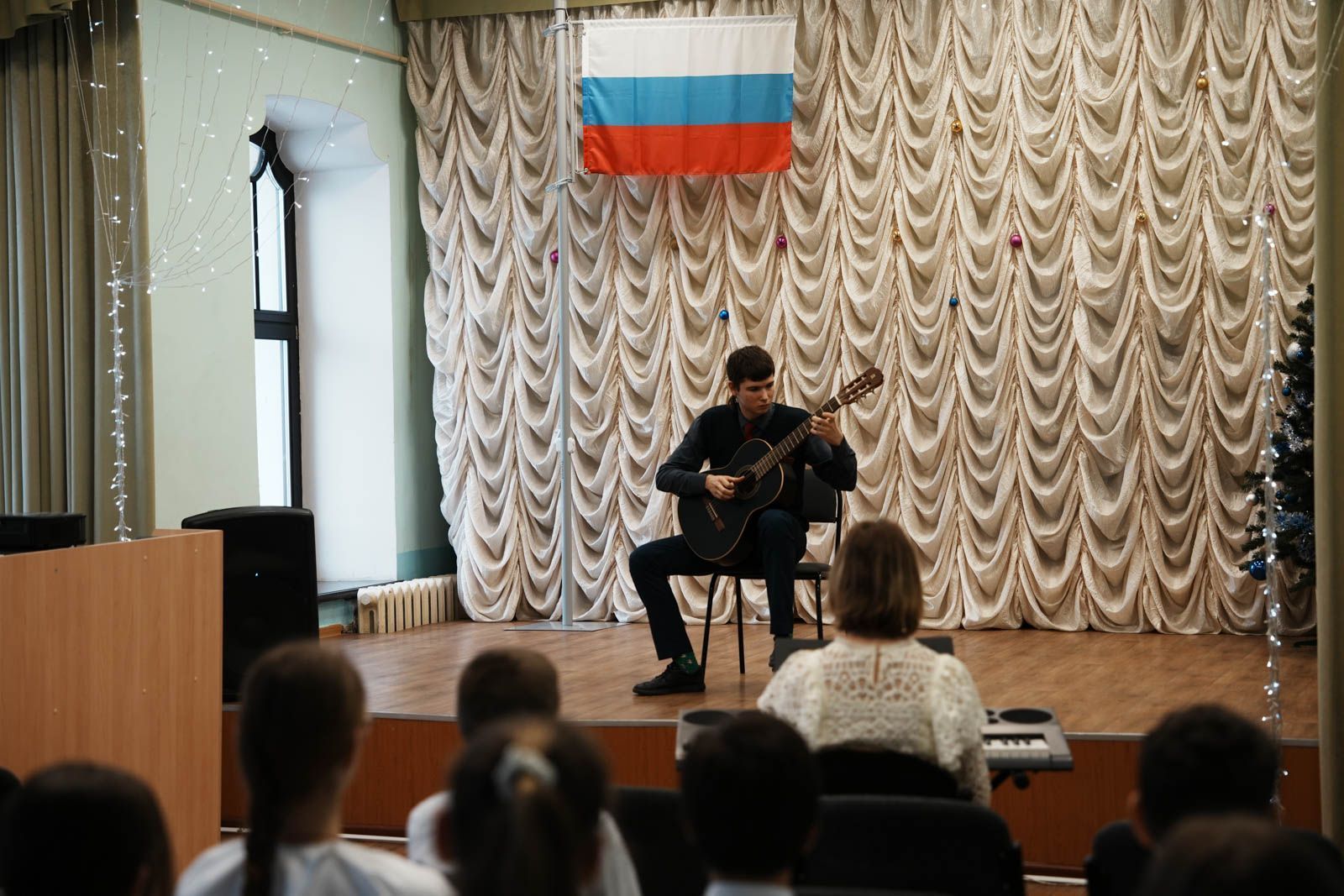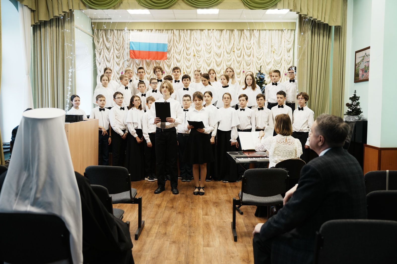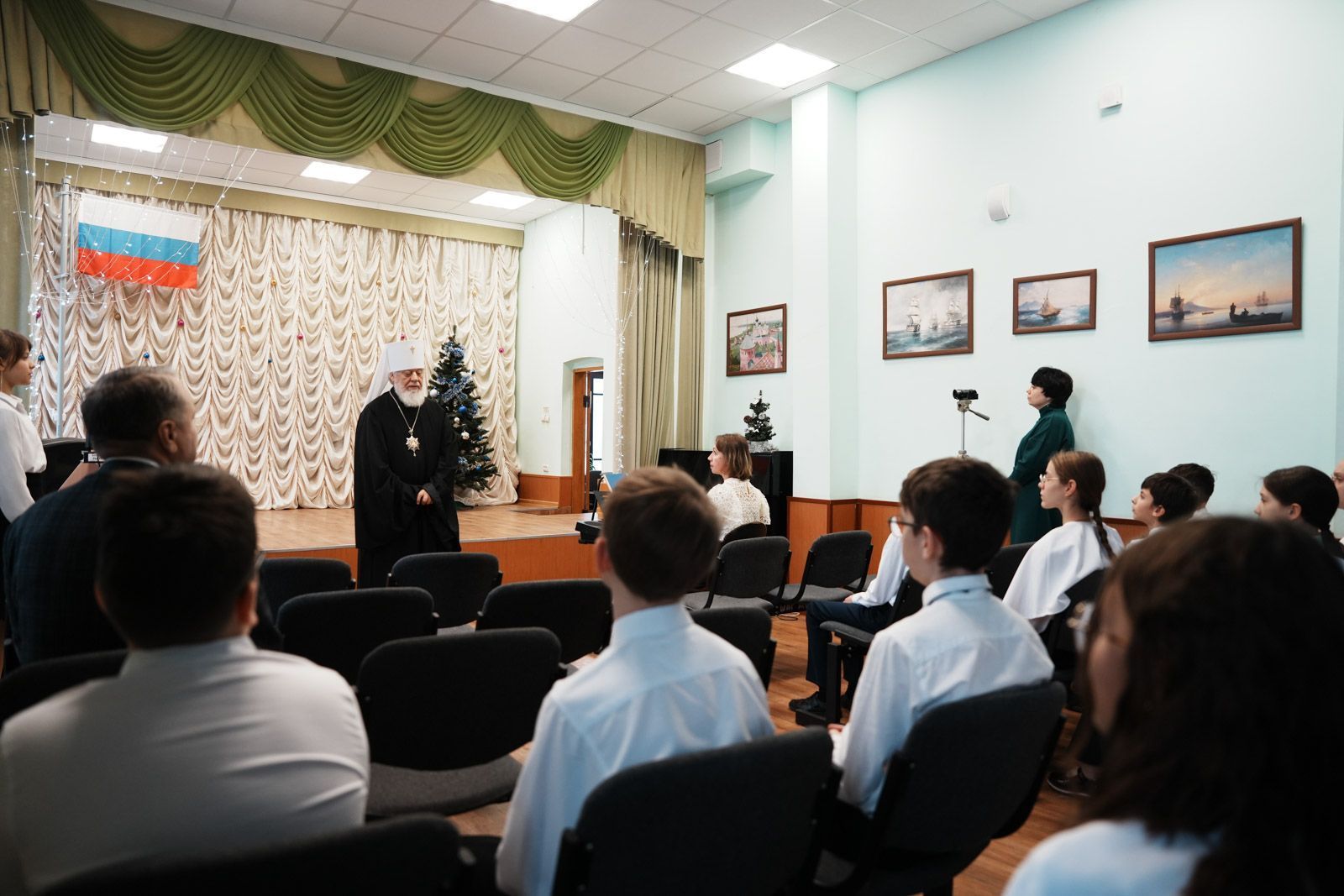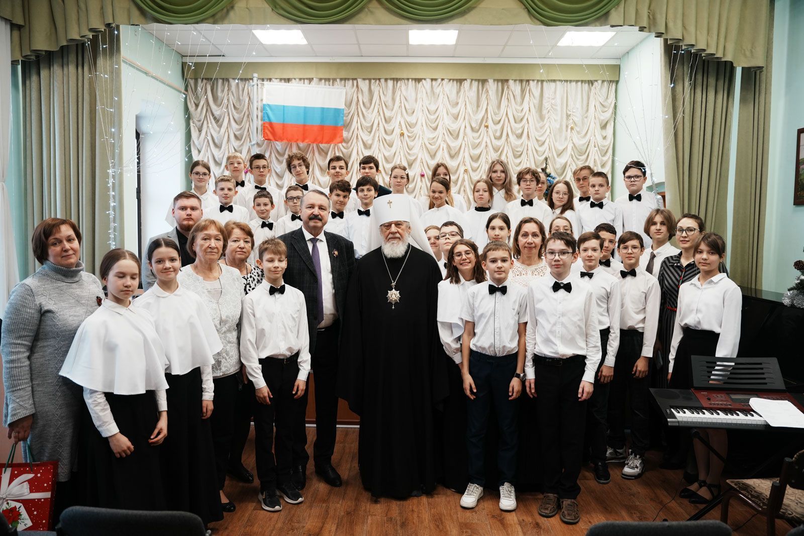 После осмотра образовательного учереждения в актовом зале состоялось общение митрополита Сергия с педагогами и воспитанниками лицея. Учащие подготовили для гостей небольшой концерт.