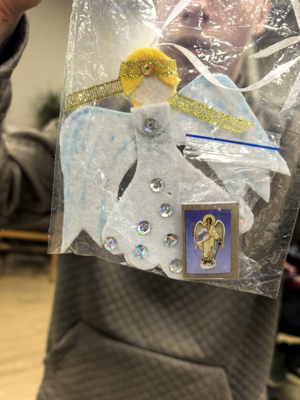Особенной частью встречи стало изготовление памятных подарков для солдат. Дети вырезали из фетра фигурки ангелов, к каждой из которых была приложена молитва. Эти знаки внимания будут переданы бойцам на передовую как символ духовной поддержки и заботы.