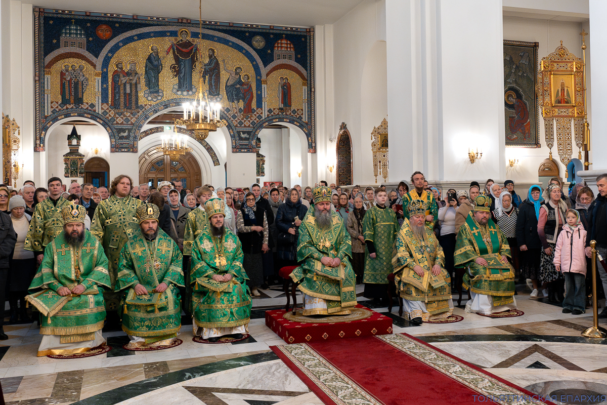 9 ноября 2025 года, в Неделю 22-ю по Пятидесятнице и день памяти преподобного Нестора Летописца Печерского, в Преображенском кафедральном соборе г. Тольятти была совершена соборная Божественная литургия.