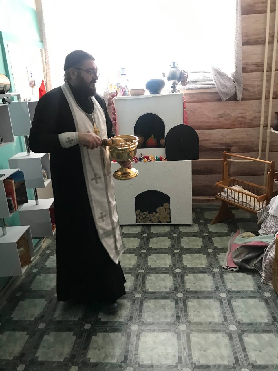 После праздничного утренника иерей Андрей Полевой окропил помещения детского сада святой водой.