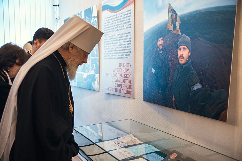 В рамках Года защитника Отечества и в преддверии 80-летнего юбилея победы в Великой Отечественной войне, митрополит Самарский и Новокуйбышевский Сергий в Самарском Епархиальном Церковно - Историческом музее открыл выставку, посвященную выпускнику Самарской Духовной семинарии, полковому священнику, иерею Александру Цыганову, погибшему на СВО осенью 2022 года при исполнении пастырского долга.