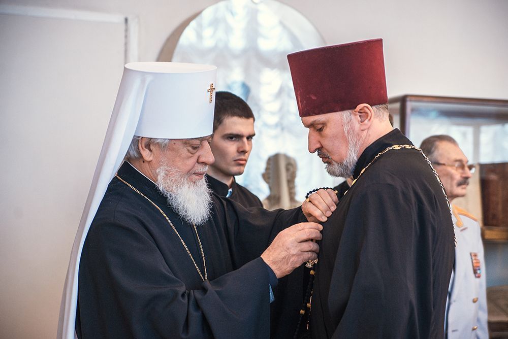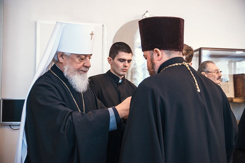 По окончании выставки, митрополит Сергий наградил медалью ордена святого благоверного князя Дмитрия Донского священников которые несут своё служение в зоне СВО: