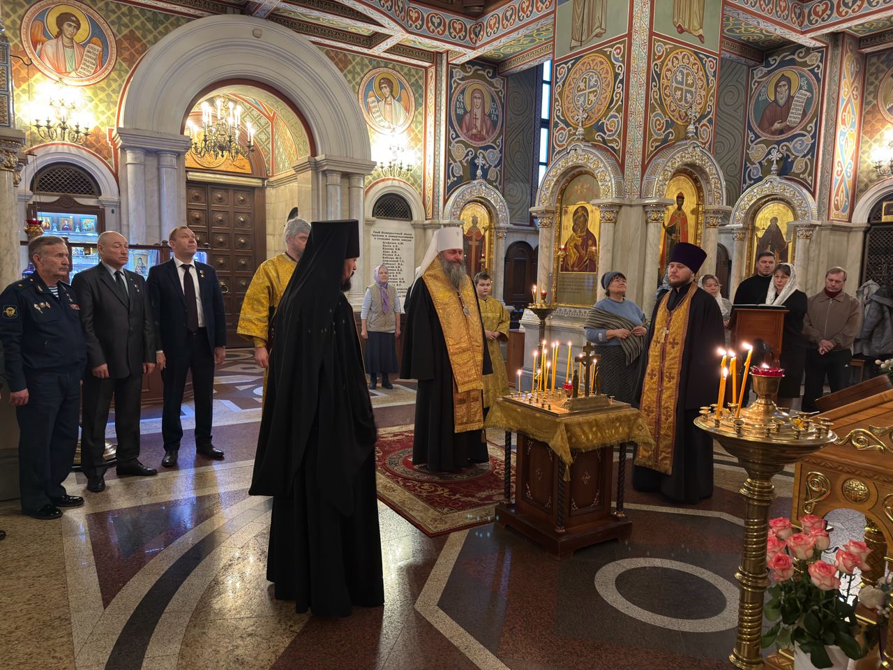 В храме великомученика Георгия Победоносца города Самары Герои России совместно с архипастырем вознесли молитвы за всех усопших воинов, павших за Отечество, за заупокойной литией.