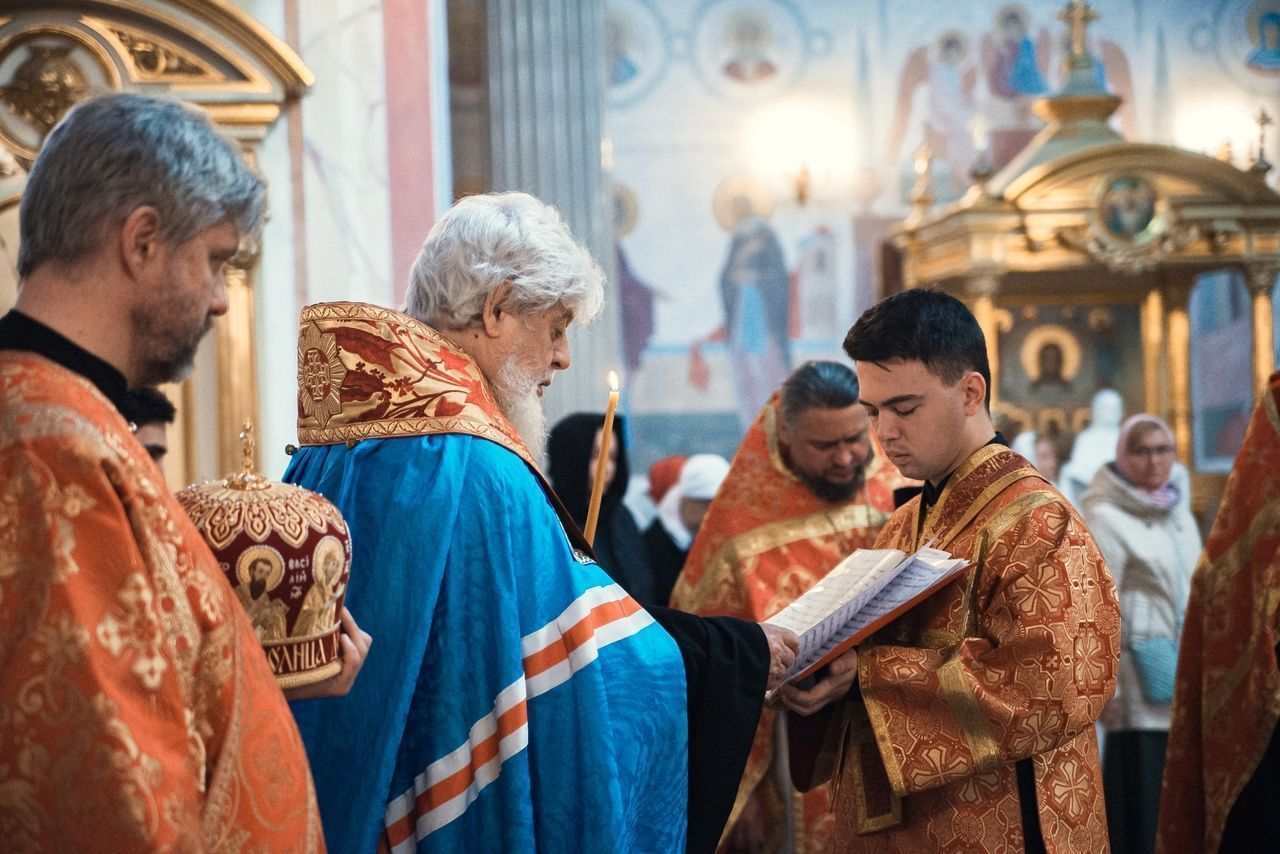 Его Высокопреосвященству сослужили клирики собора.
