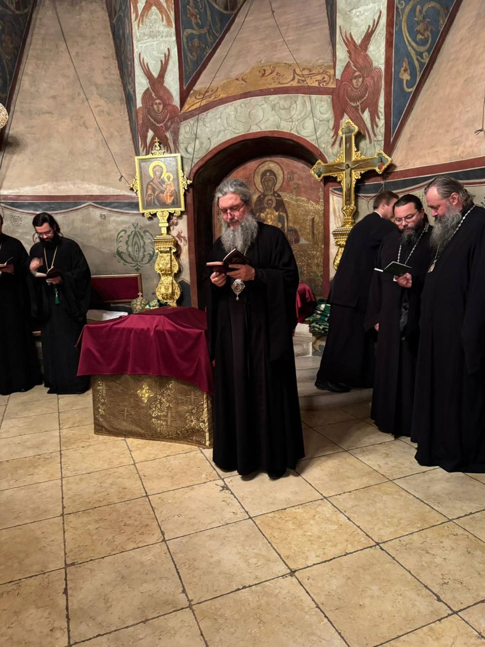 По традиции, в этот вечер богослужения совершались одновременно в различных храмах обители: