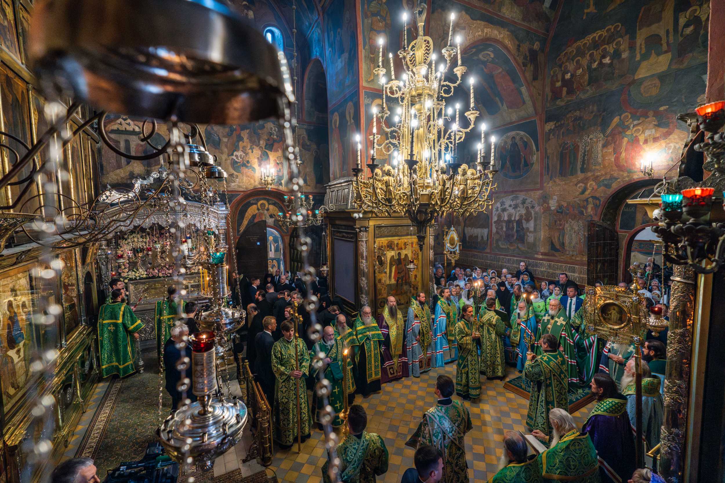 В Успенском соборе Лавры богослужение возглавил митрополит Ташкентский и Узбекистанский Викентий. Ему сослужили архипастыри Русской Православной Церкви, среди которых — митрополит Самарский и Новокуйбышевский Феодосий.