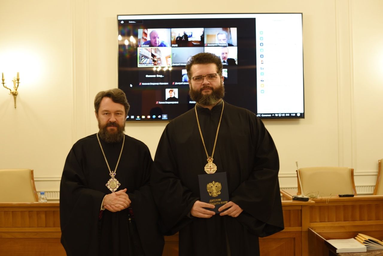 Прот. Максиму Кокареву председателем диссовета митрополитом Волоколамским Иларионом был вручен диплом кандидата наук