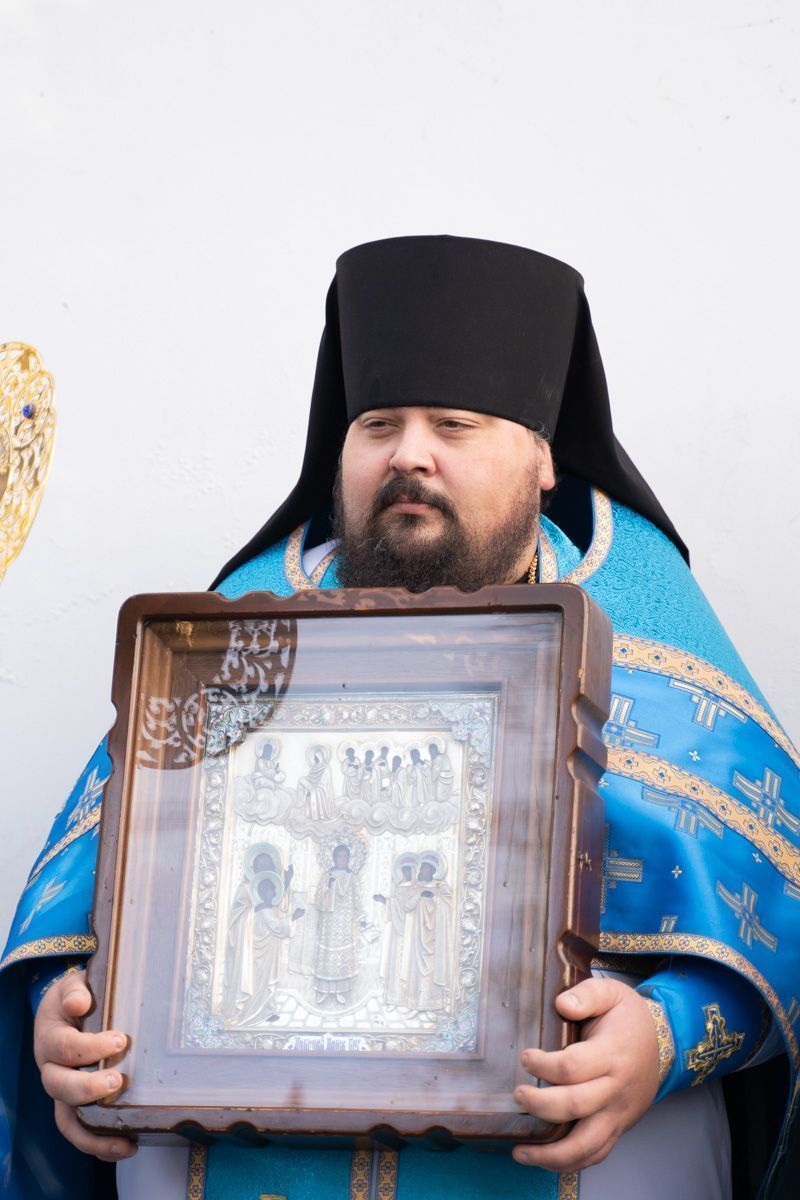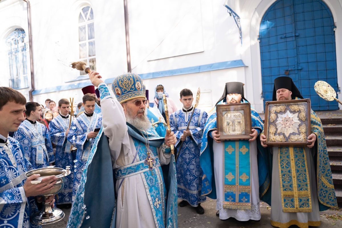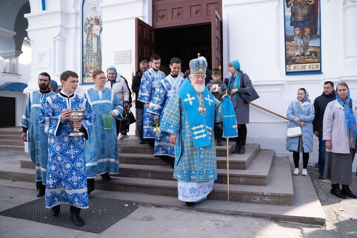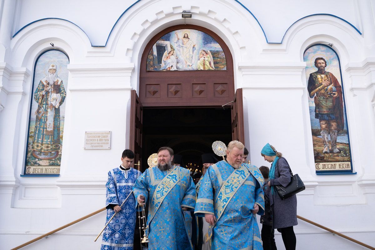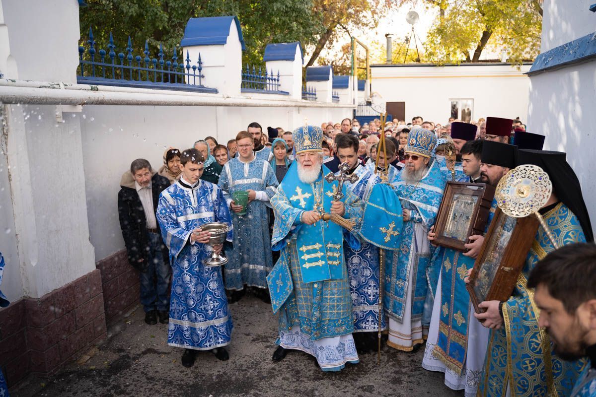 По окончании богослужения состоялся крестный ход вокруг собора, после которого было совершено славление празднику Покрова Пресвятой Богородицы.