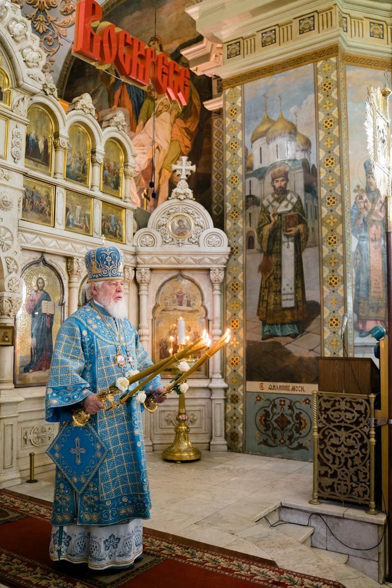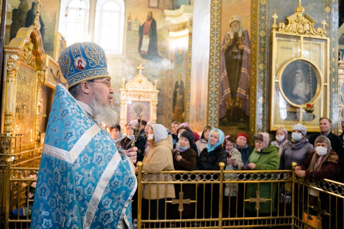 Митрополит Сергий поздравил духовенство и прихожан с престольным праздником и обратился к ним с архипастырским словом. Владыка напомнил, что святость помогает нам определить своё место в жизни. И, в первую очередь, примером нам служат святые, так как это очень мужественные люди. Первым примером для всех нас может служить Божья Матерь. Также митрополит Сергий напомнил молящимся о связи Покрова с Крестоношением. «Только тогда, когда мы не отвергаемся несения своего Креста и следования за Христом, только тогда мы достойны Покрова Божией Матери над нами. Помолимся же о том, чтобы и над нашей Русской землёй всегда простирался Её покров, и все мы не забывали о дивных деяниях Господа в нашей жизни!».