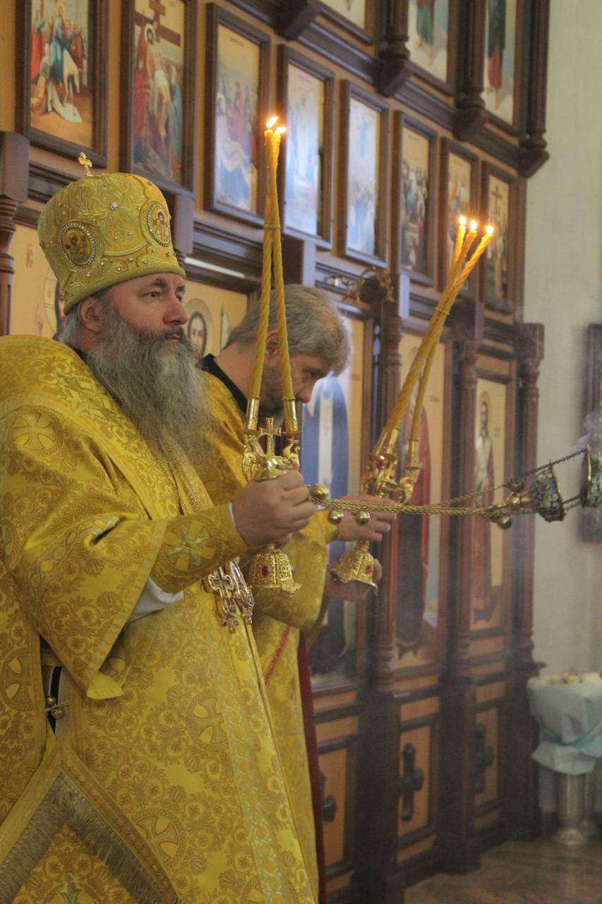 Его Высокопреосвященству сослужили настоятель храма протоиерей Сергей Нестеров и духовенство митрополии.