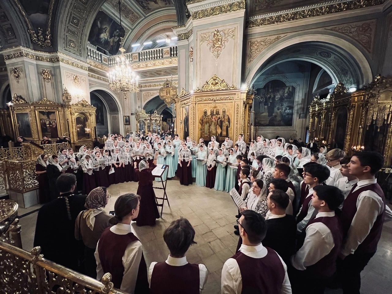 Затем юношеский хор исполнил духовные песнопения для прихожан.
