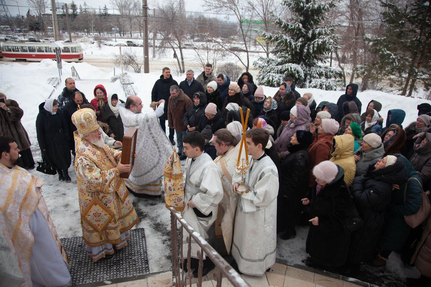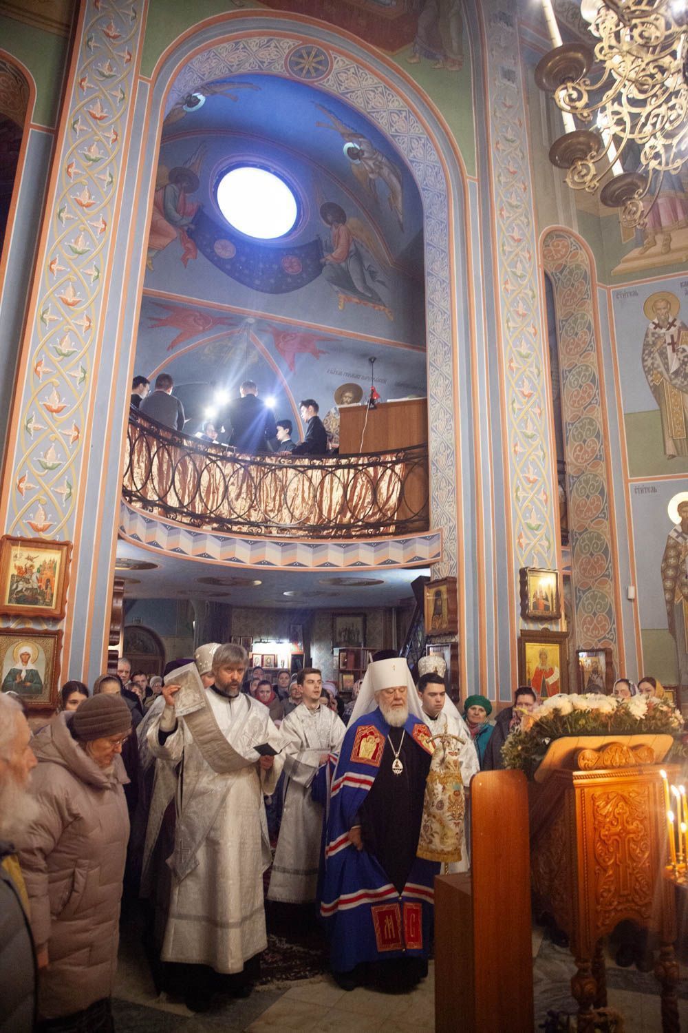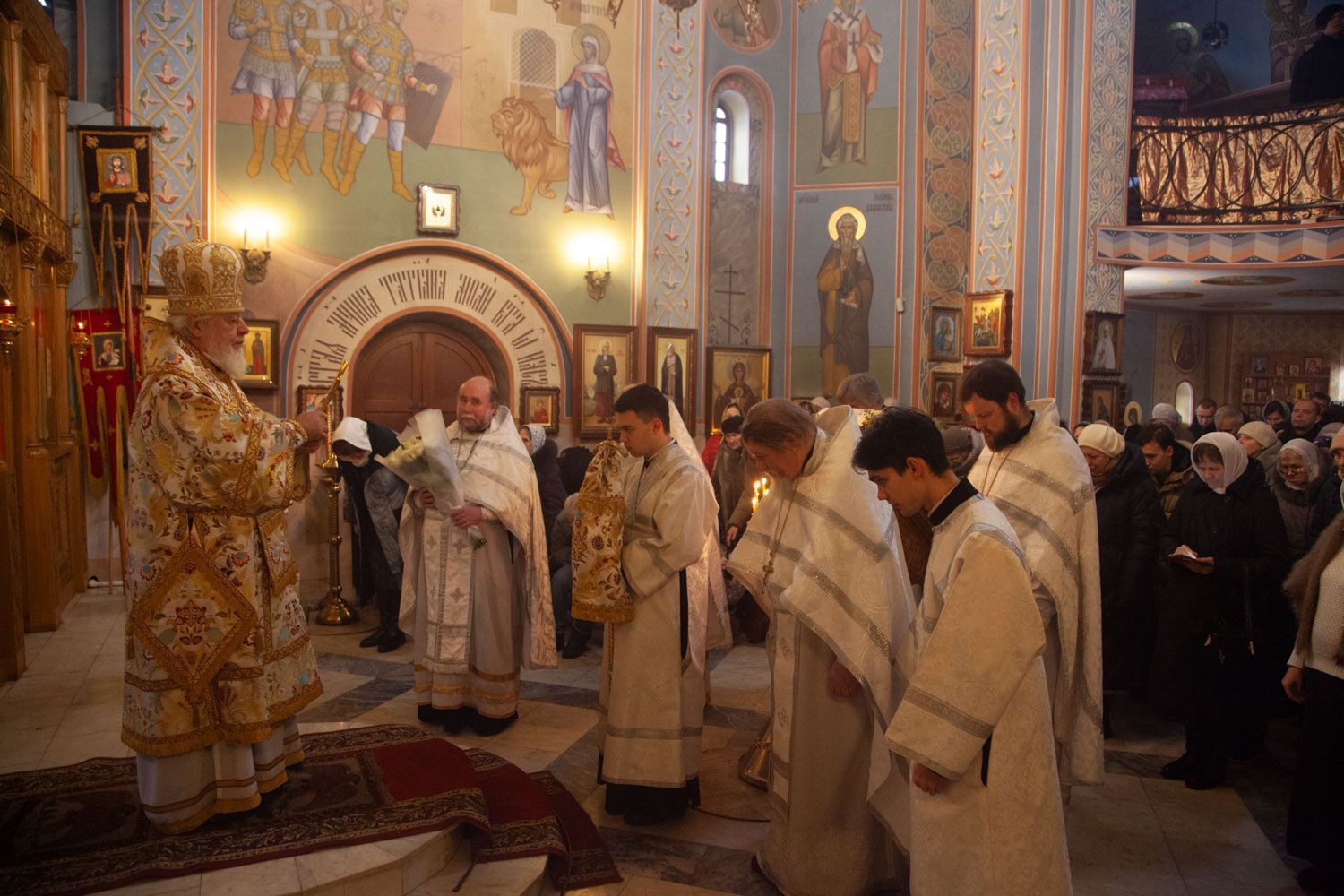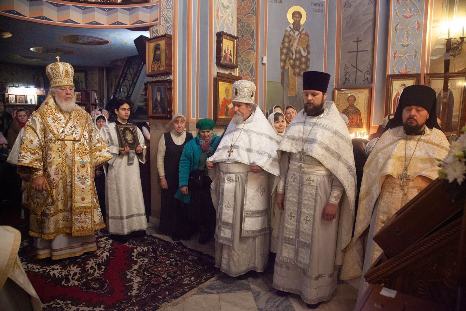 В заключении богослужения Владыка-Митрополит совершил торжественный молебен и Крестный ход в честь Святой Татианы. После чего, настоятель храма, иерей Алексий Турлов, приветствовал Владыку поздравительным словом. Затем Митрополит обратился к молящимся с архипастырским словом и благословением.