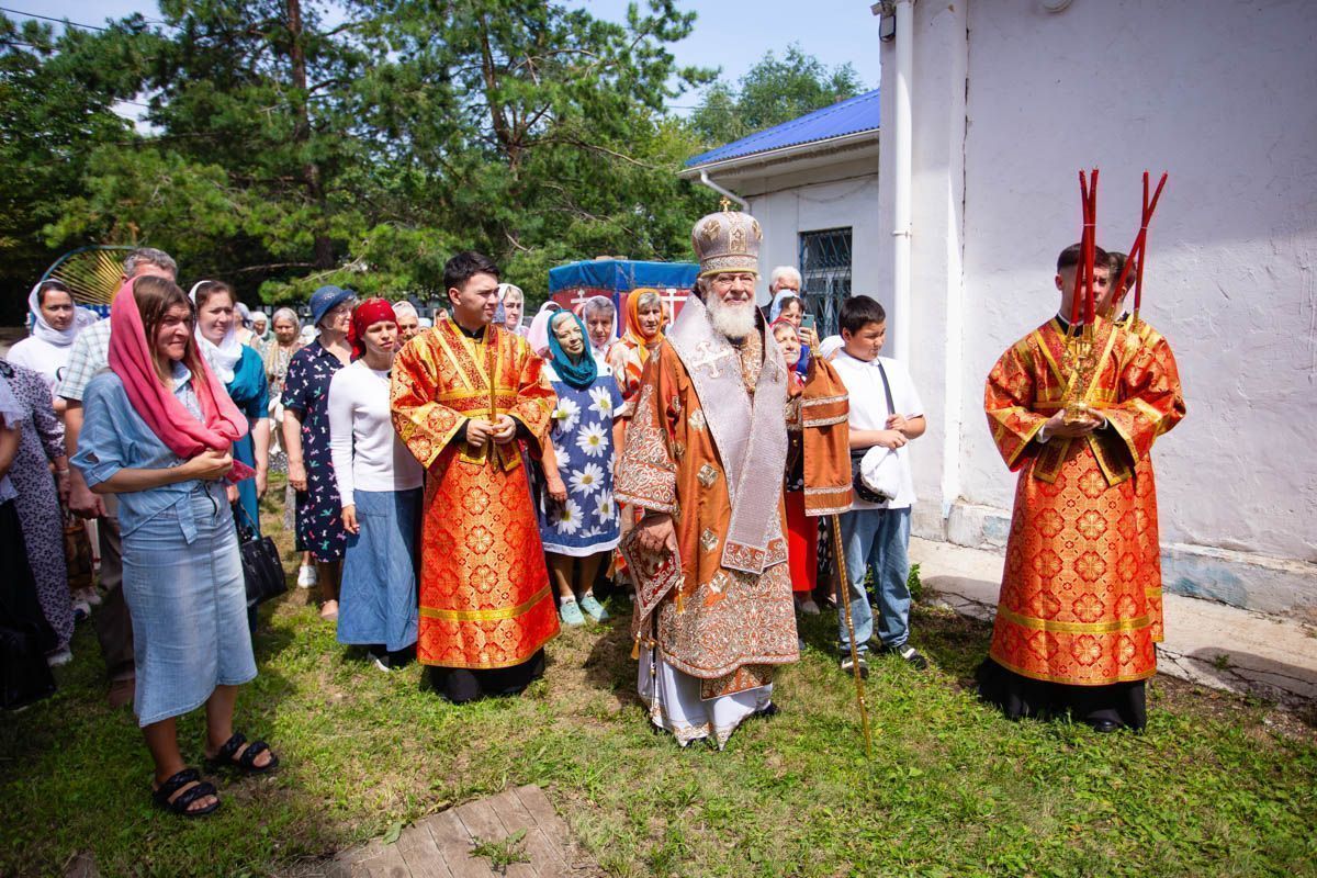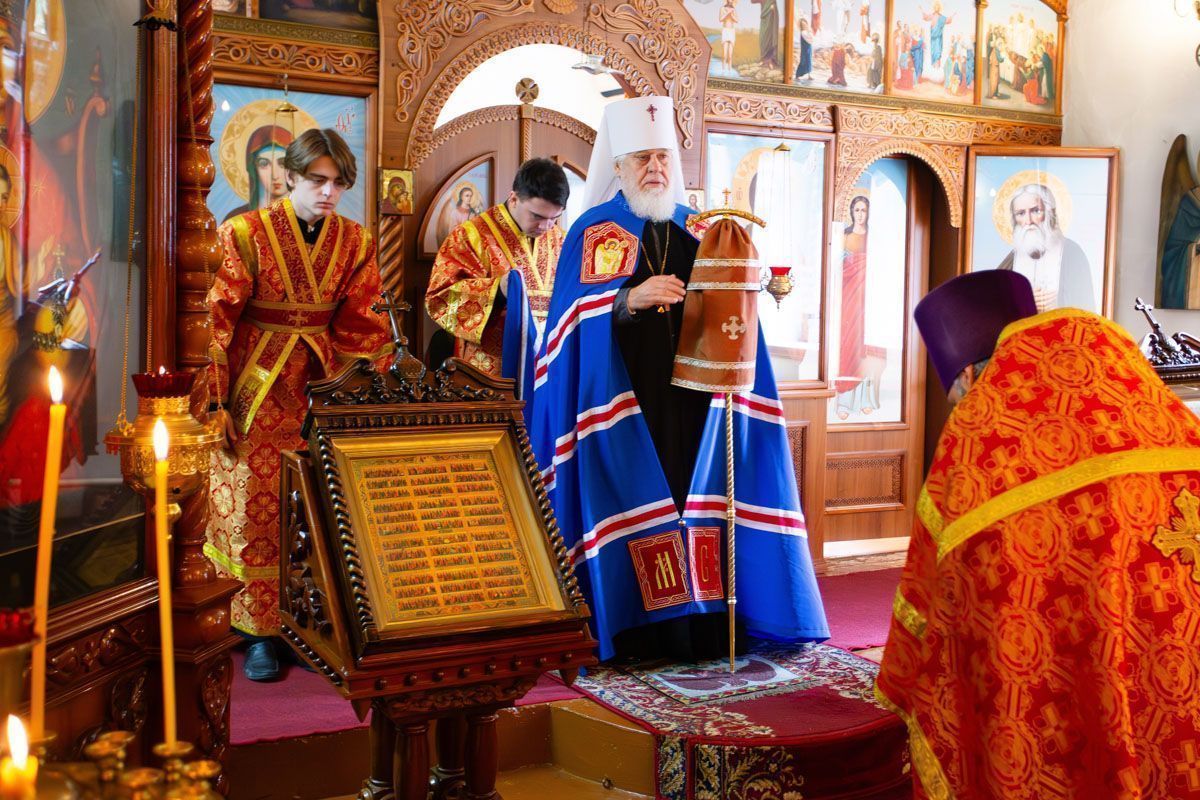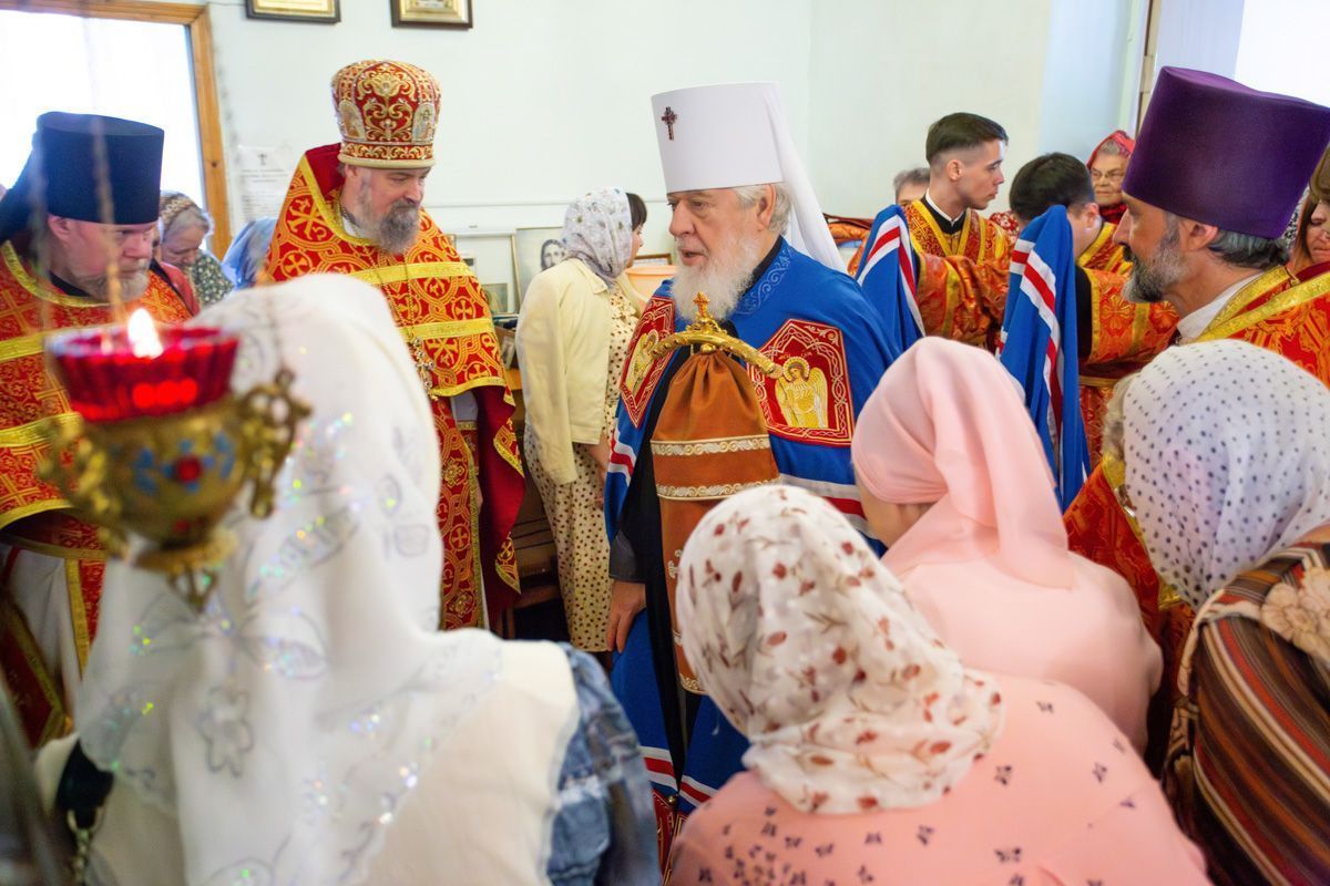Архипастырю сослужили: архимандрит Вениамин (Лабутин), зав. Межвузовской кафедрой теологии и истории религий, иеромонах Феодор (Будаев), секретарь епархиального управления, иеромонах Никита (Корежин), личный секретарь митрополита, протоиерей Александр Божков, настоятель храма в честь свв. Царственных страстотерпцев.