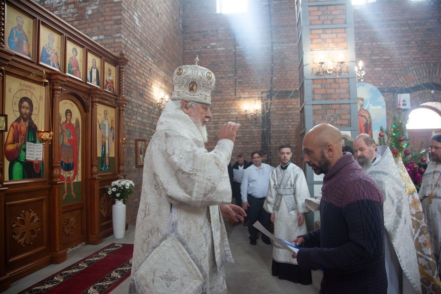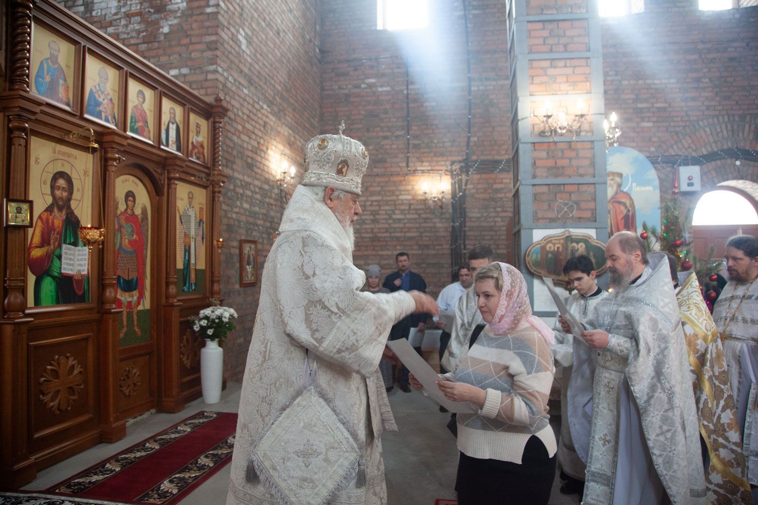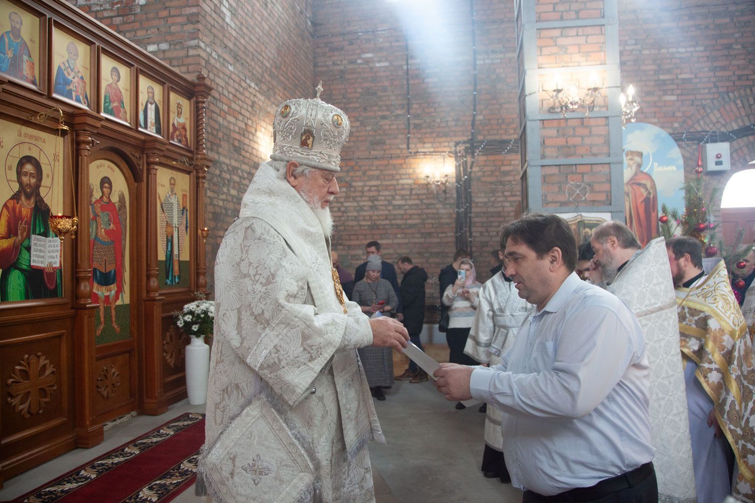 По окончании службы настоятель храма, иерей Алексий Барсуков, приветствовал Владыку поздравительным словом. Митрополит Сергий взаимно поздравил всех прихожан с Праздником, пожелав помощи Божией в дальнейшем укреплении и развитии прихода.