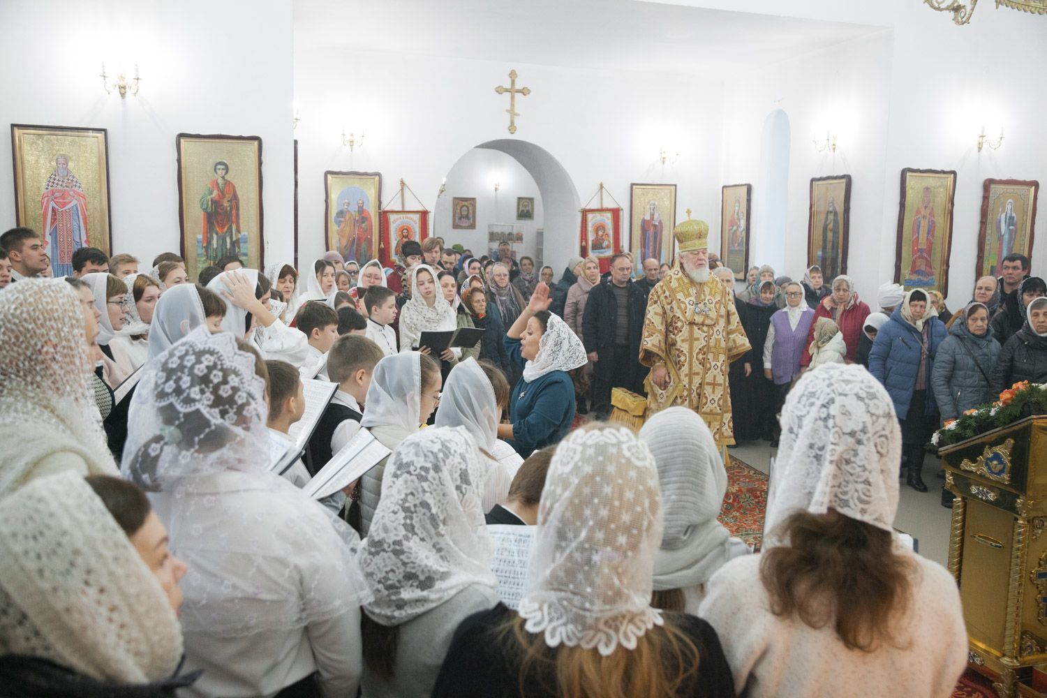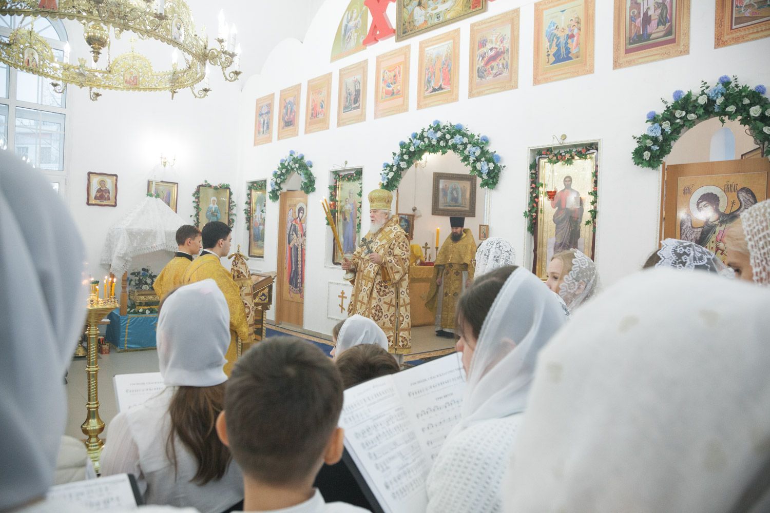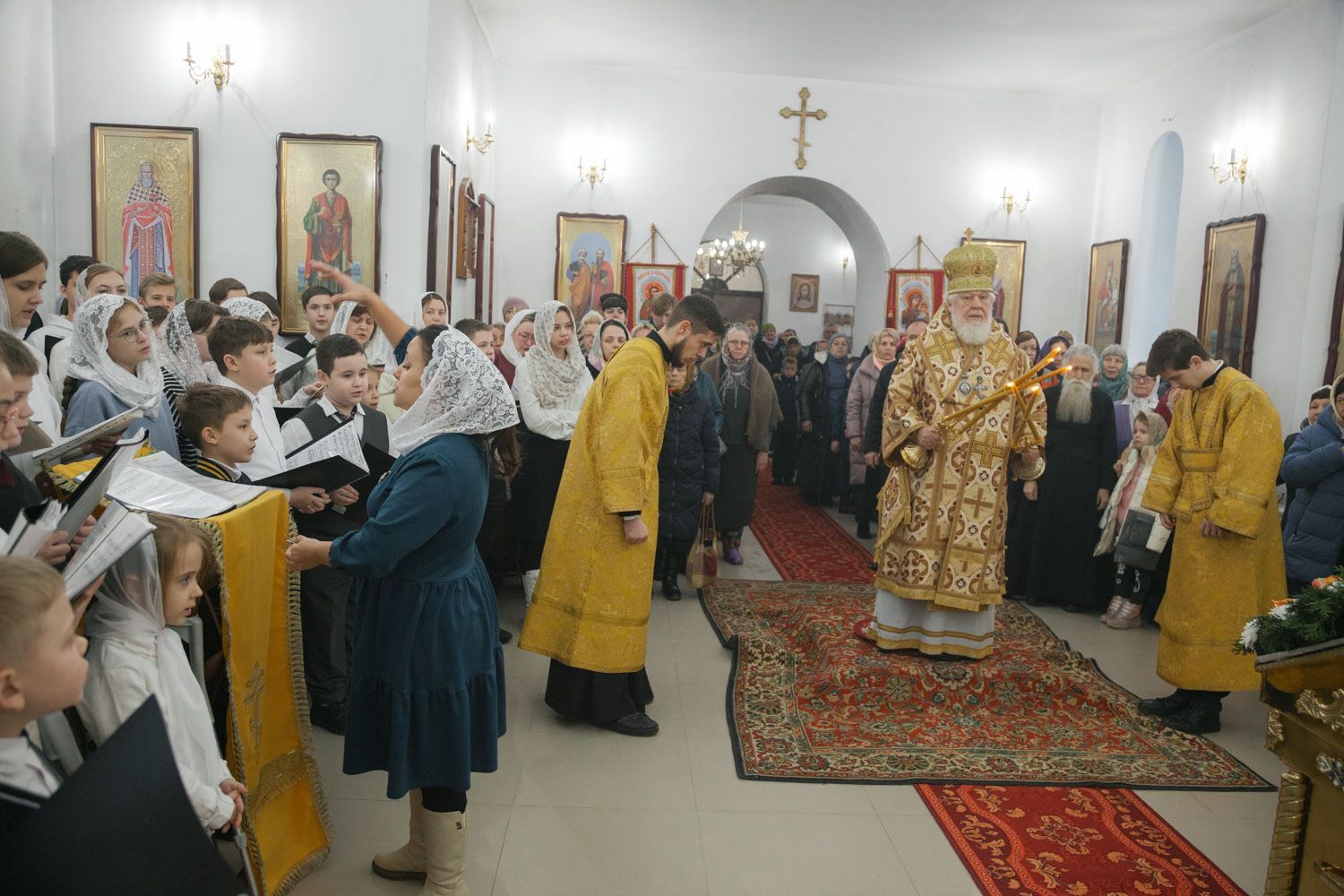 Богослужебные песнопения исполнили Губернский студенческий хор "София", регент диакон Андрей Попов и детский хор, регент Мария Левина
