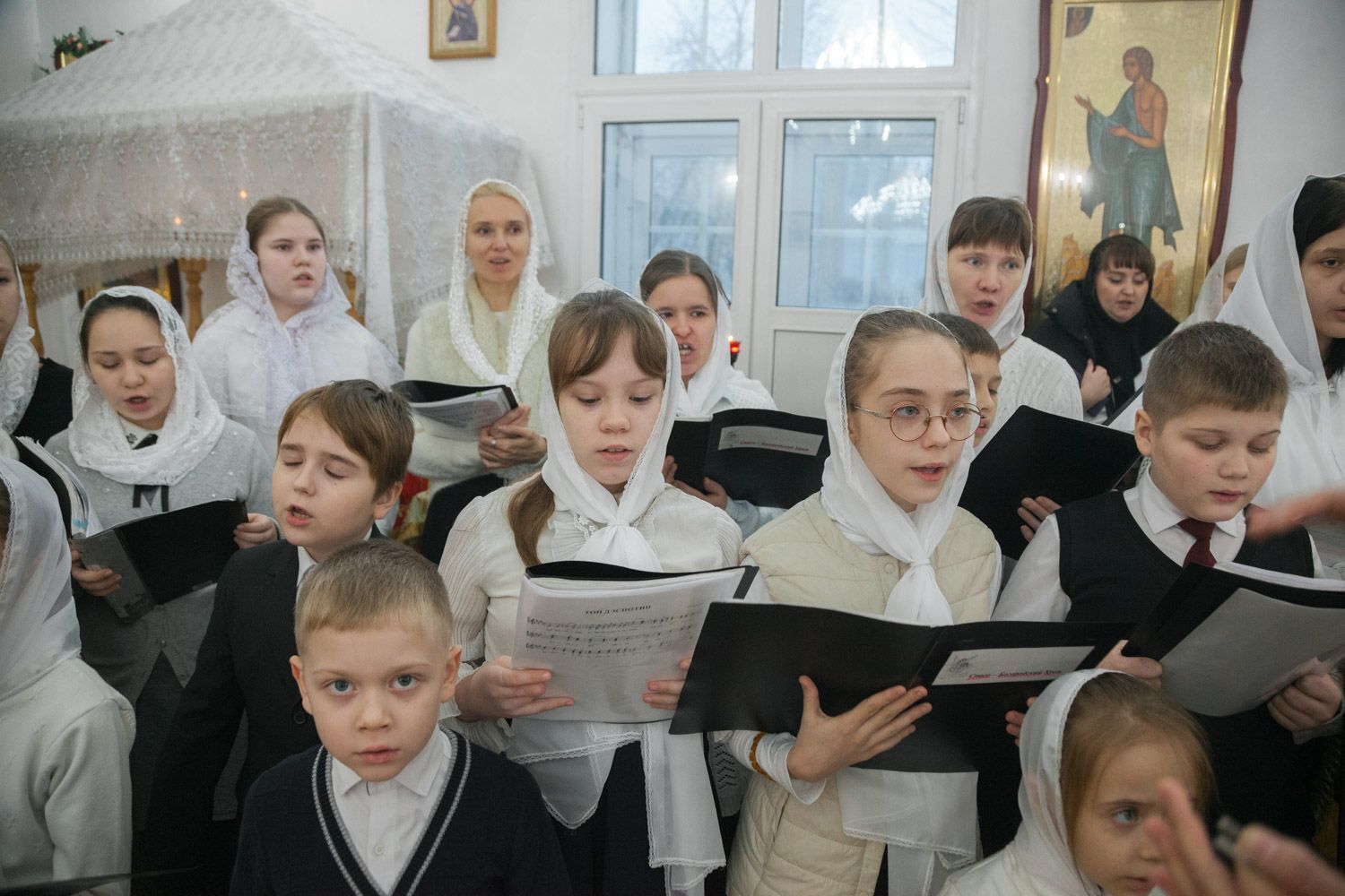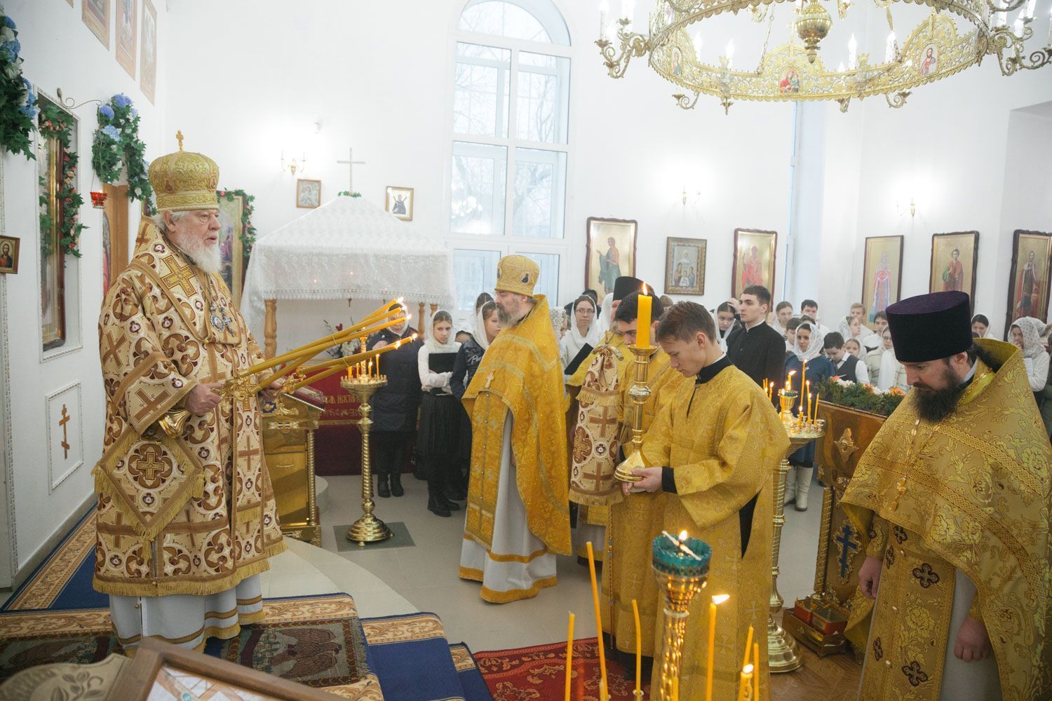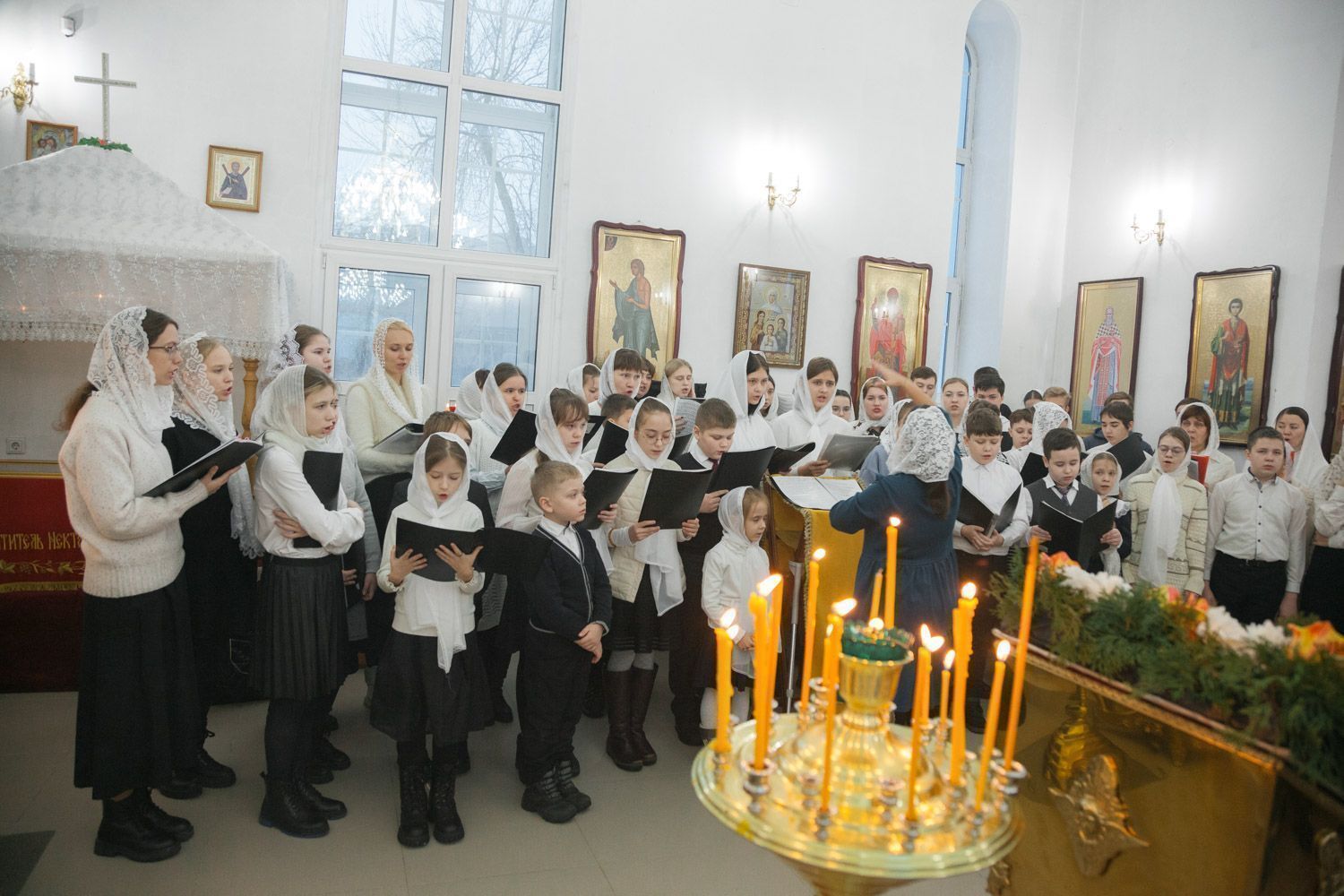 Богослужебные песнопения исполнили Губернский студенческий хор "София", регент диакон Андрей Попов и детский хор, регент Мария Левина