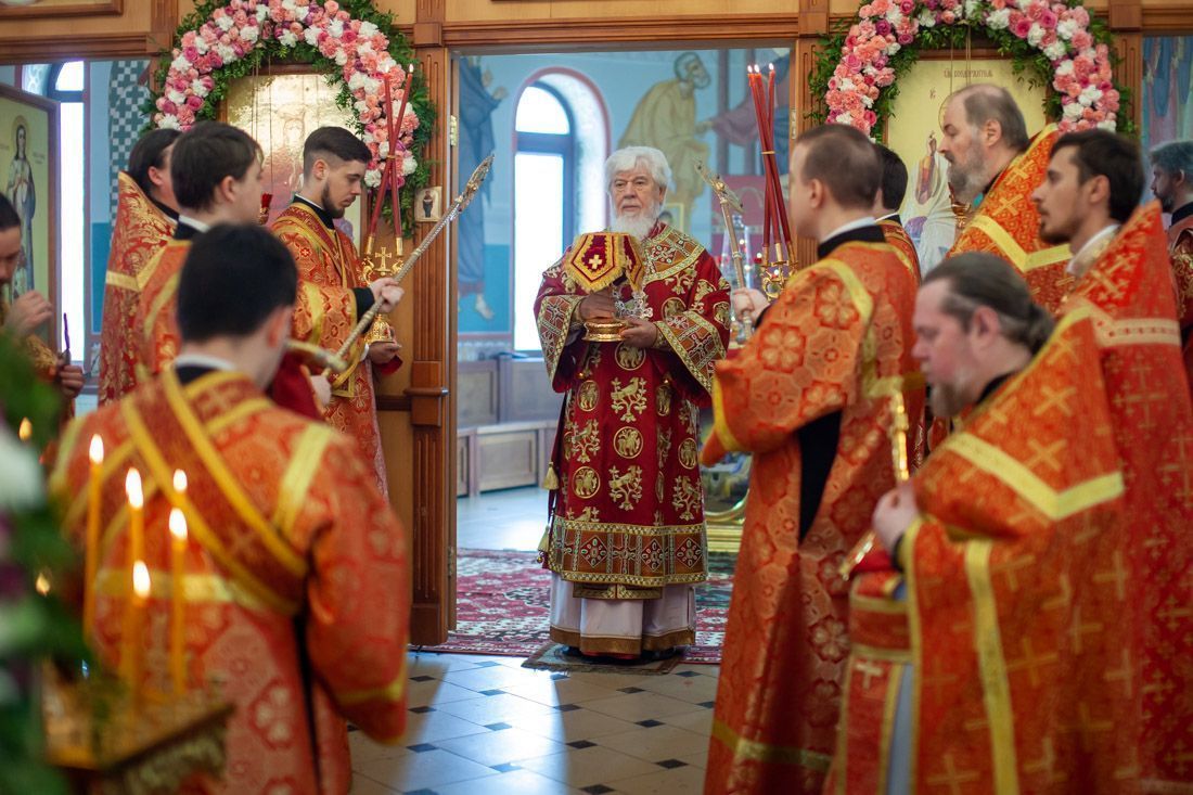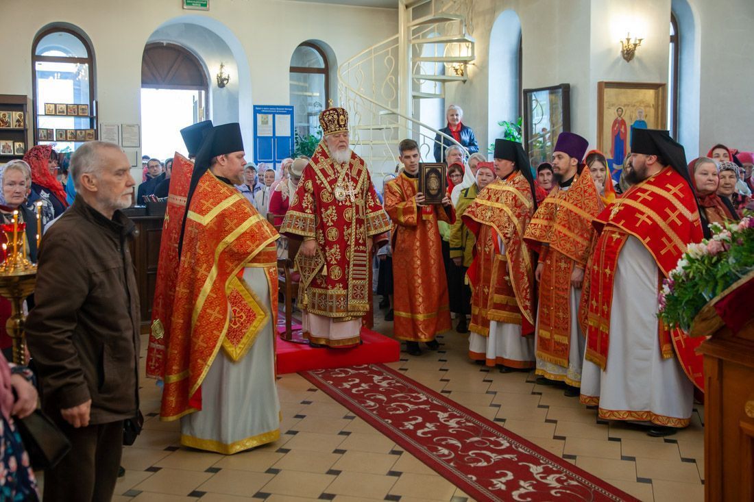В завершение богослужения митрополит Сергий поздравил прихожан с престольным праздником и обратился к верующим со словом проповеди.