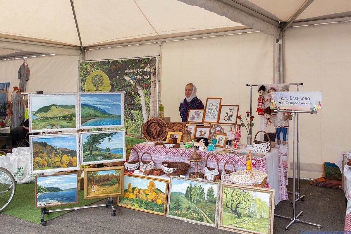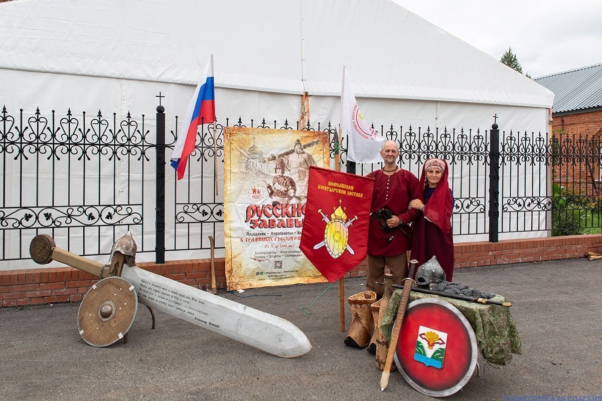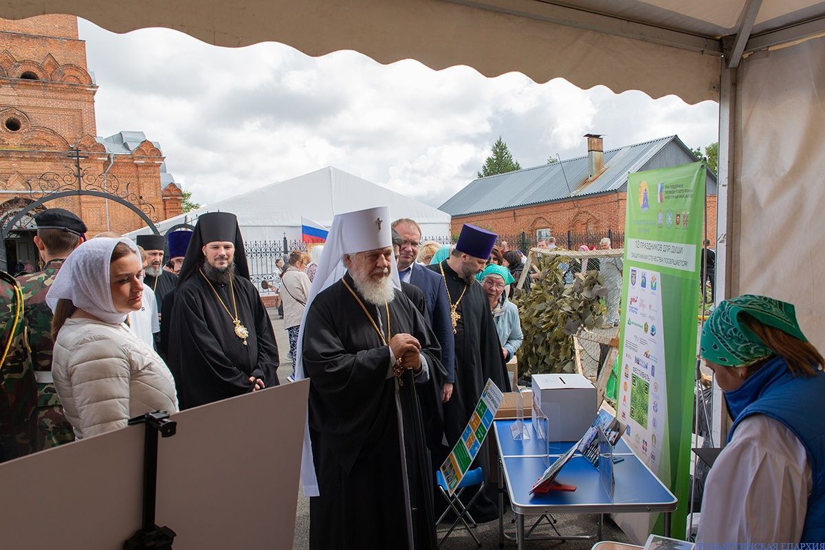 После краткого экскурса в историю храма, который провела сотрудница, священнослужители осмотрели прихрамовую площадку. Здесь в честь праздника Медового Спаса и юбилея храма работали выставочные павильоны сельских поселений и медовая ярмарка.