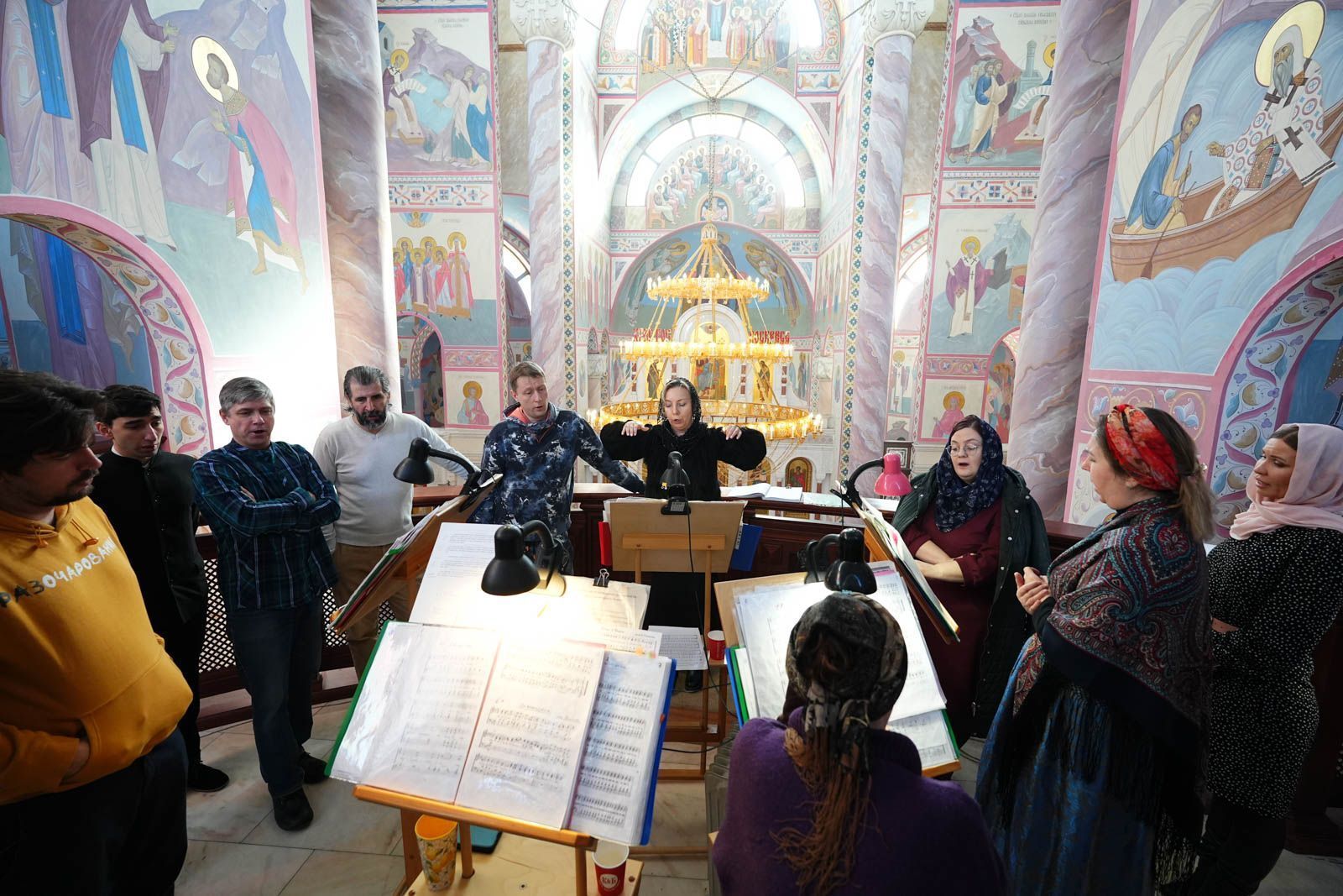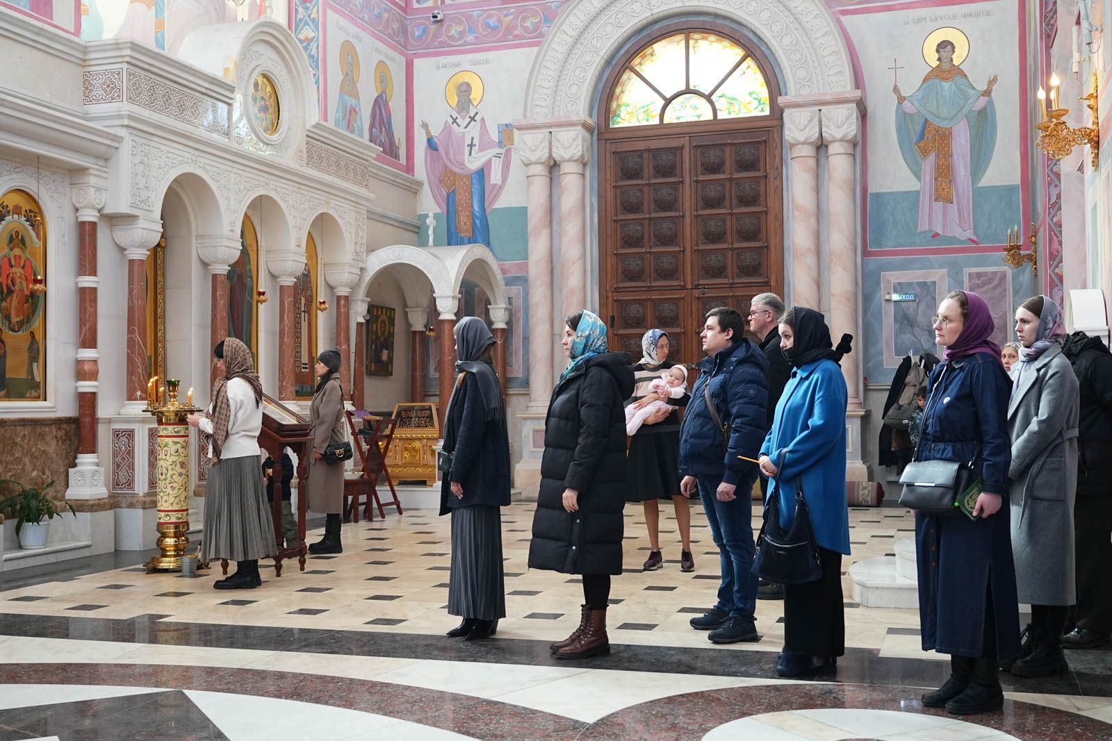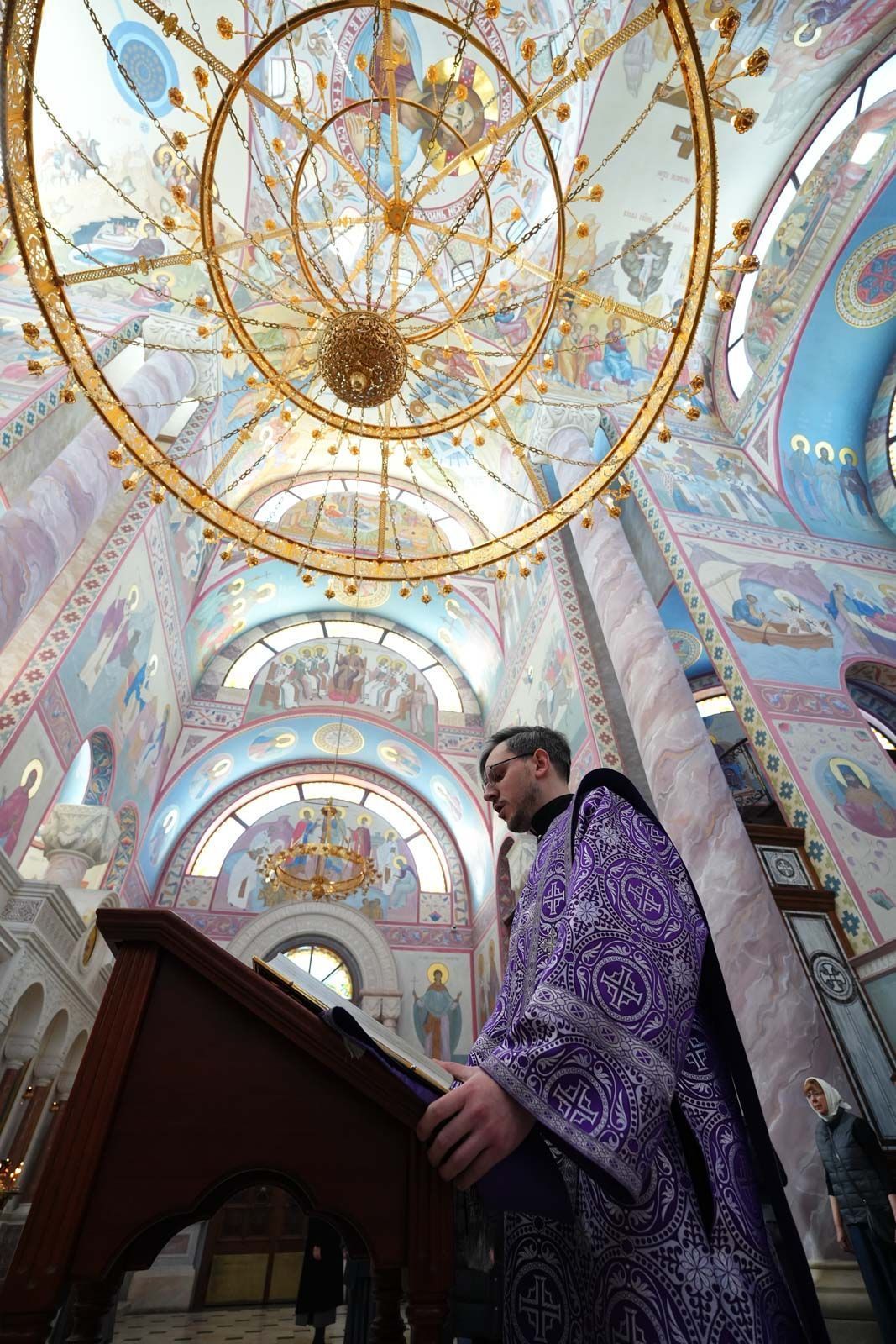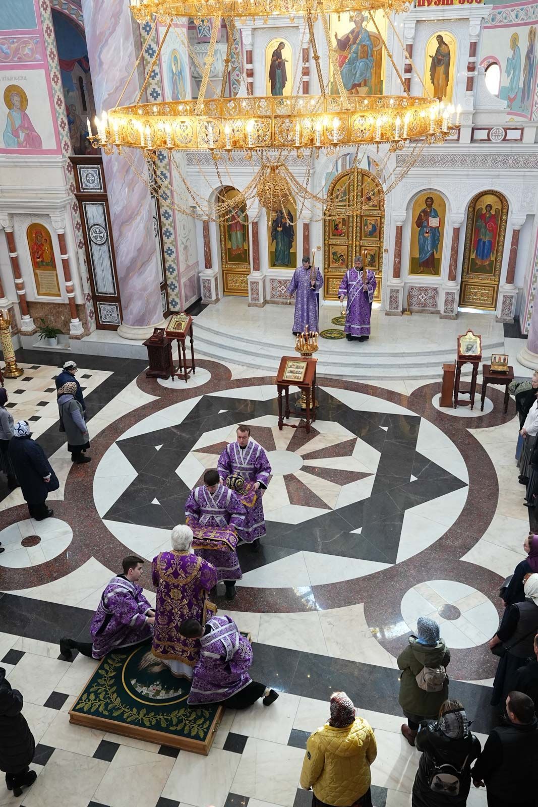 Песнопения литургии исполнил большой хор собора под управлением регента Анастасии Горбатенко.