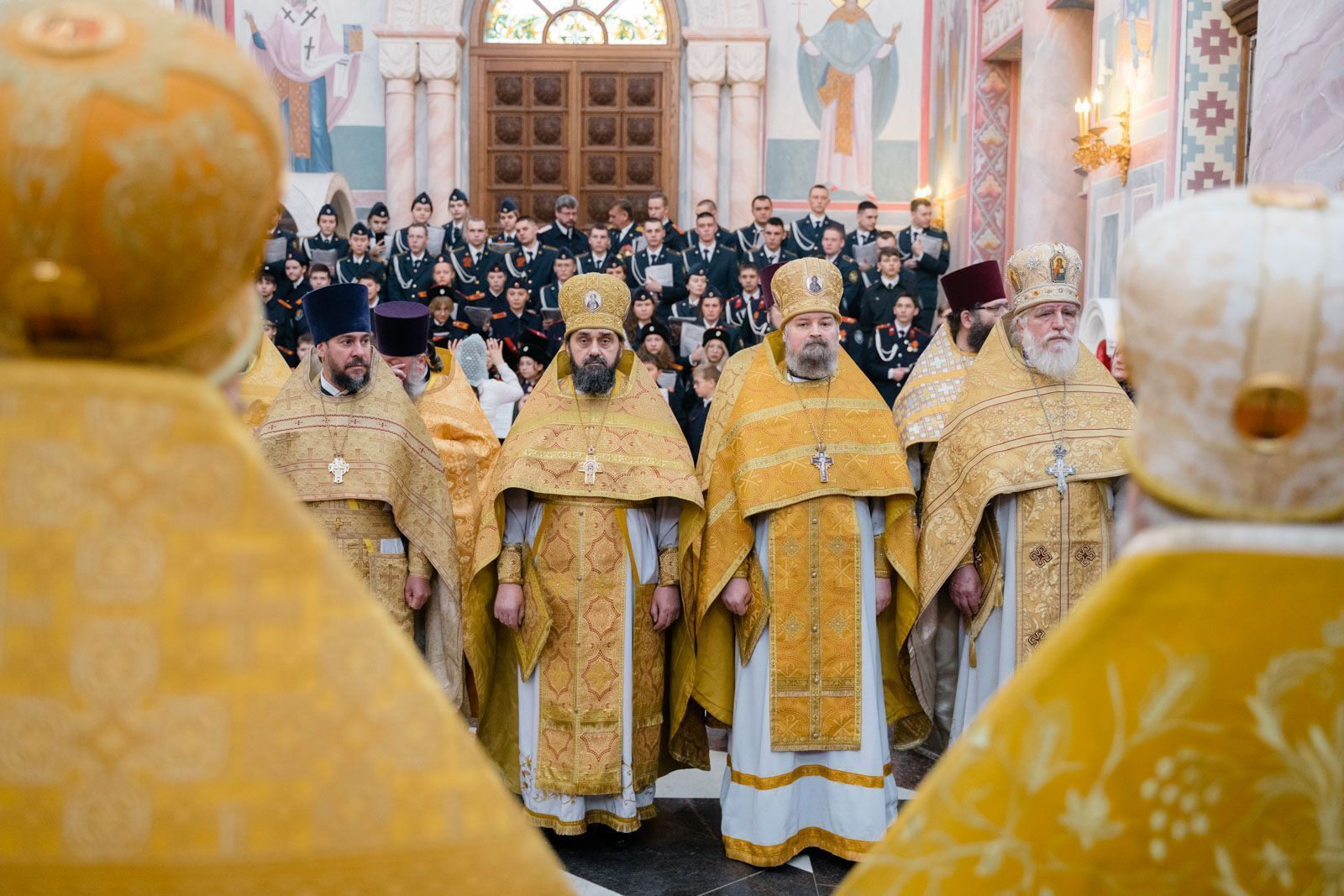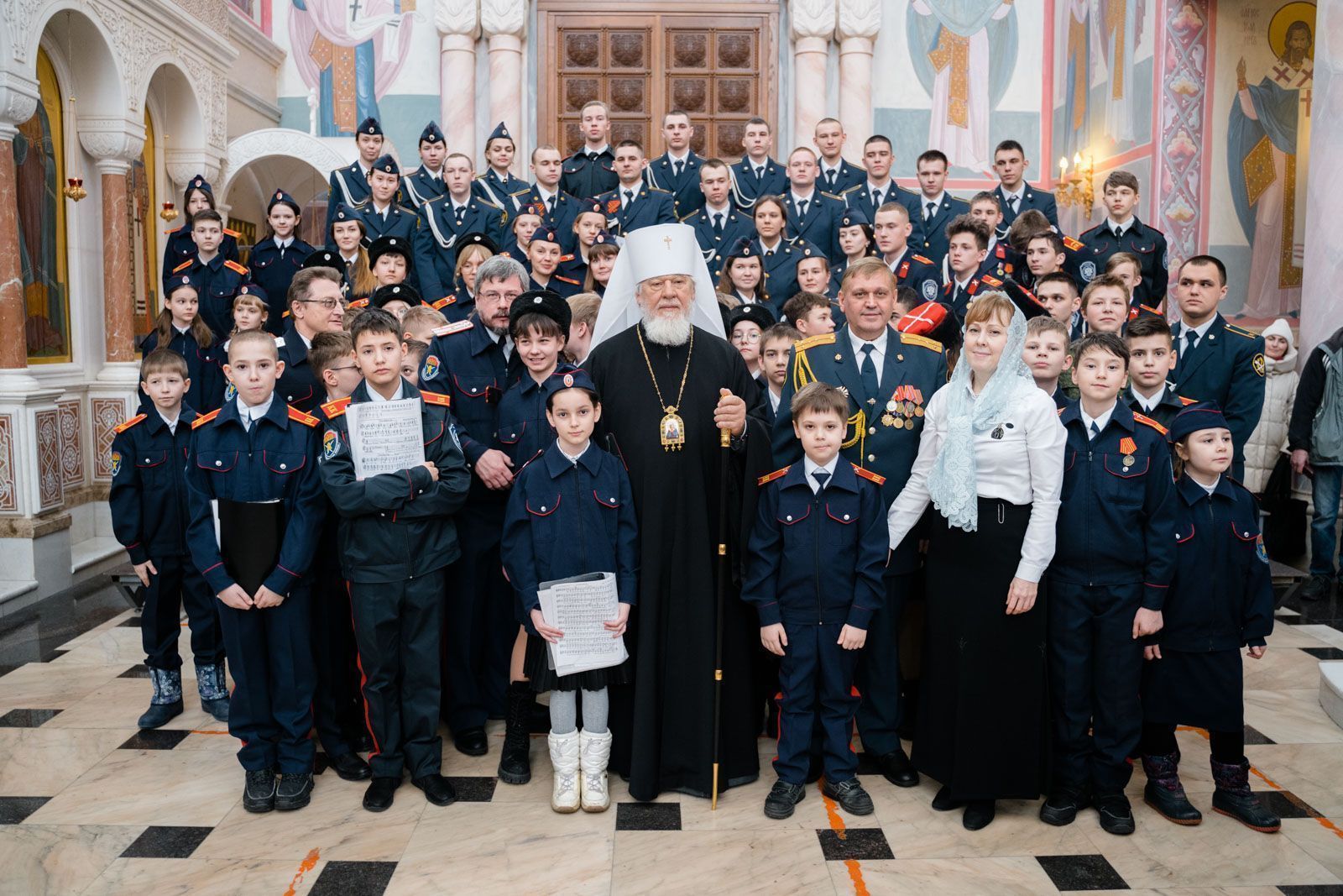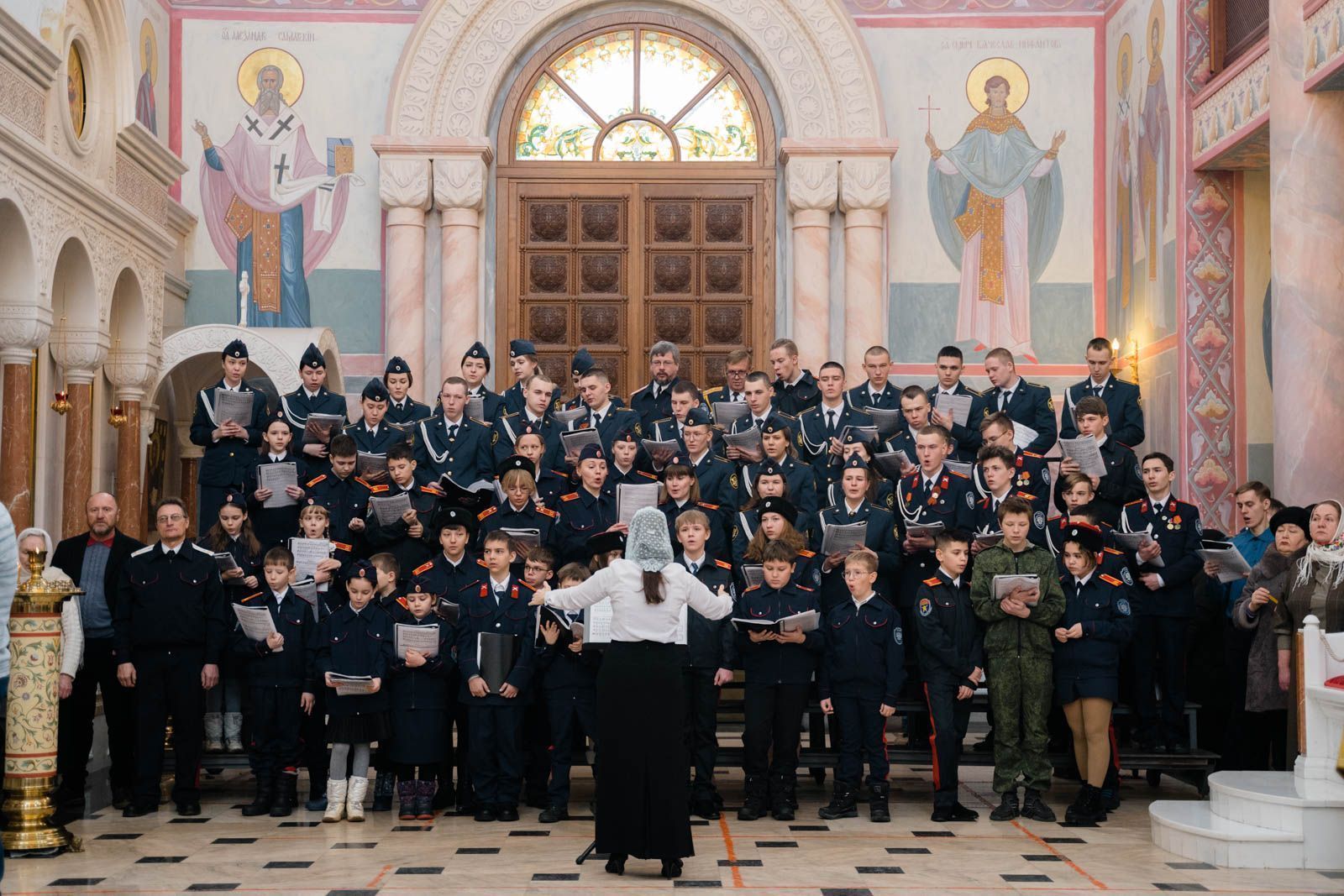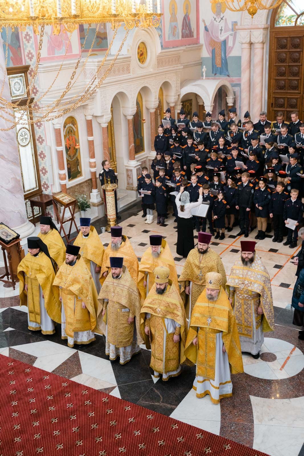 Богослужебные песнопения исполнили: сводный детский хор Самарской епархии «Благо» – регент Мария Викторовна Синицына, мужской губернский хор «София» – регент игумен Никон (Ратников) и сводный хор курсантов Самарского юридического института ФСИН России и кадетов Самарского казачьего кадетского корпуса – регент Вера Александровна Малыгина.