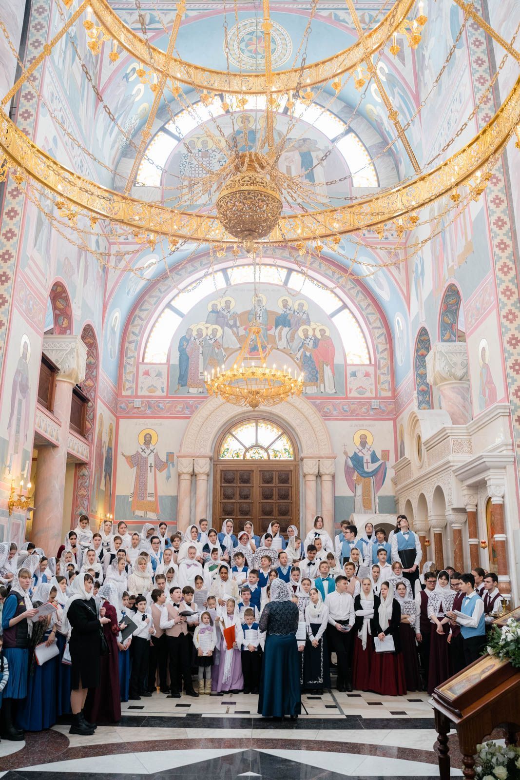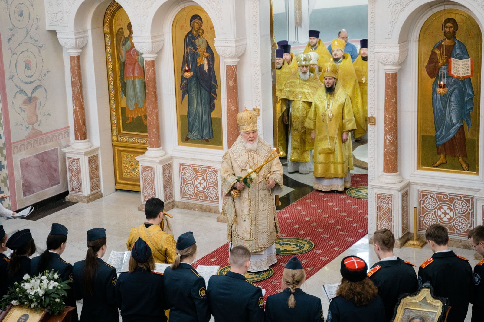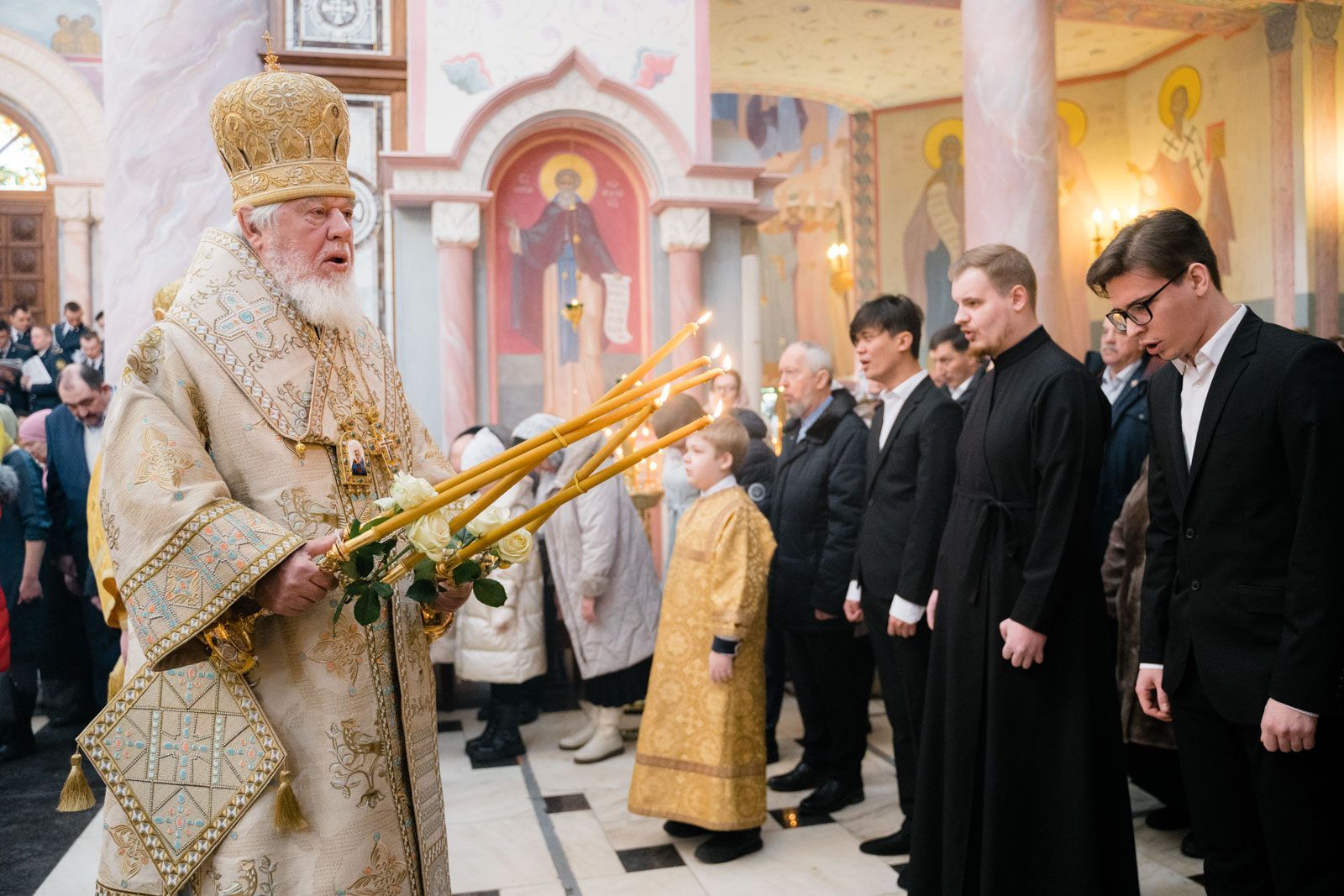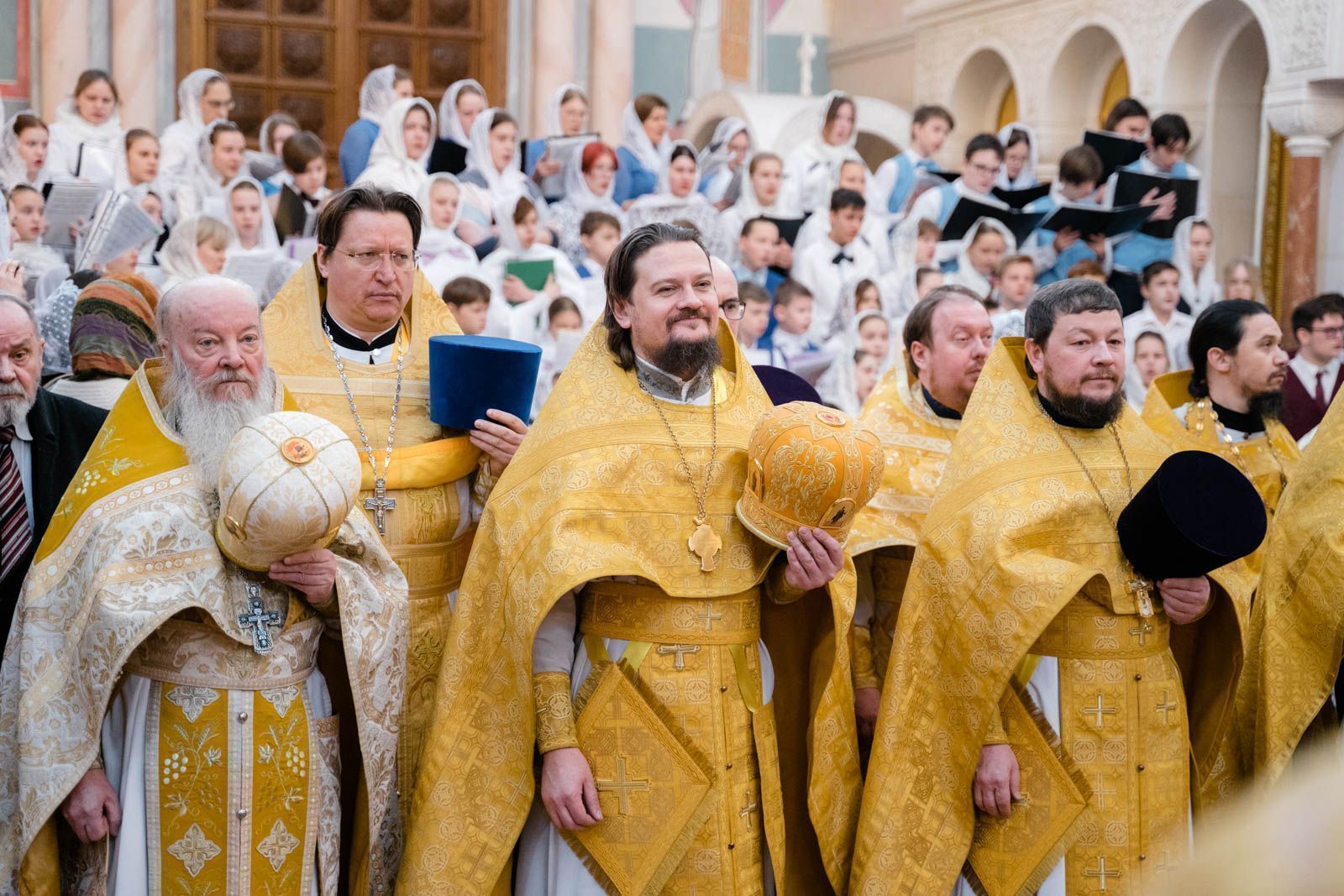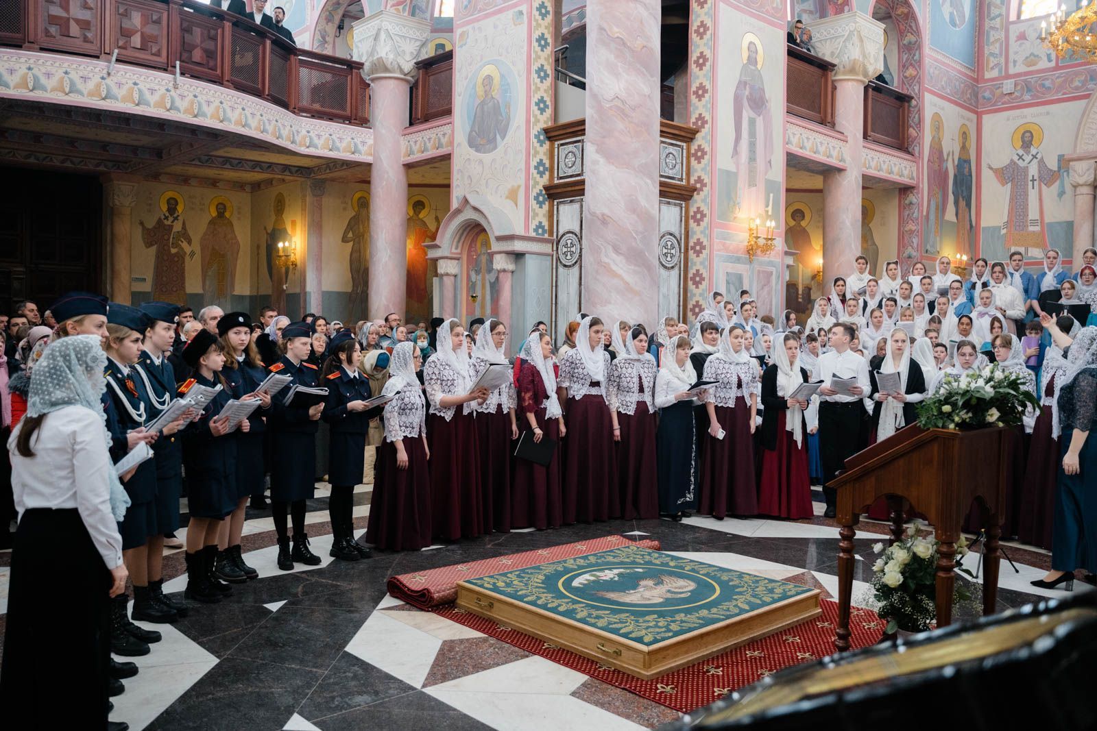 Богослужебные песнопения исполнили: сводный детский хор Самарской епархии «Благо» – регент Мария Викторовна Синицына, мужской губернский хор «София» – регент игумен Никон (Ратников) и сводный хор курсантов Самарского юридического института ФСИН России и кадетов Самарского казачьего кадетского корпуса – регент Вера Александровна Малыгина.