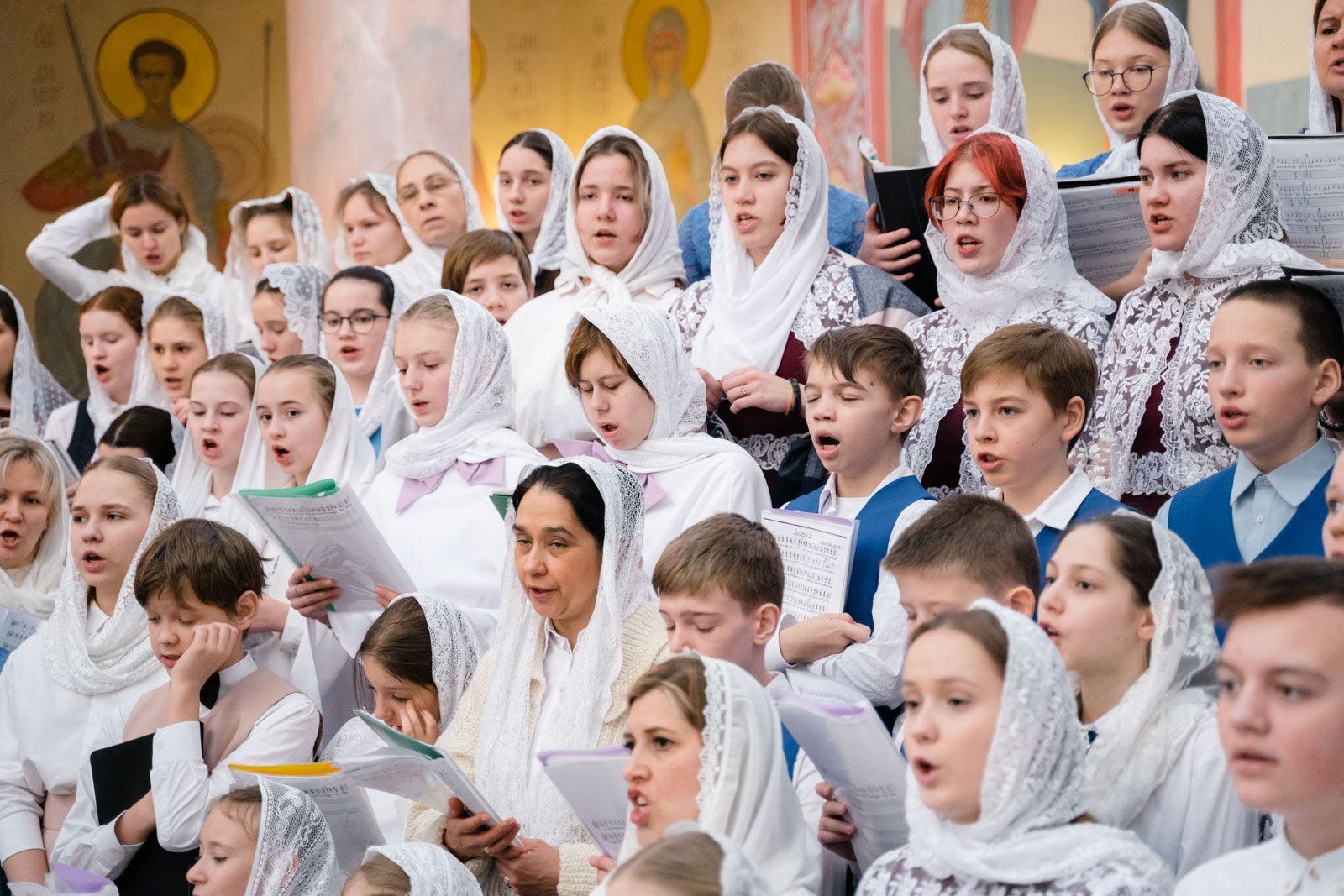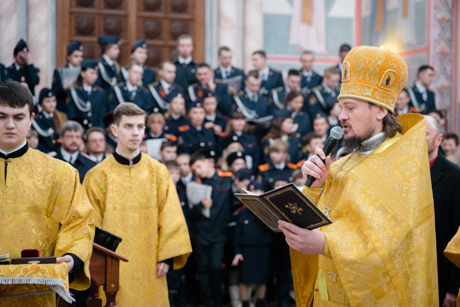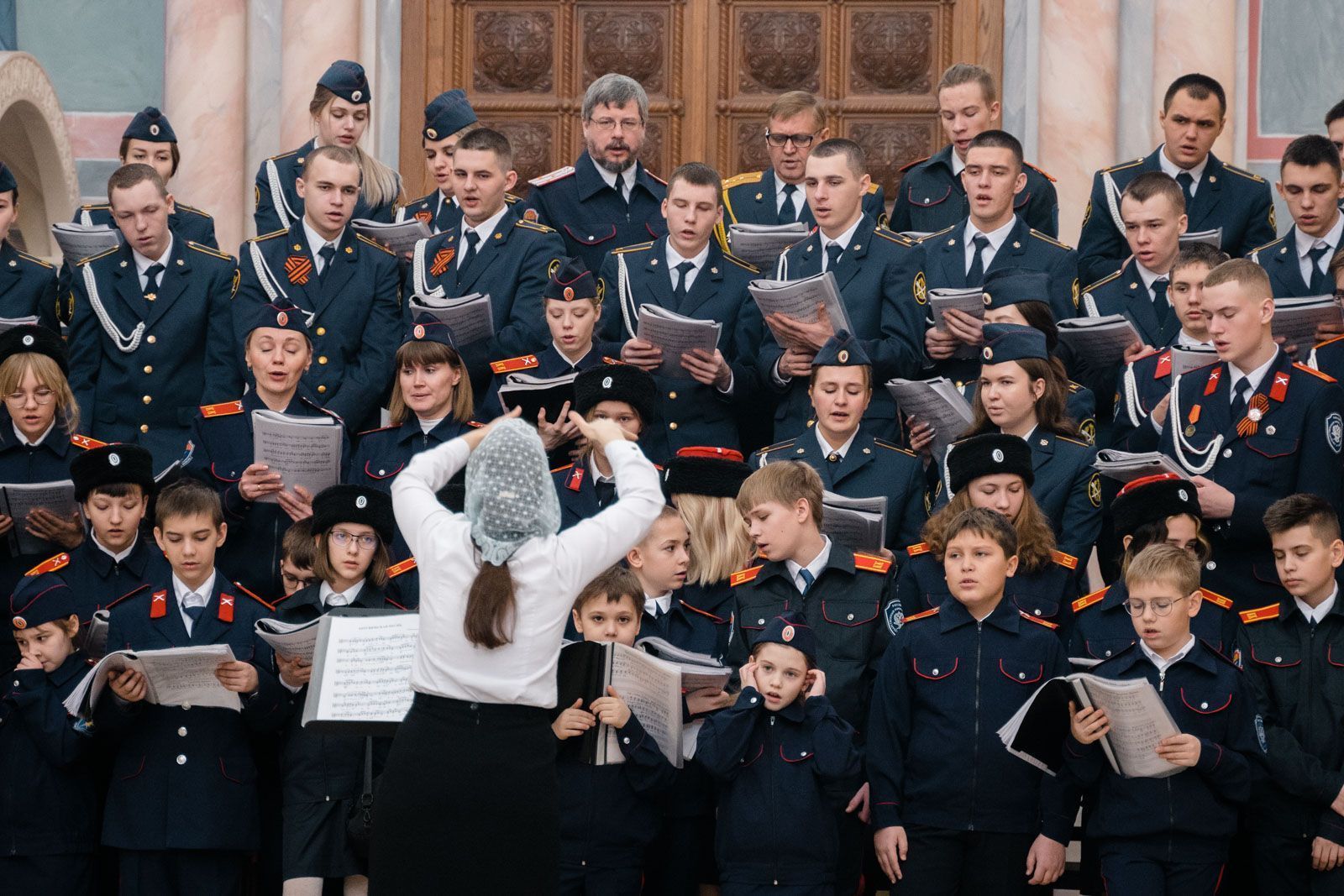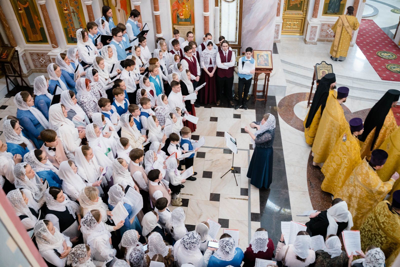 Богослужебные песнопения исполнили: сводный детский хор Самарской епархии «Благо» – регент Мария Викторовна Синицына, мужской губернский хор «София» – регент игумен Никон (Ратников) и сводный хор курсантов Самарского юридического института ФСИН России и кадетов Самарского казачьего кадетского корпуса – регент Вера Александровна Малыгина.