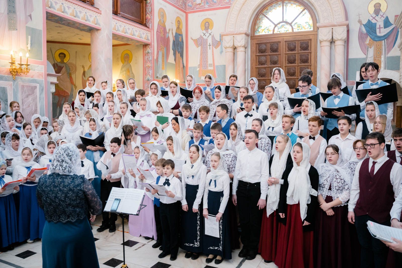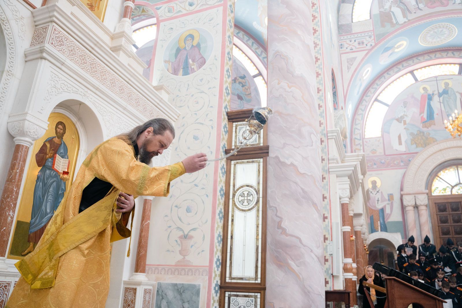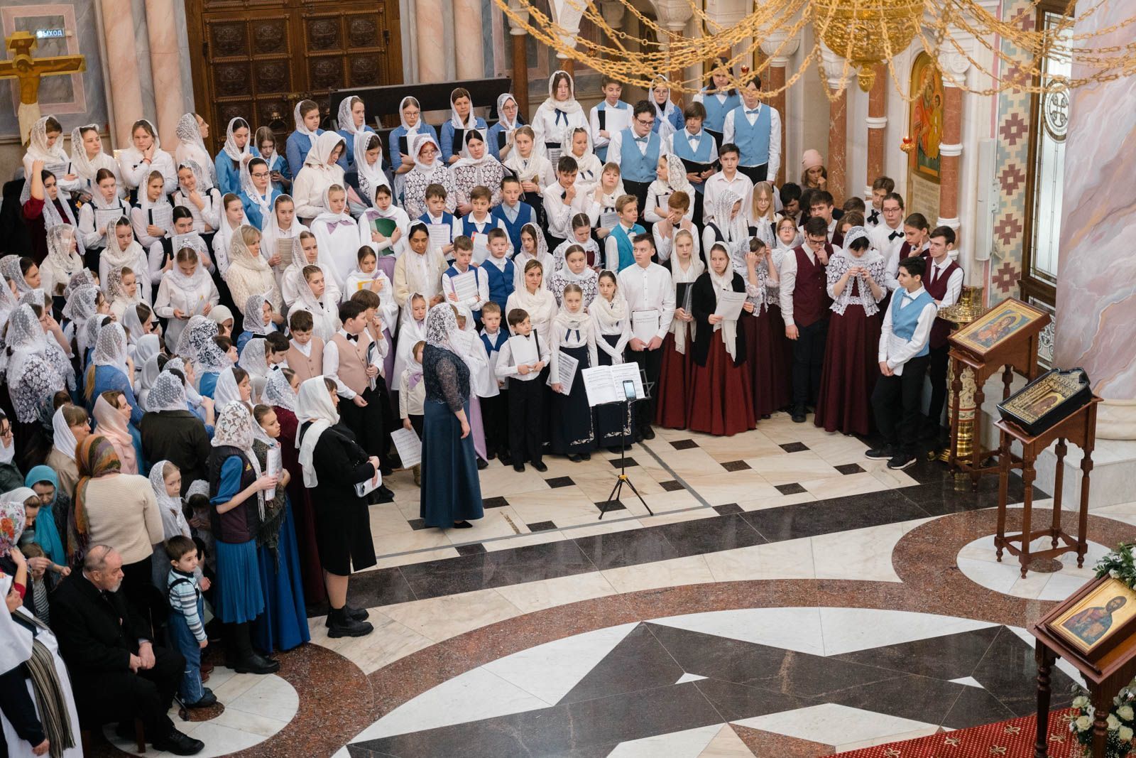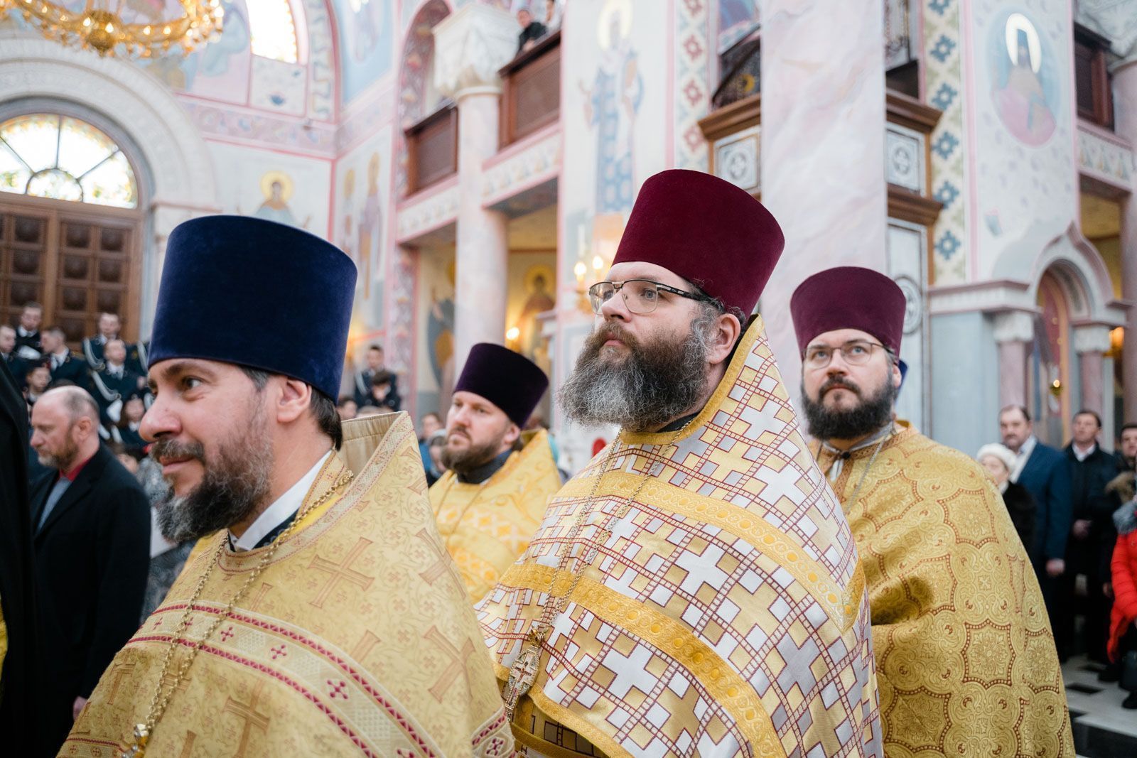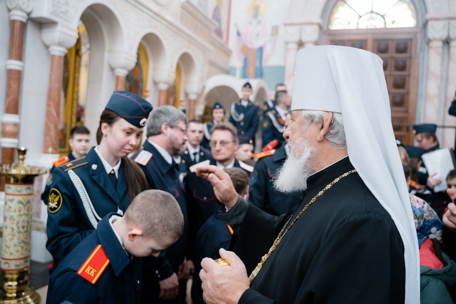 Богослужебные песнопения исполнили: сводный детский хор Самарской епархии «Благо» – регент Мария Викторовна Синицына, мужской губернский хор «София» – регент игумен Никон (Ратников) и сводный хор курсантов Самарского юридического института ФСИН России и кадетов Самарского казачьего кадетского корпуса – регент Вера Александровна Малыгина.