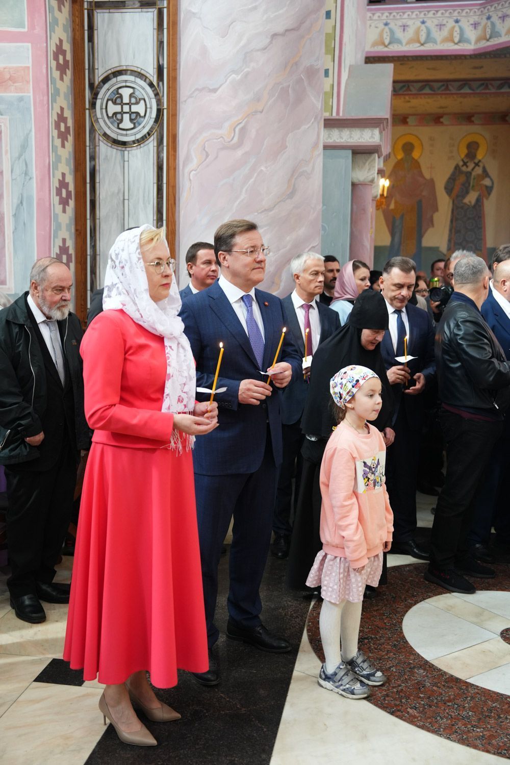 В храме присутствовали: губернатор Самарской области Дмитрий Игоревич Азаров, глава г.о. Самара Елена Владимировна Лапушкина, председатель Самарской Губернской Думы Геннадий Петрович Котельников и другие официальные лица.