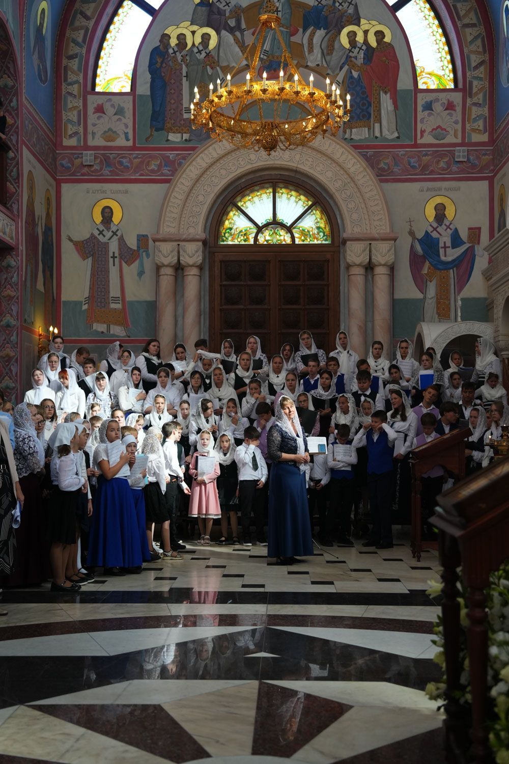 Богослужебные песнопения исполнили: сводный детский хор Самарской епархии «Благо» – регент Мария Викторовна Синицына, мужской губернский хор «София» – регент игумен Никон (Ратников).