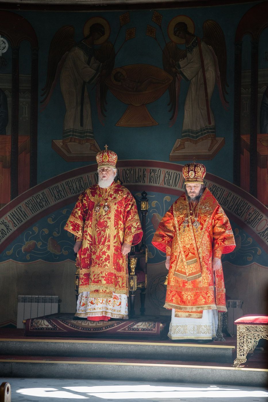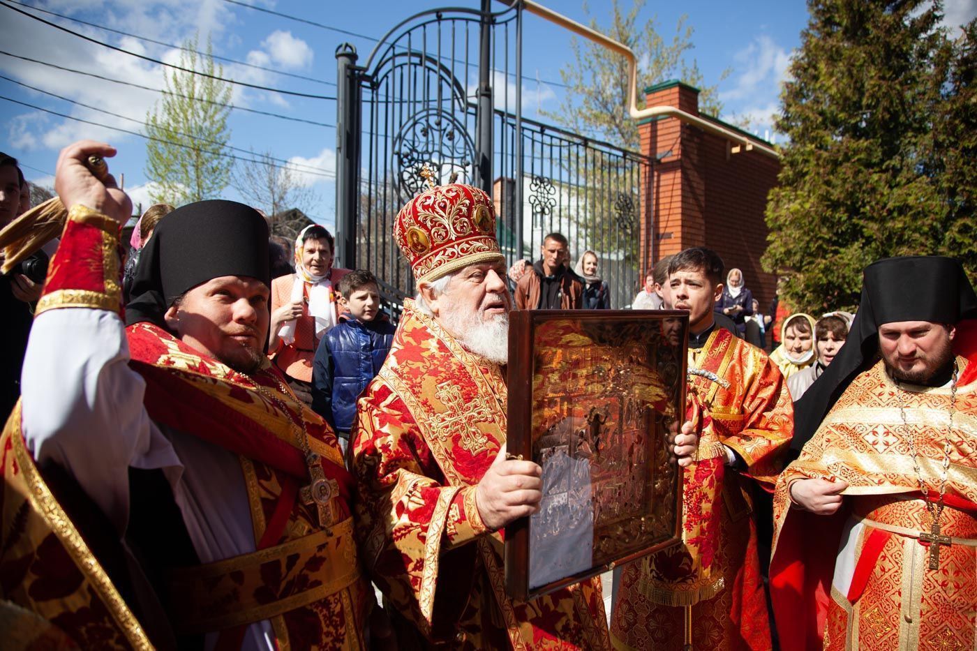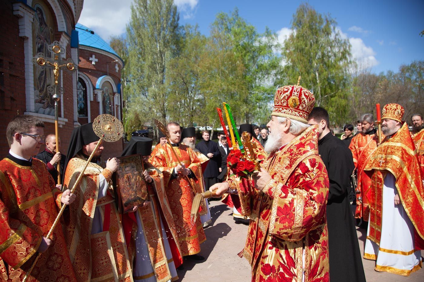 По окончании Литургии был совершен праздничный крестный ход вокруг соборного храма обители.