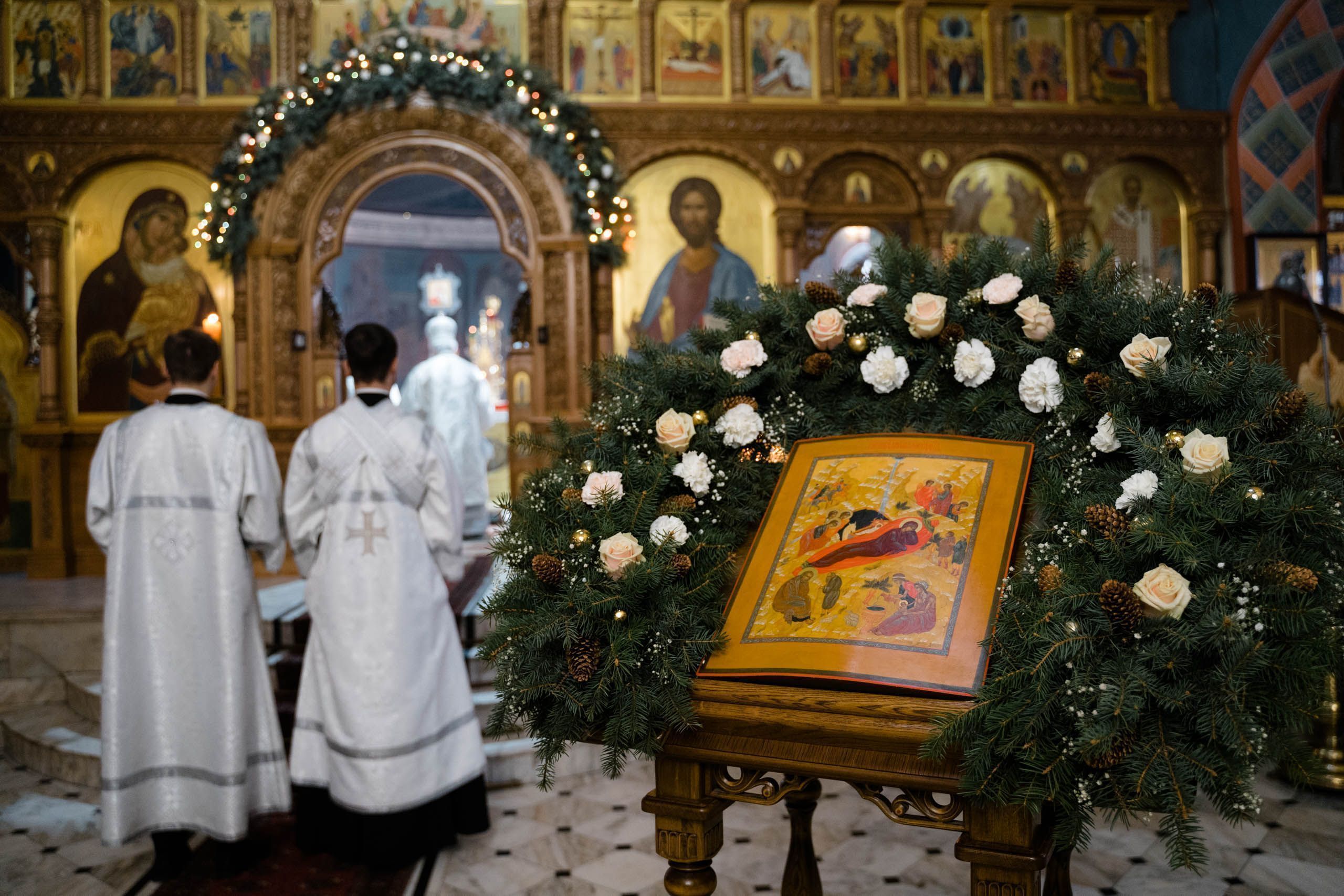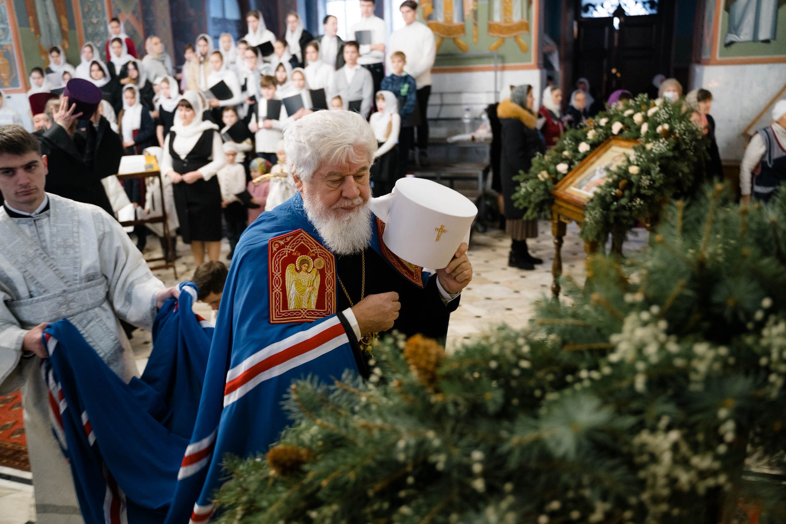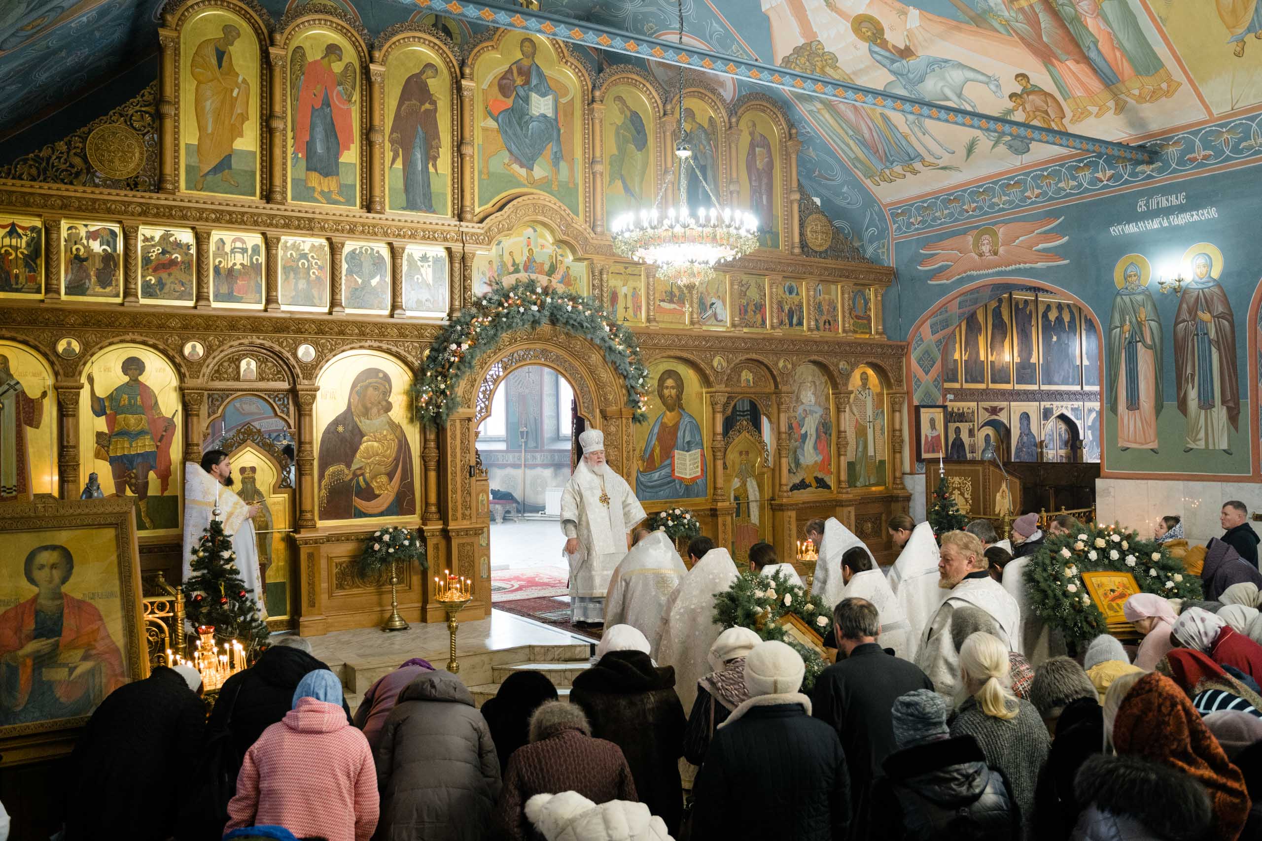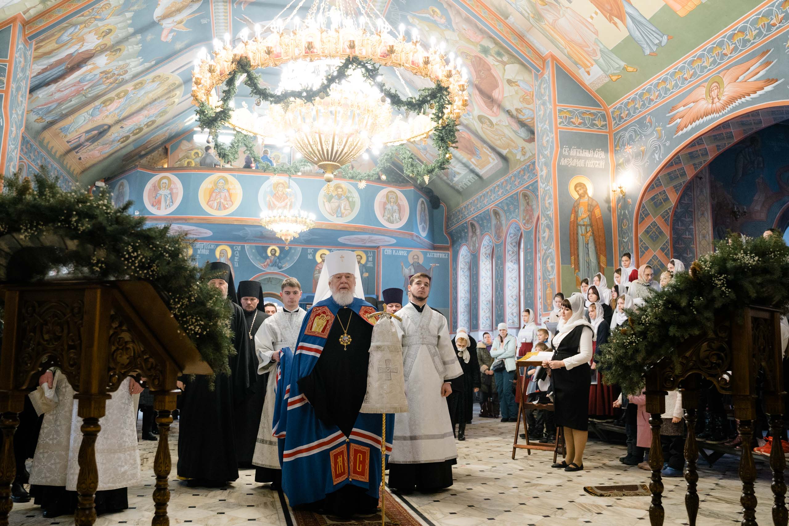 Его Высокопреосвященству сослужили: протоиерей Сергий Пушкарев, секретарь Самарского епархиального управления, настоятель храма Рождества Пресвятой Богородицы пгт Петра Дубрава; игумен Серафим (Астапенко), наместник Воскресенского мужского монастыря г. Самары; архимандрит Вениамин (Лабутин), клирик храма великомученика Георгия Победоносца г. Самары; протоиерей Александр Урывский, настоятель Вознесенского собора г. Самары; братия обители в священном сане и духовенство Самарской епархии. По заамвонной молитве было совершено славление празднику Обрезания Господня и святителю Василию Великому.