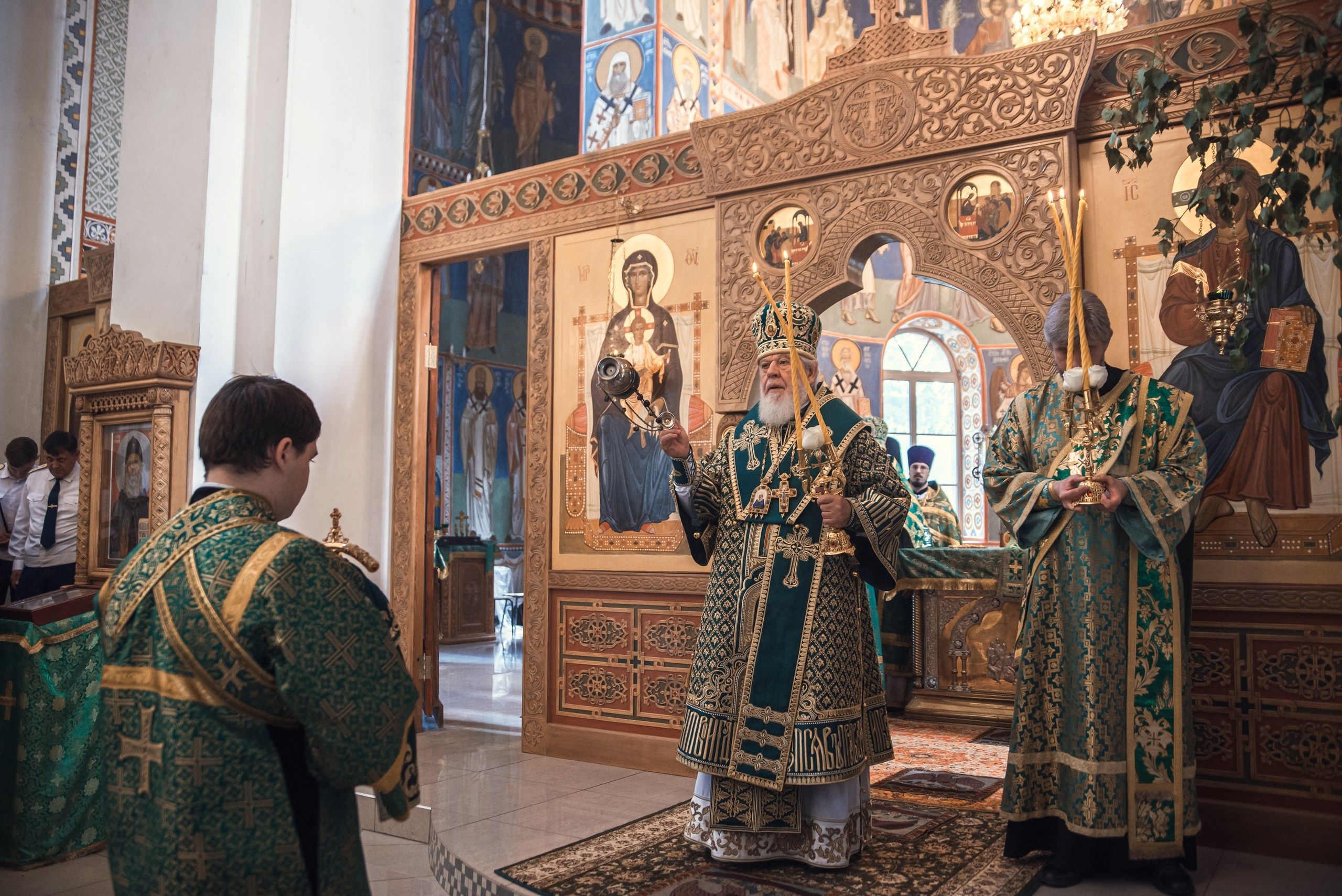 Митрополиту Сергию сослужили: Архимандрит Вениамин (Лабутин), настоятель храма свт. Николая, заведующий межвузовской кафедрой теологии и истории религий; протоиерей Владимир Загаринский, благочинный Новокуйбышевского округа, а также клирики Троице-Сергиевского храма. Диаконский чин возглавил диакон Николай Трошков. Богослужебные песнопения исполнили: Самарский губернский мужской хор "София" под управлением игумена Никона (Ратникова), проректора Самарской семинарии по воспитательной работе и сводный казачий кадетский хор "Голос поколений" под управлением Максима Горельченко. За Литургией была совершена пресвитерская хиротония диакона Иоанна.