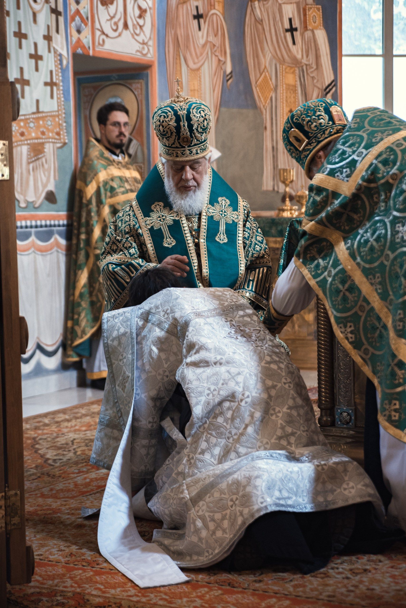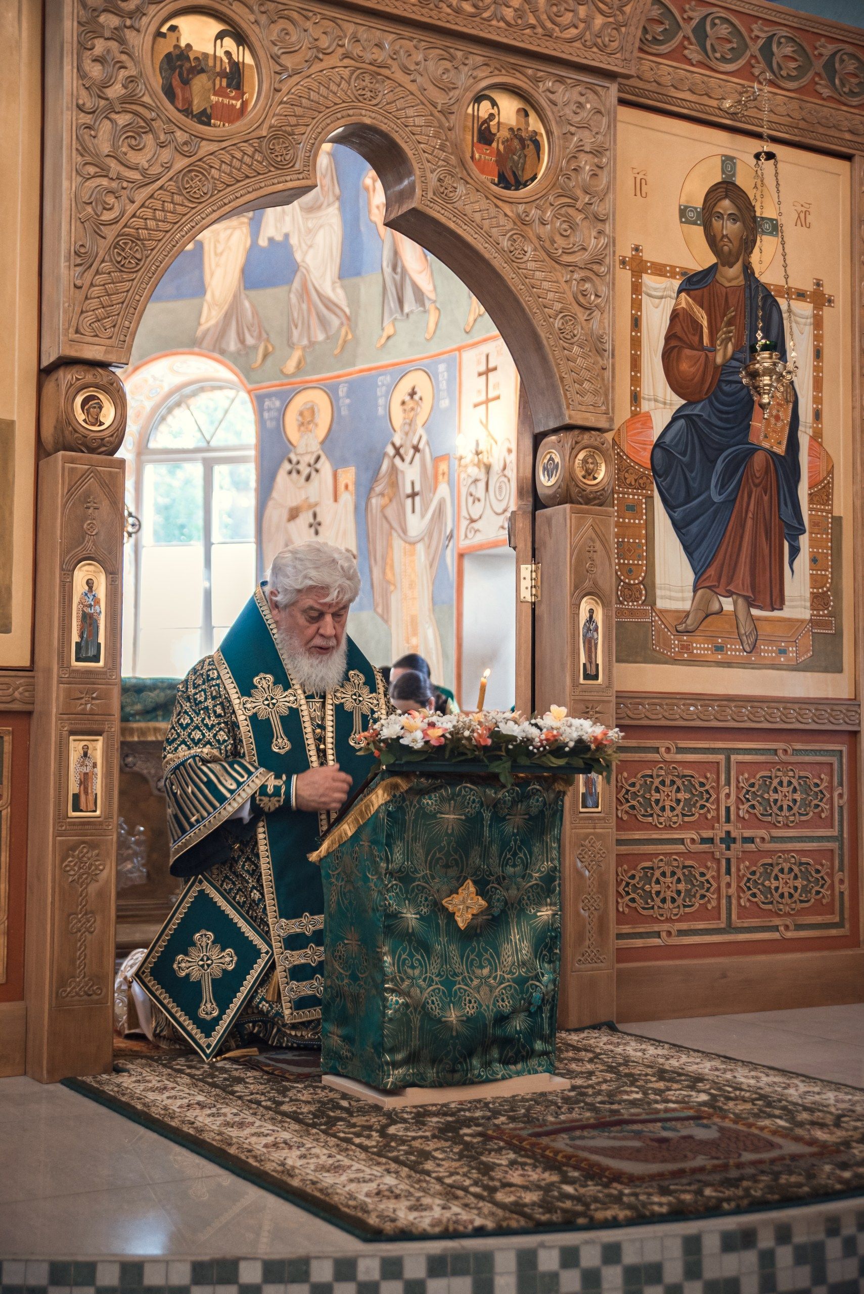 После Божественной литургии была совершена вечерня с чтением коленопреклонных молитв. Коленопреклонные молитвы являются особенностью вечерни Дня Святого Духа. Всего их семь, они делятся на три части: по две в первой и второй, три в третьей. Части разделяются между собой короткими молитвословиями: первая — после великого прокимна («Кто Бог велий…»), вторая — после сугубой ектении «Рцем вси…»); после второй части поется «Сподоби, Господи…» и затем уже третья часть.