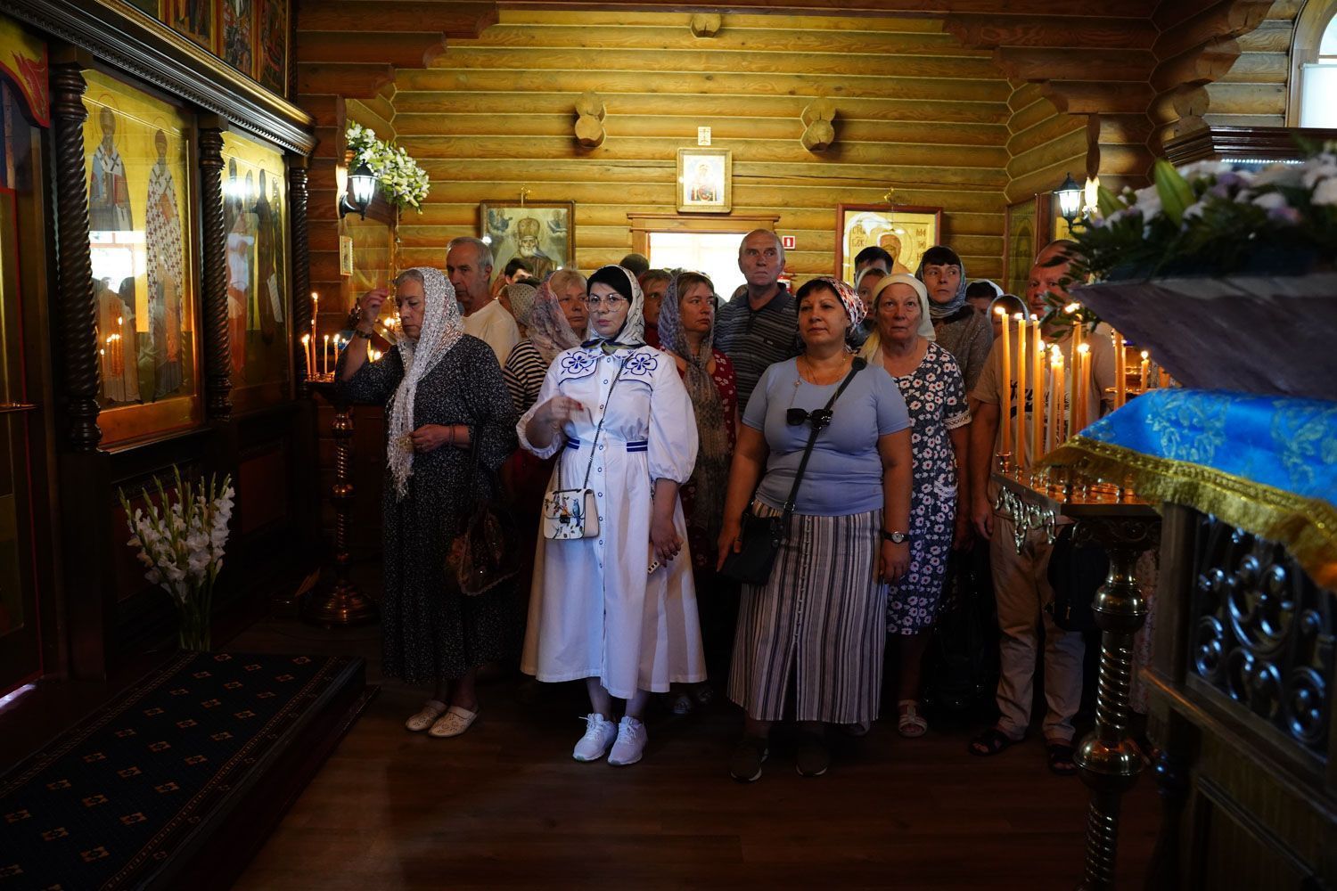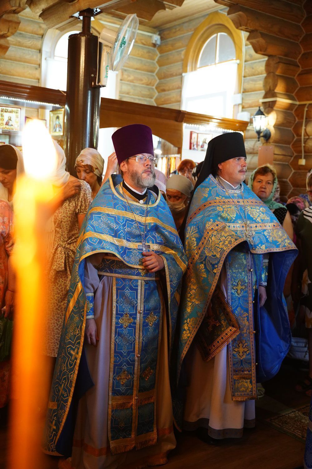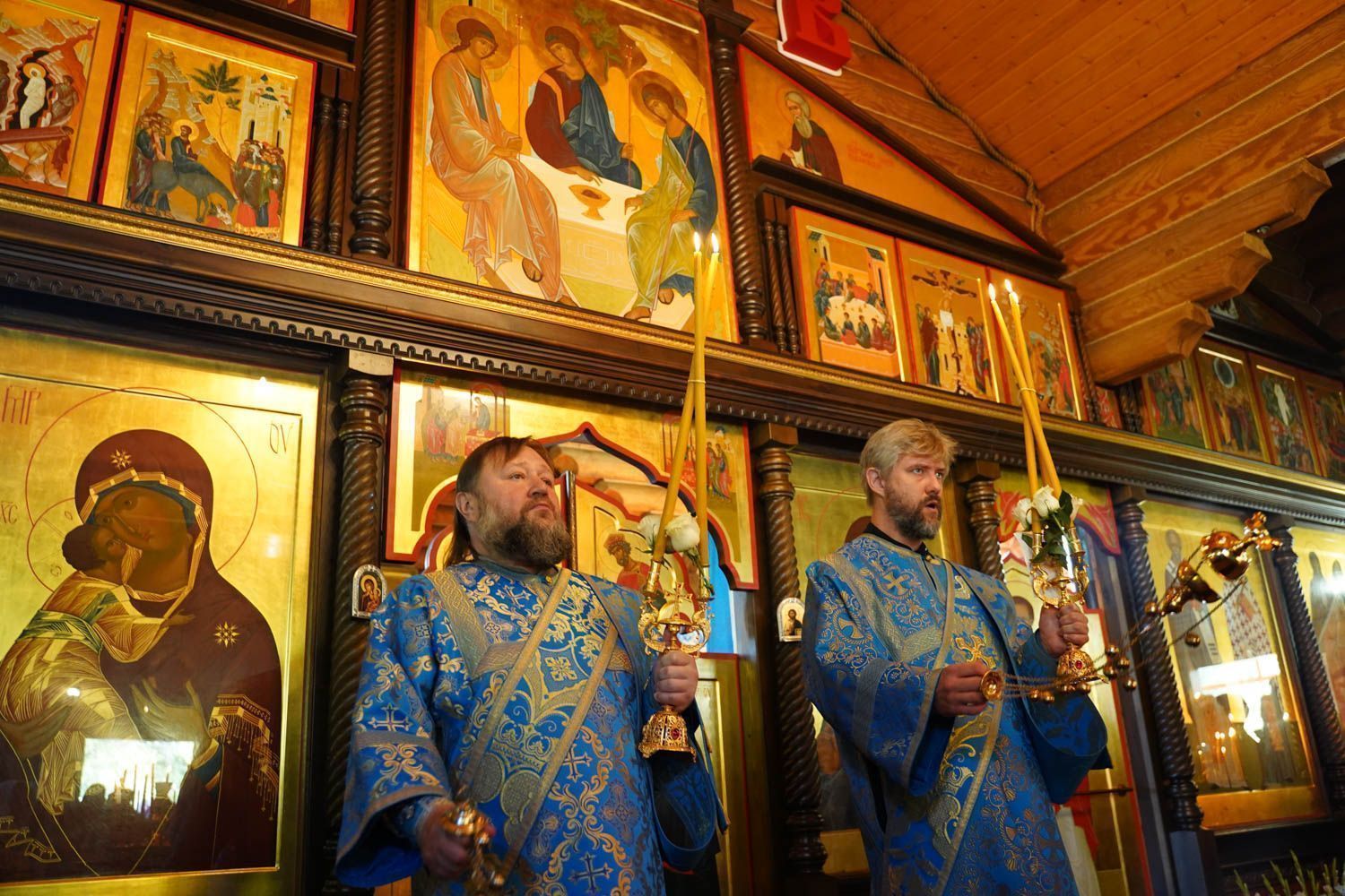 По окончании Литургии состоялся праздничный крестный ход вокруг храма и славление Божией Матери.