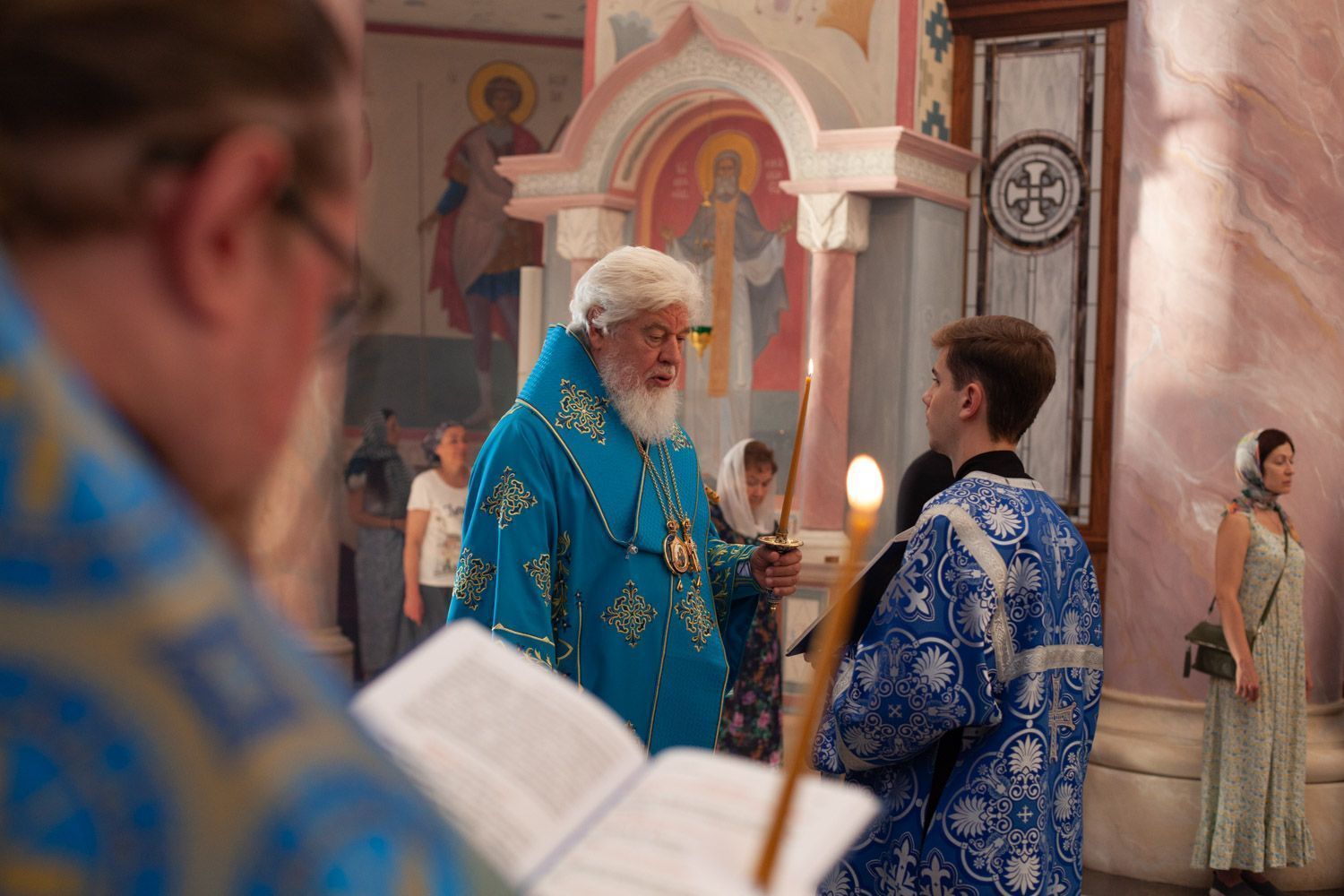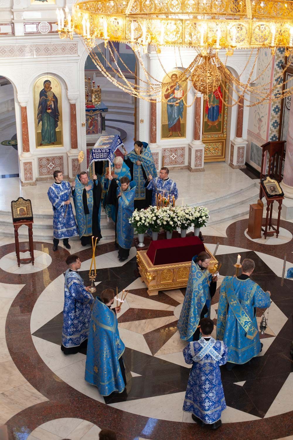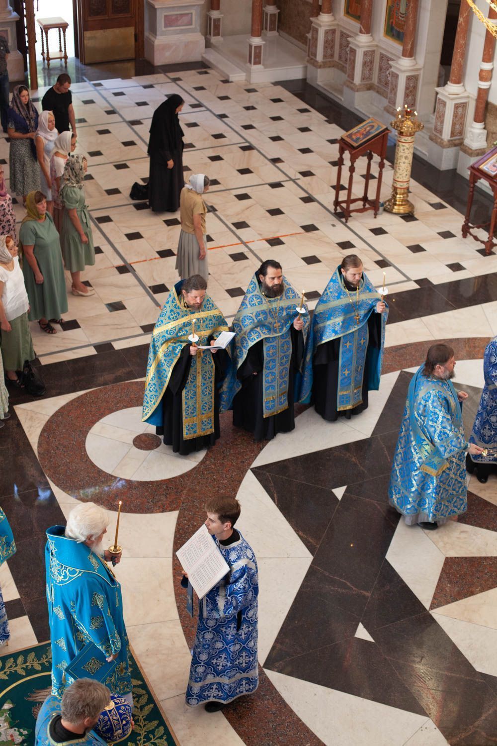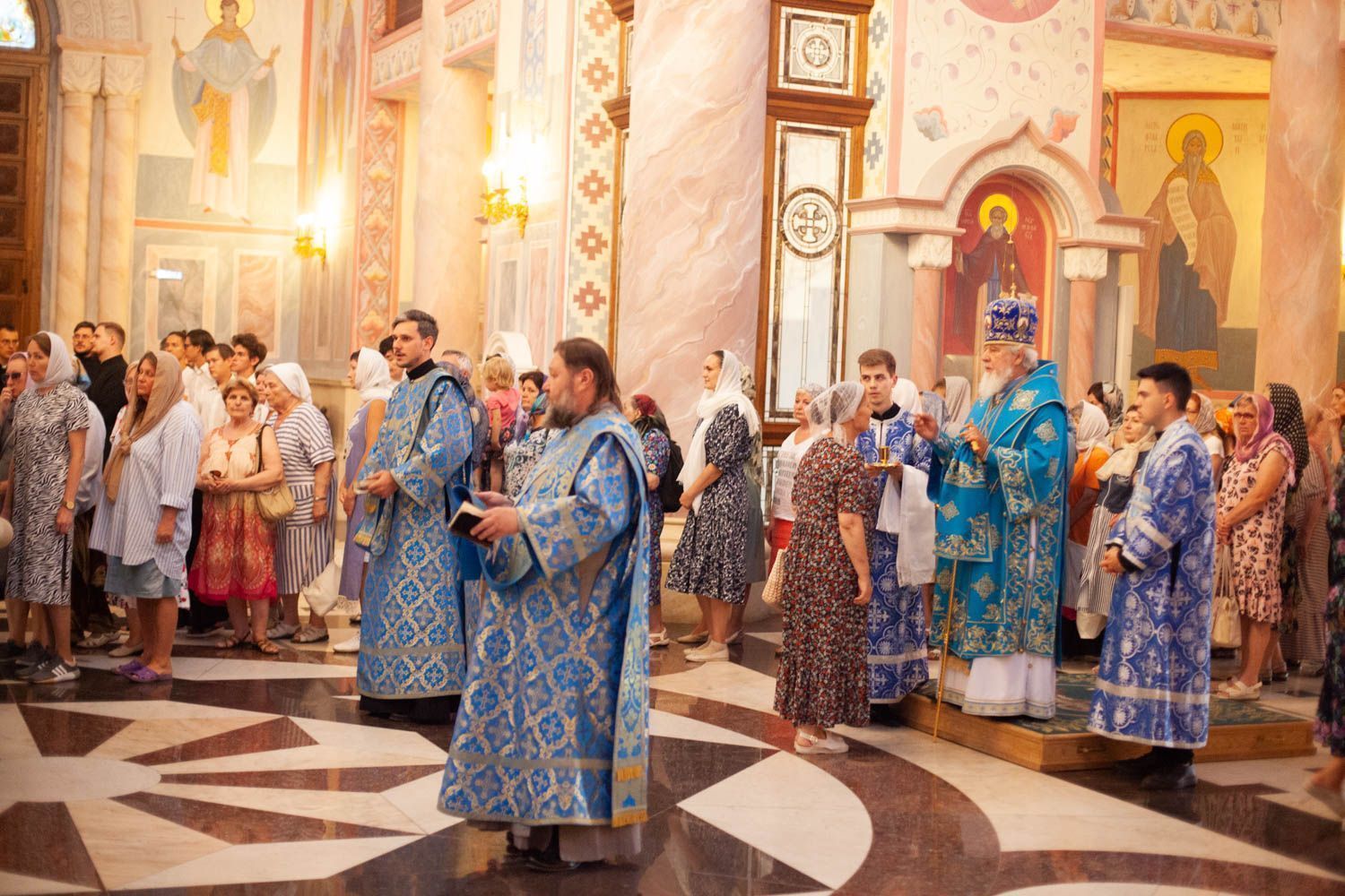 28 августа 2022 года вечером, в канун Попразднства Успения Пресвятой Богородицы, митрополит Самарский и Новокуйбышевский Сергий совершил всенощное бдение и чин погребения плащаницы Божией Матери в Софийском соборе города Самары